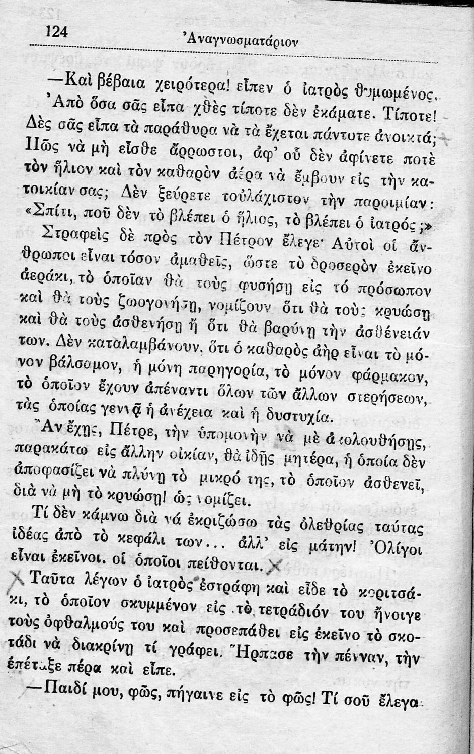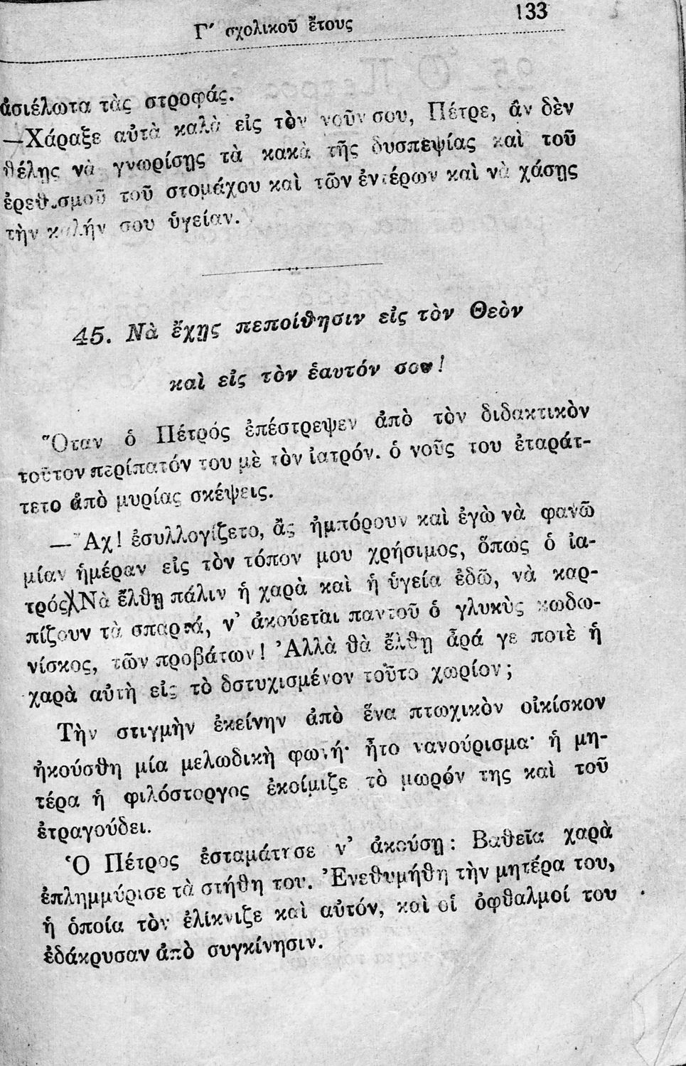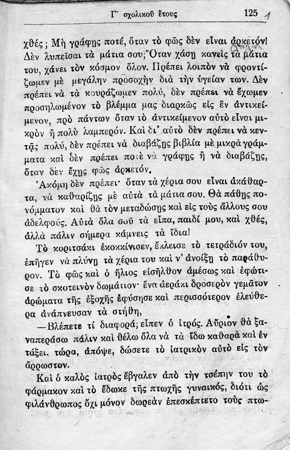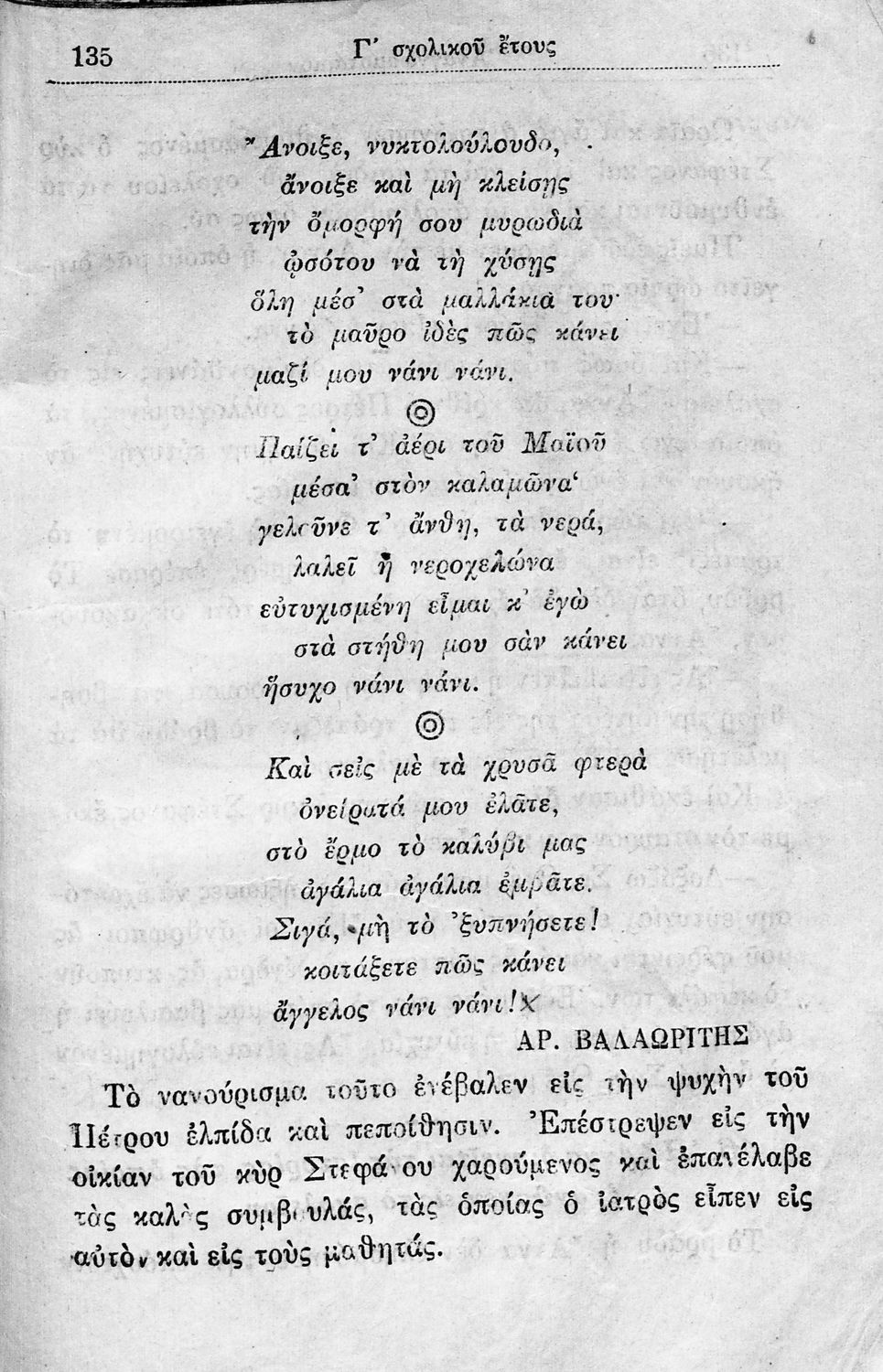 Σχολικό εγχειρίδιο Γλώσσας για την Γ΄ Δημοτικού. Περιλαμβάνει κείμενα σχετικά με την αγροτική ζωή και τη φύση. Εγκρίθηκε στον Πανταζοπούλειο διαγωνισμό που προκηρύχτηκε στις 24-7-1913 για να συνταχτεί αναγνωσματάριο για τα Α΄, Β΄, Γ΄, Δ΄ έτη της Δημοτικής Εκπαιδεύσεως.
