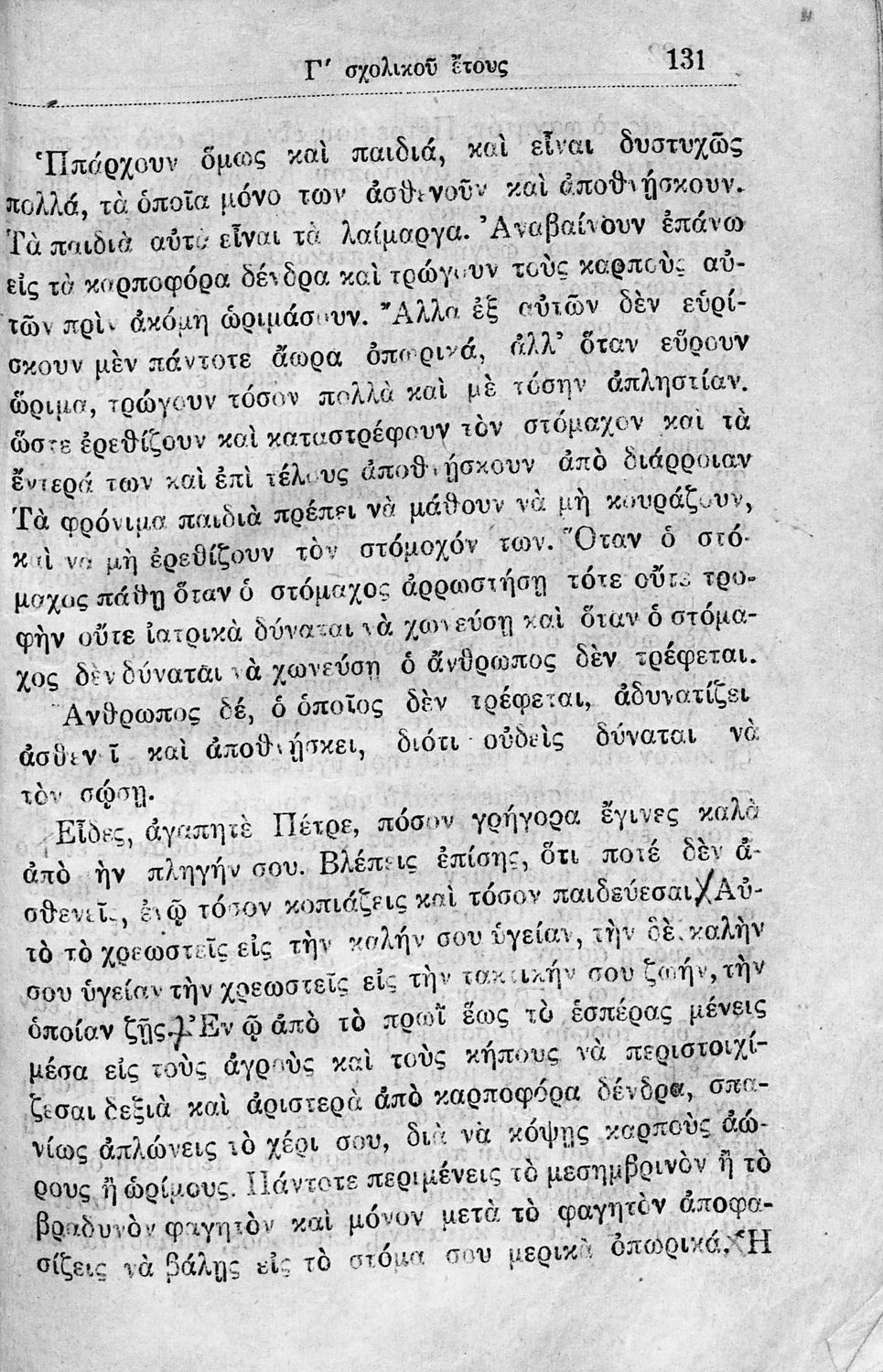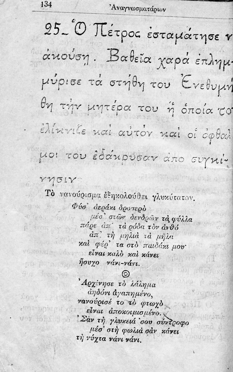 Παρουσίαση περιεχομένου: Σχολικό εγχειρίδιο Γλώσσας για την Γ΄ Δημοτικού. Περιλαμβάνει κείμενα σχετικά με την αγροτική ζωή και τη φύση. Εγκρίθηκε στον Πανταζοπούλειο διαγωνισμό που προκηρύχτηκε στις 24-7-1913 για να συνταχτεί αναγνωσματάριο για τα Α΄, Β΄, Γ΄, Δ΄ έτη της Δημοτικής Εκπαιδεύσεως.