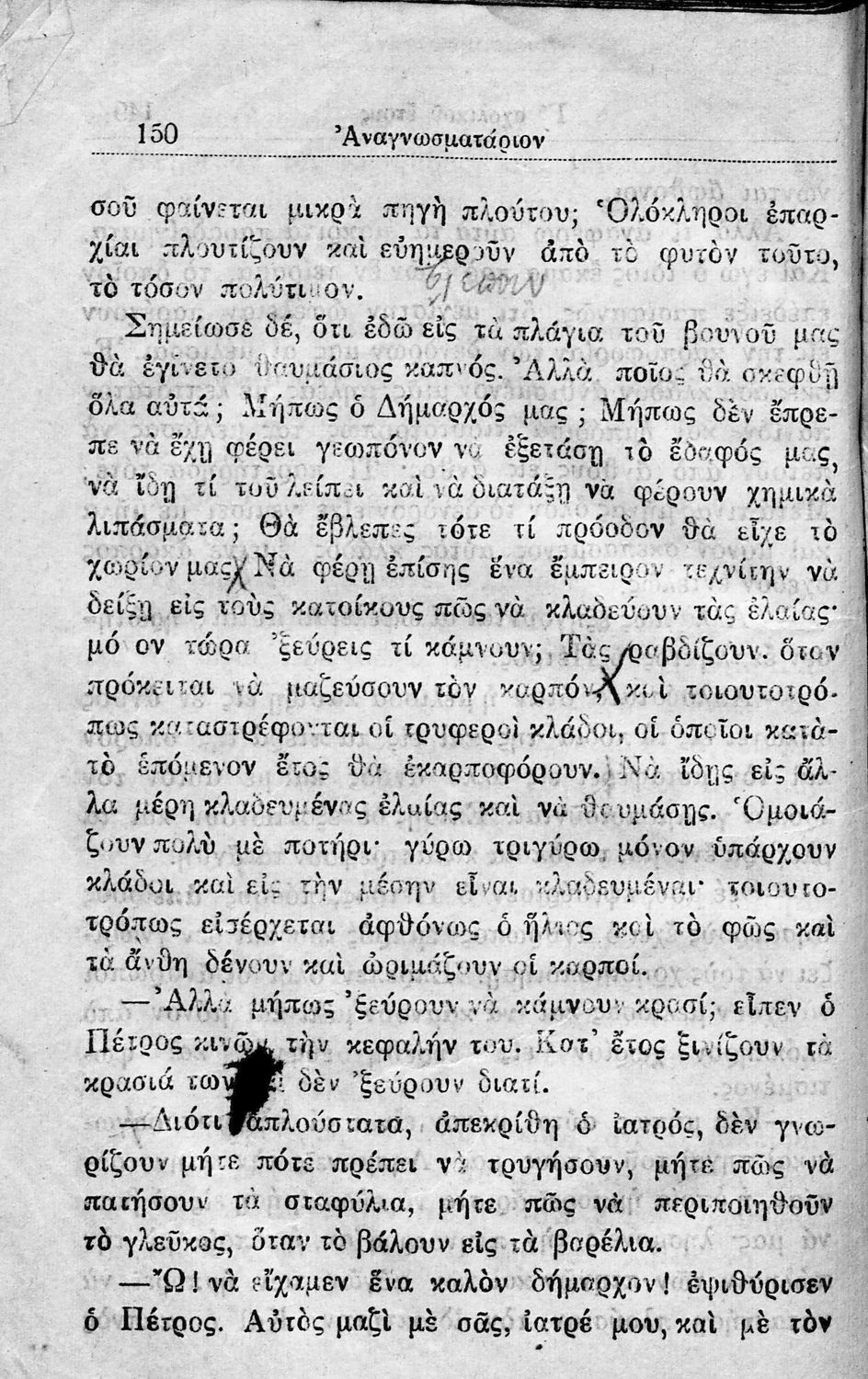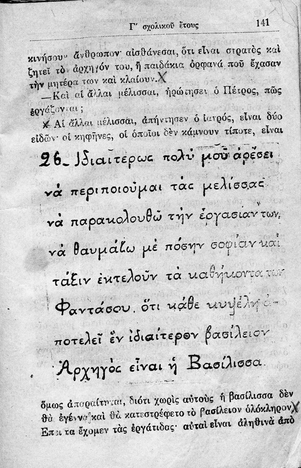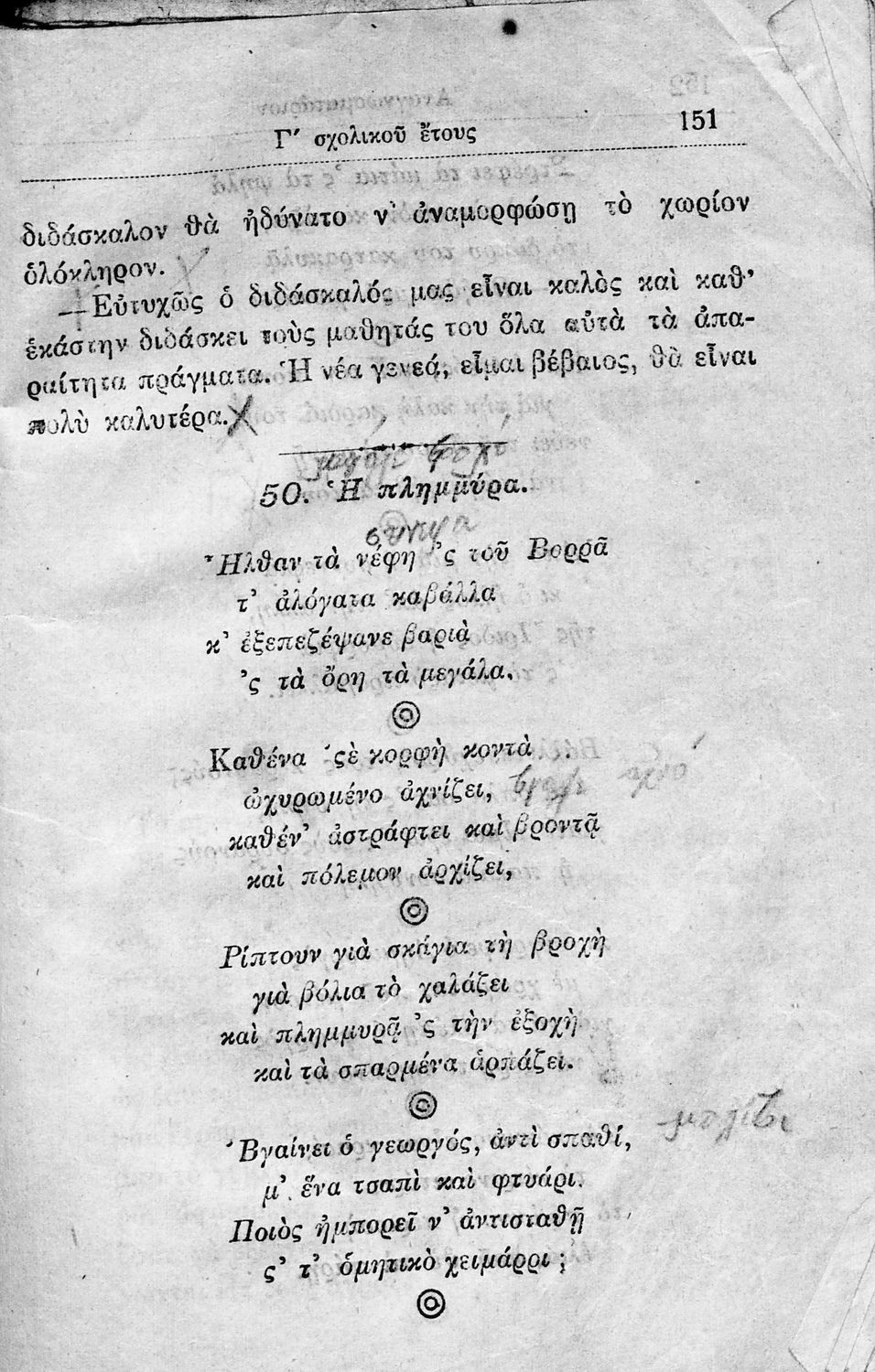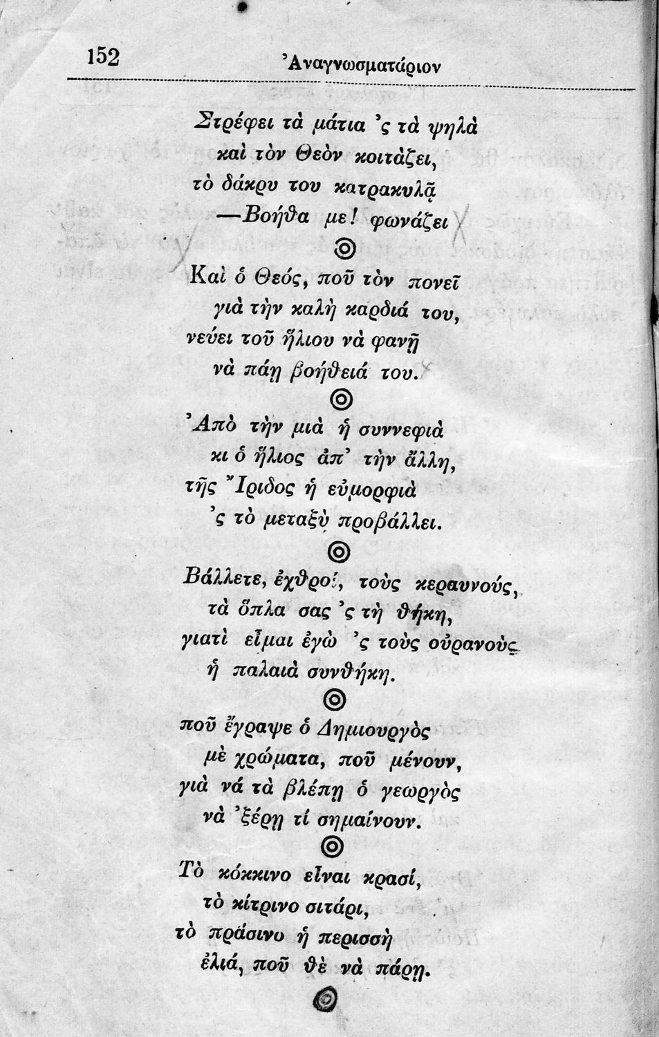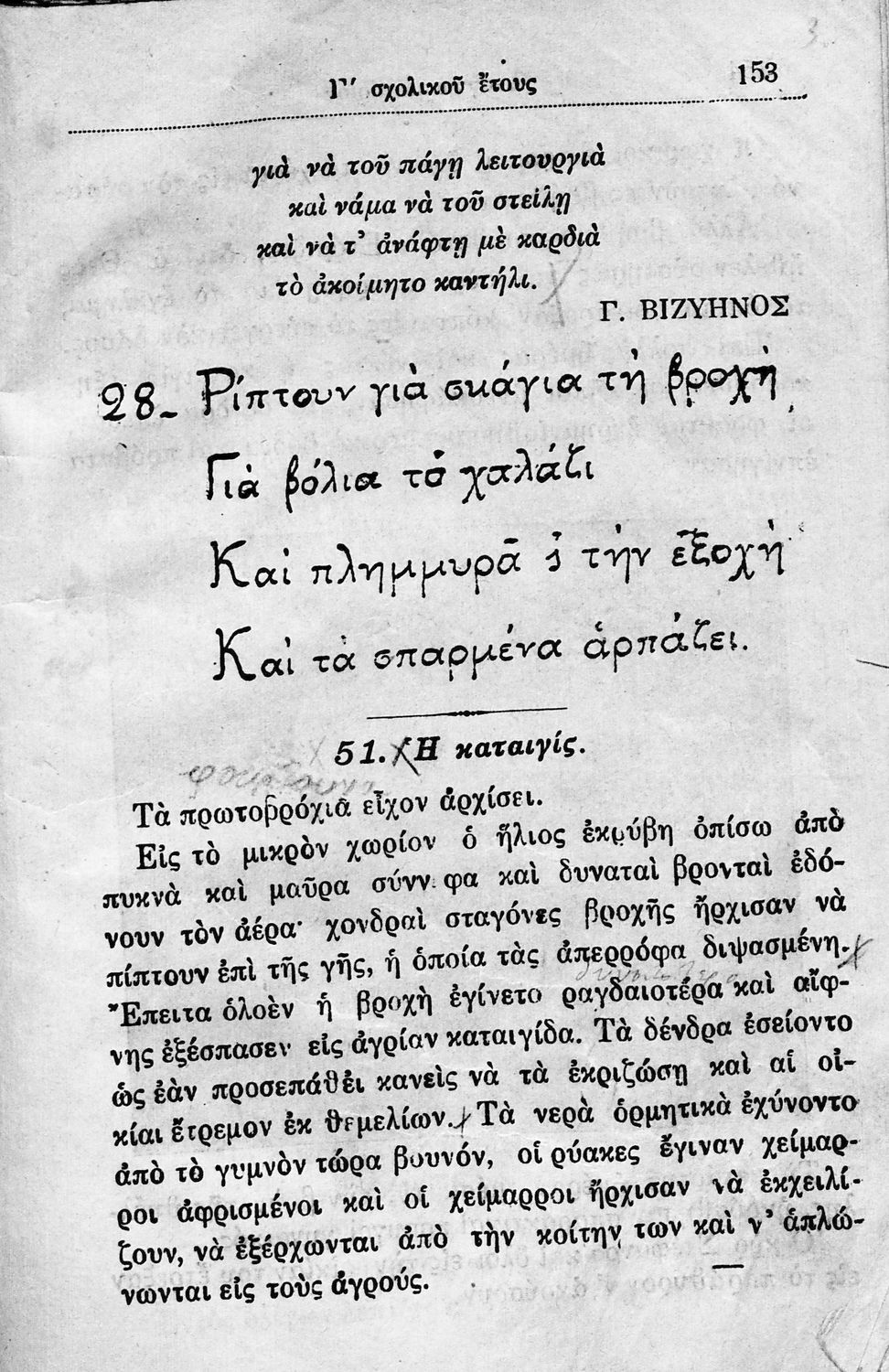 Σχολικό εγχειρίδιο Γλώσσας για την Γ΄ Δημοτικού. Περιλαμβάνει κείμενα σχετικά με την αγροτική ζωή και τη φύση. Εγκρίθηκε στον Πανταζοπούλειο διαγωνισμό που προκηρύχτηκε στις 24-7-1913 για να συνταχτεί αναγνωσματάριο για τα Α΄, Β΄, Γ΄, Δ΄ έτη της Δημοτικής Εκπαιδεύσεως.