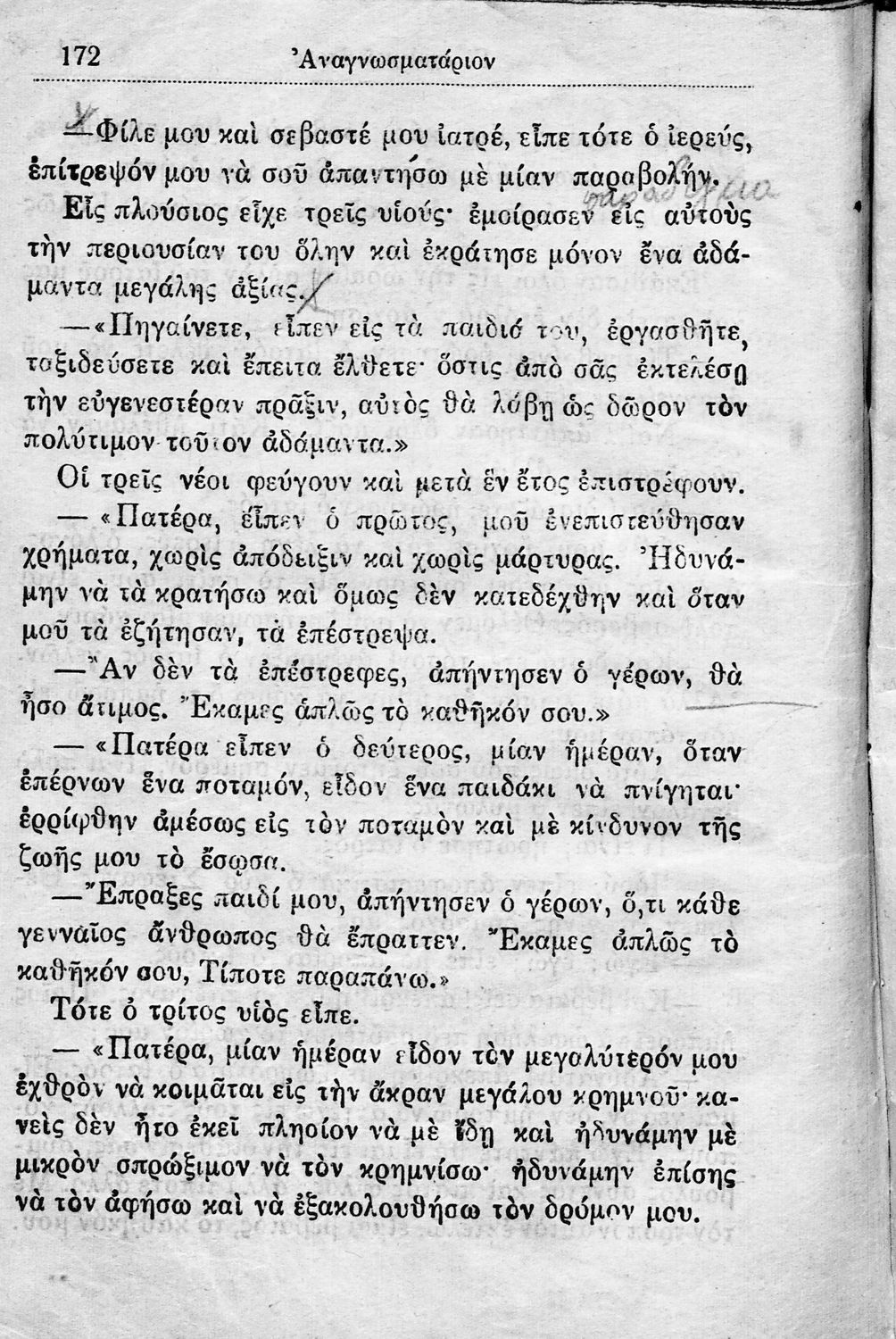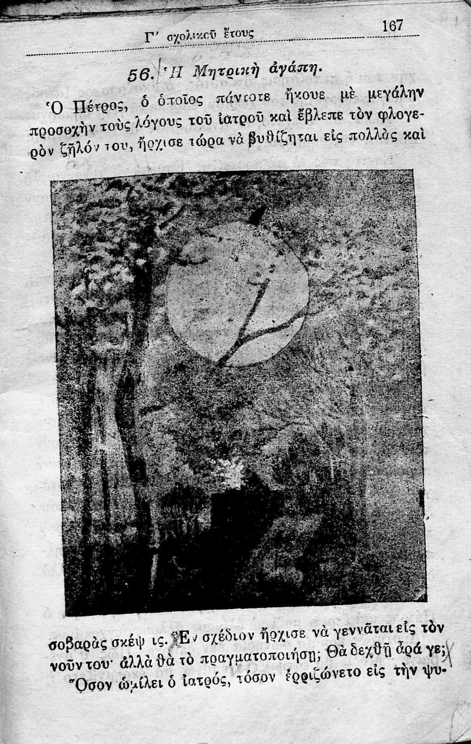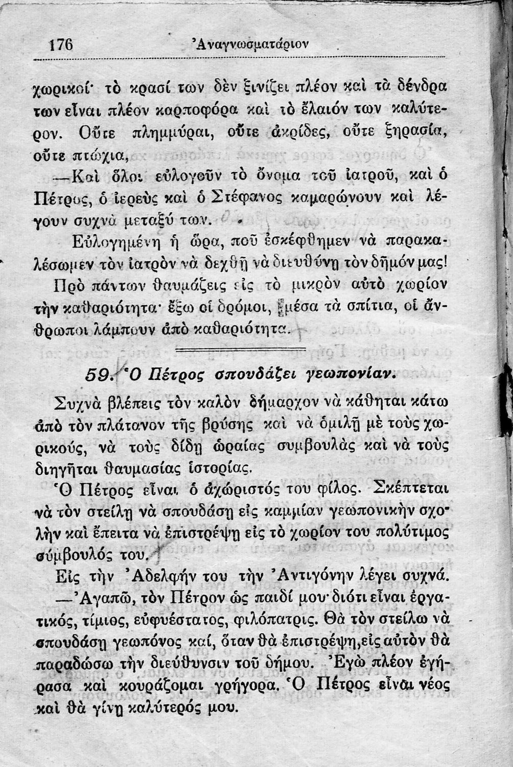 Βαθμίδα εκπαίδευσης: Πρωτοβάθμια Τάξη: Γ' Δημοτικού Μάθημα: Νέα Ελληνικά Γλώσσα: Καθαρεύουσα Παρουσίαση περιεχομένου: Σχολικό εγχειρίδιο Γλώσσας για την Γ΄ Δημοτικού. Περιλαμβάνει κείμενα σχετικά με την αγροτική ζωή και τη φύση. Εγκρίθηκε στον Πανταζοπούλειο διαγωνισμό που προκηρύχτηκε στις 24-7-1913 για να συνταχτεί αναγνωσματάριο για τα Α΄, Β΄, Γ΄, Δ΄ έτη της Δημοτικής Εκπαιδεύσεως. |