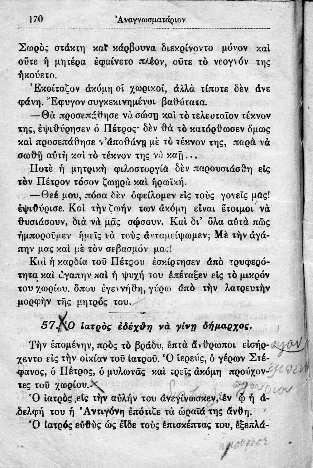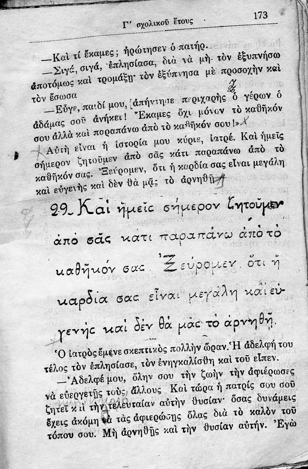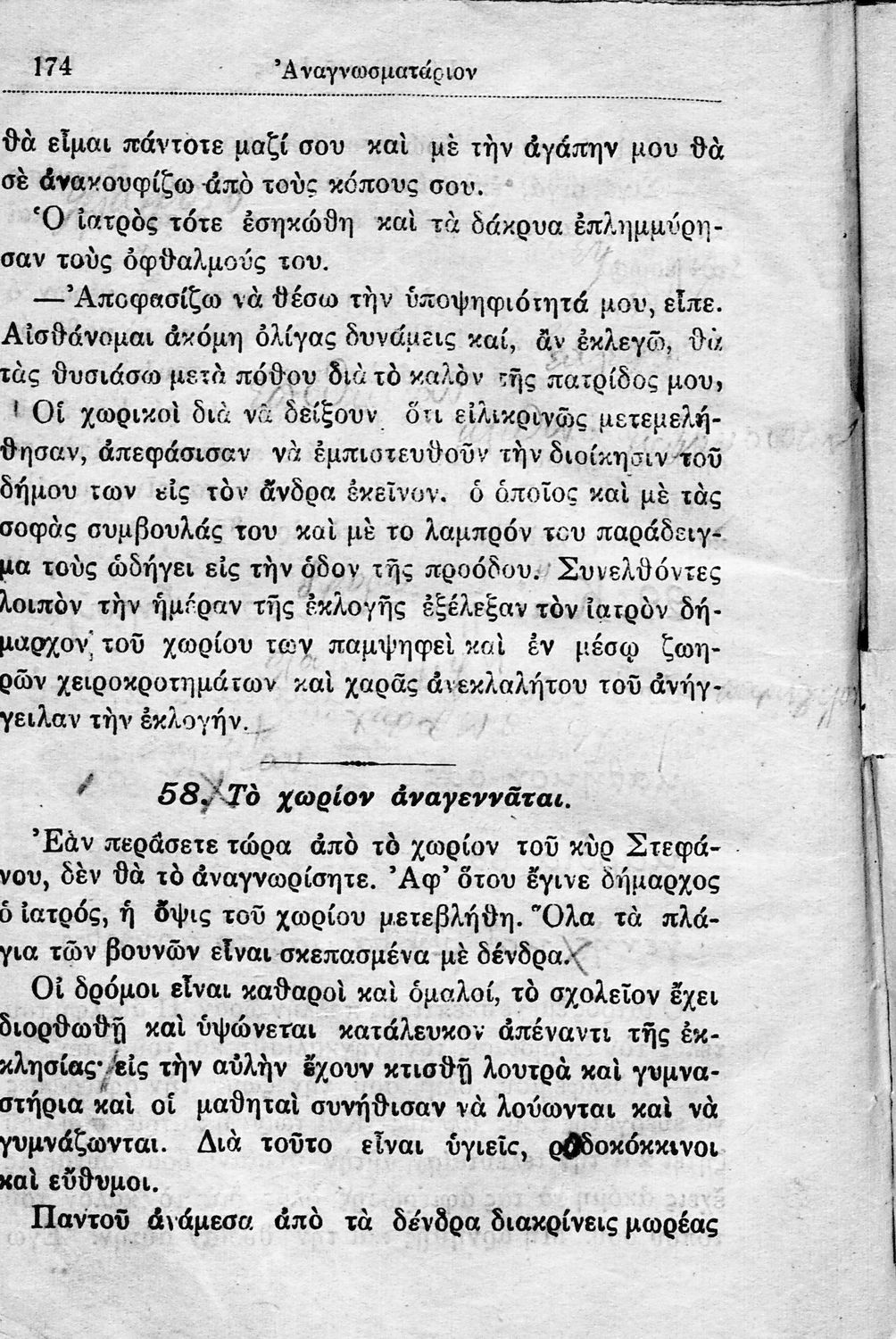 Βαθμίδα εκπαίδευσης: Πρωτοβάθμια Τάξη: Γ' Δημοτικού Μάθημα: Νέα Ελληνικά Γλώσσα: Καθαρεύουσα Παρουσίαση περιεχομένου: Σχολικό εγχειρίδιο Γλώσσας για την Γ΄ Δημοτικού. Περιλαμβάνει κείμενα σχετικά με την αγροτική ζωή και τη φύση. Εγκρίθηκε στον Πανταζοπούλειο διαγωνισμό που προκηρύχτηκε στις 24-7-1913 για να συνταχτεί αναγνωσματάριο για τα Α΄, Β΄, Γ΄, Δ΄ έτη της Δημοτικής Εκπαιδεύσεως. |