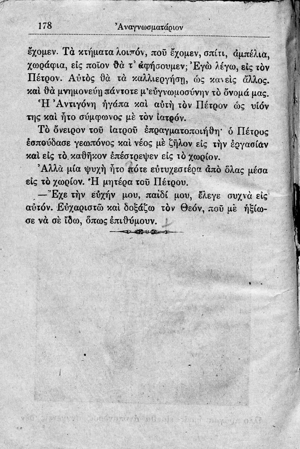 Βαθμίδα εκπαίδευσης: Πρωτοβάθμια Τάξη: Γ' Δημοτικού Μάθημα: Νέα Ελληνικά Γλώσσα: Καθαρεύουσα Παρουσίαση περιεχομένου: Σχολικό εγχειρίδιο Γλώσσας για την Γ΄ Δημοτικού. Περιλαμβάνει κείμενα σχετικά με την αγροτική ζωή και τη φύση. Εγκρίθηκε στον Πανταζοπούλειο διαγωνισμό που προκηρύχτηκε στις 24-7-1913 για να συνταχτεί αναγνωσματάριο για τα Α΄, Β΄, Γ΄, Δ΄ έτη της Δημοτικής Εκπαιδεύσεως. |