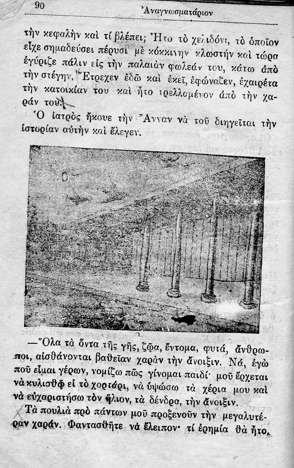 Σχολικό εγχειρίδιο Γλώσσας για την Γ΄ Δημοτικού. Περιλαμβάνει κείμενα σχετικά με την αγροτική ζωή και τη φύση. Εγκρίθηκε στον Πανταζοπούλειο διαγωνισμό που προκηρύχτηκε στις 24-7-1913 για να συνταχτεί αναγνωσματάριο για τα Α΄, Β΄, Γ΄, Δ΄ έτη της Δημοτικής Εκπαιδεύσεως.