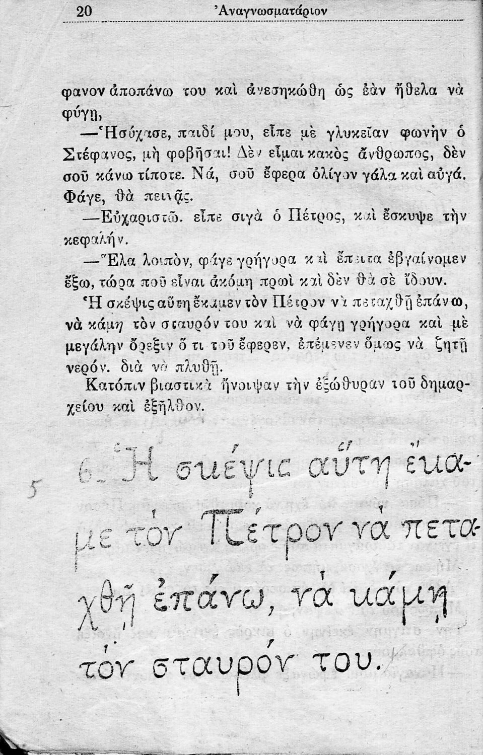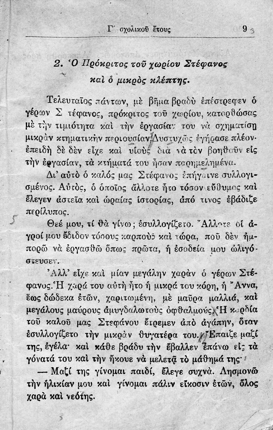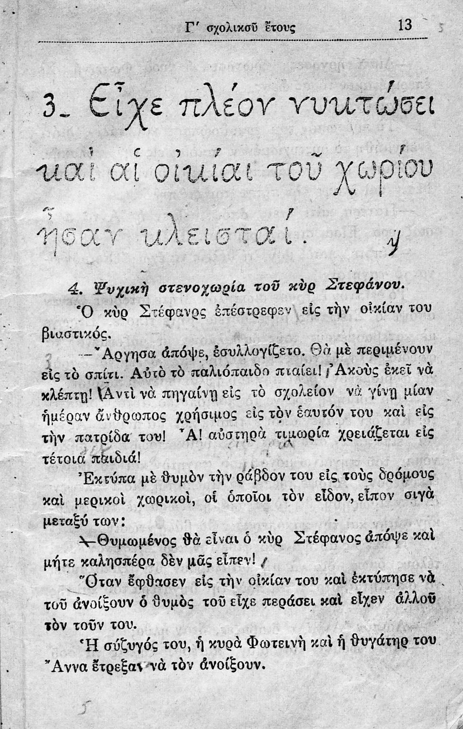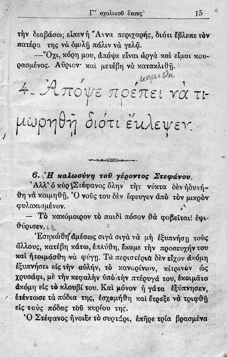 Αναγνωστικό του Δημοτικού. Περιέχει κείμενα της Γαλάτειας Καζαντζάκη. Στο τέλος του βιβλίου υπάρχουν καλλιγραφικά υποδείγματα από το Αναγνωσματάριο του Δημοσθένη Ανδρεάδη.