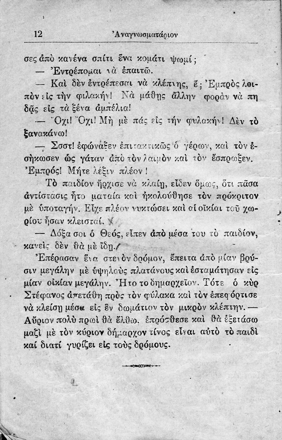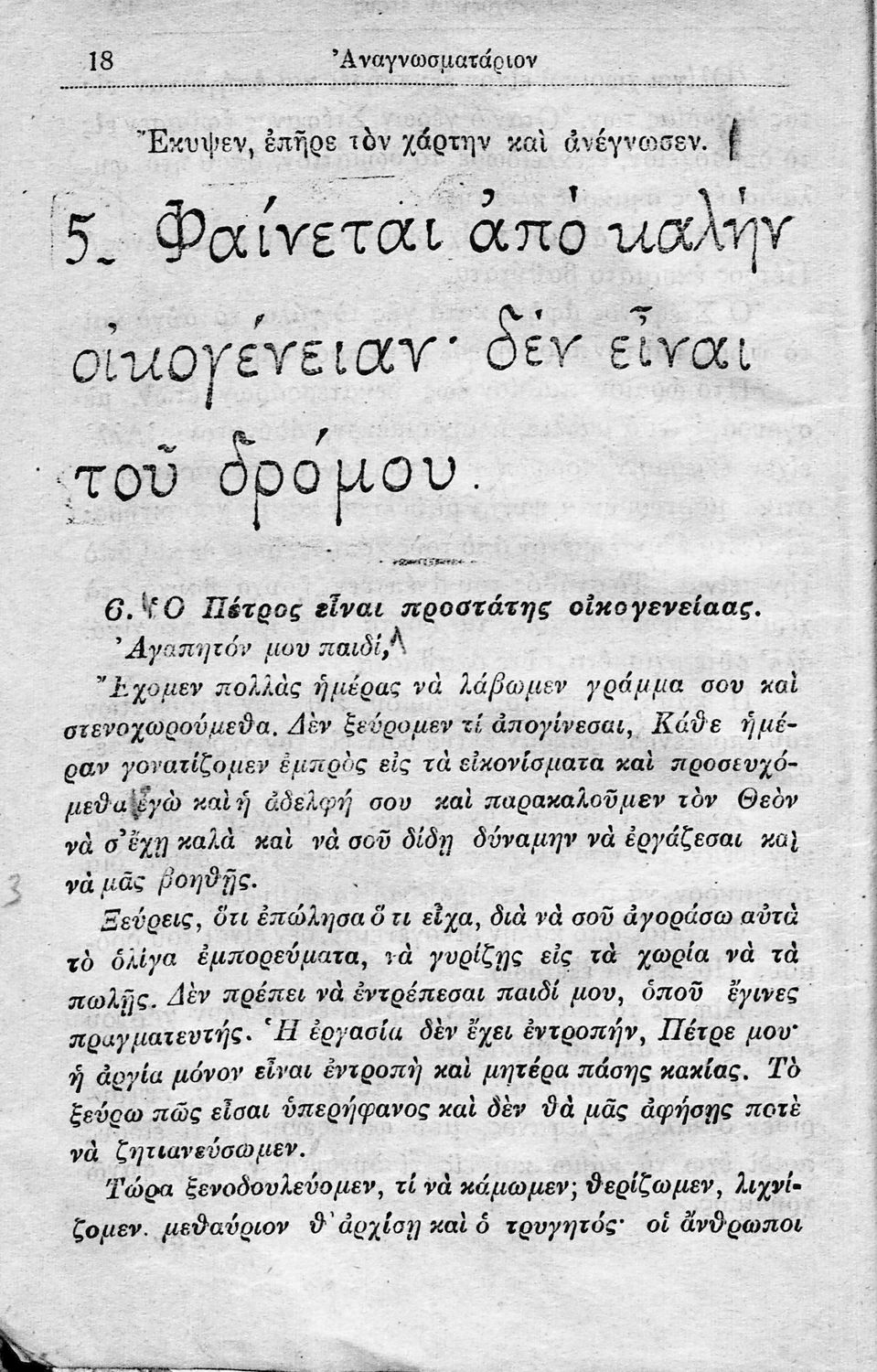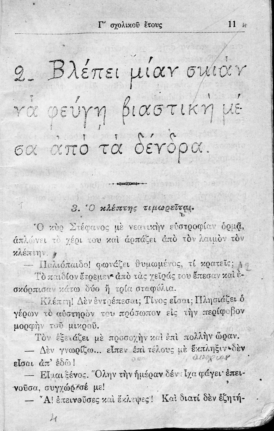 Παρουσίαση περιεχομένου: Σχολικό εγχειρίδιο Γλώσσας για την Γ΄ Δημοτικού. Περιλαμβάνει κείμενα σχετικά με την αγροτική ζωή και τη φύση. Εγκρίθηκε στον Πανταζοπούλειο διαγωνισμό που προκηρύχτηκε στις 24-7-1913 για να συνταχτεί αναγνωσματάριο για τα Α΄, Β΄, Γ΄, Δ΄ έτη της Δημοτικής Εκπαιδεύσεως.