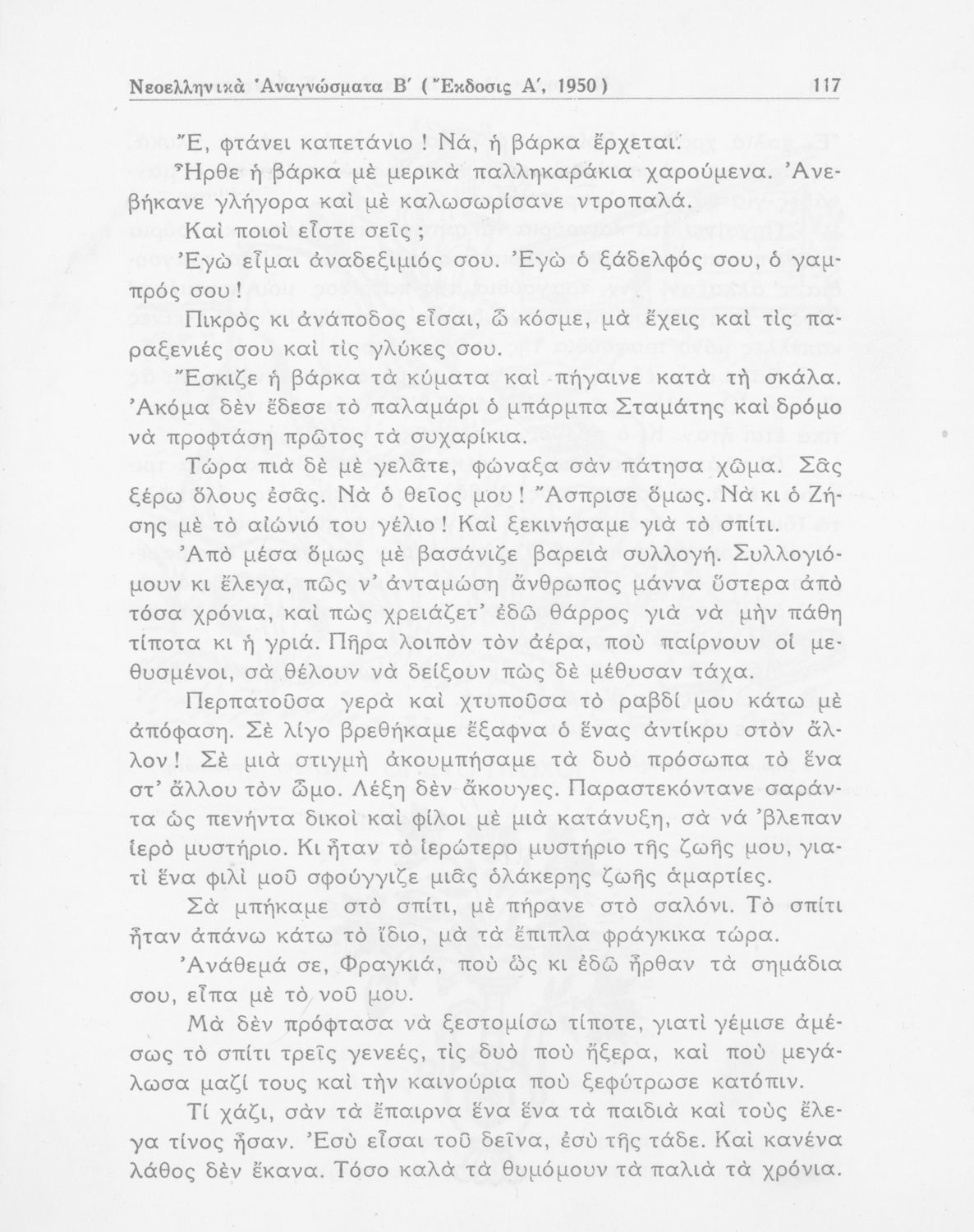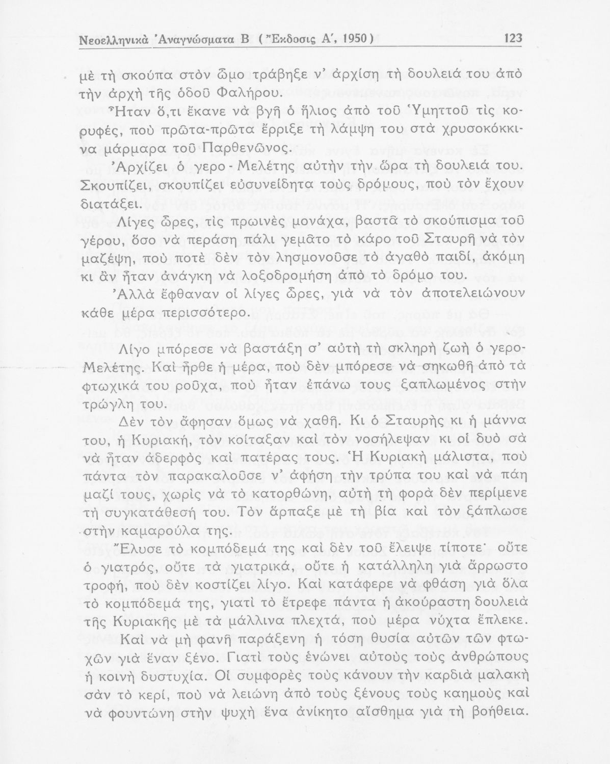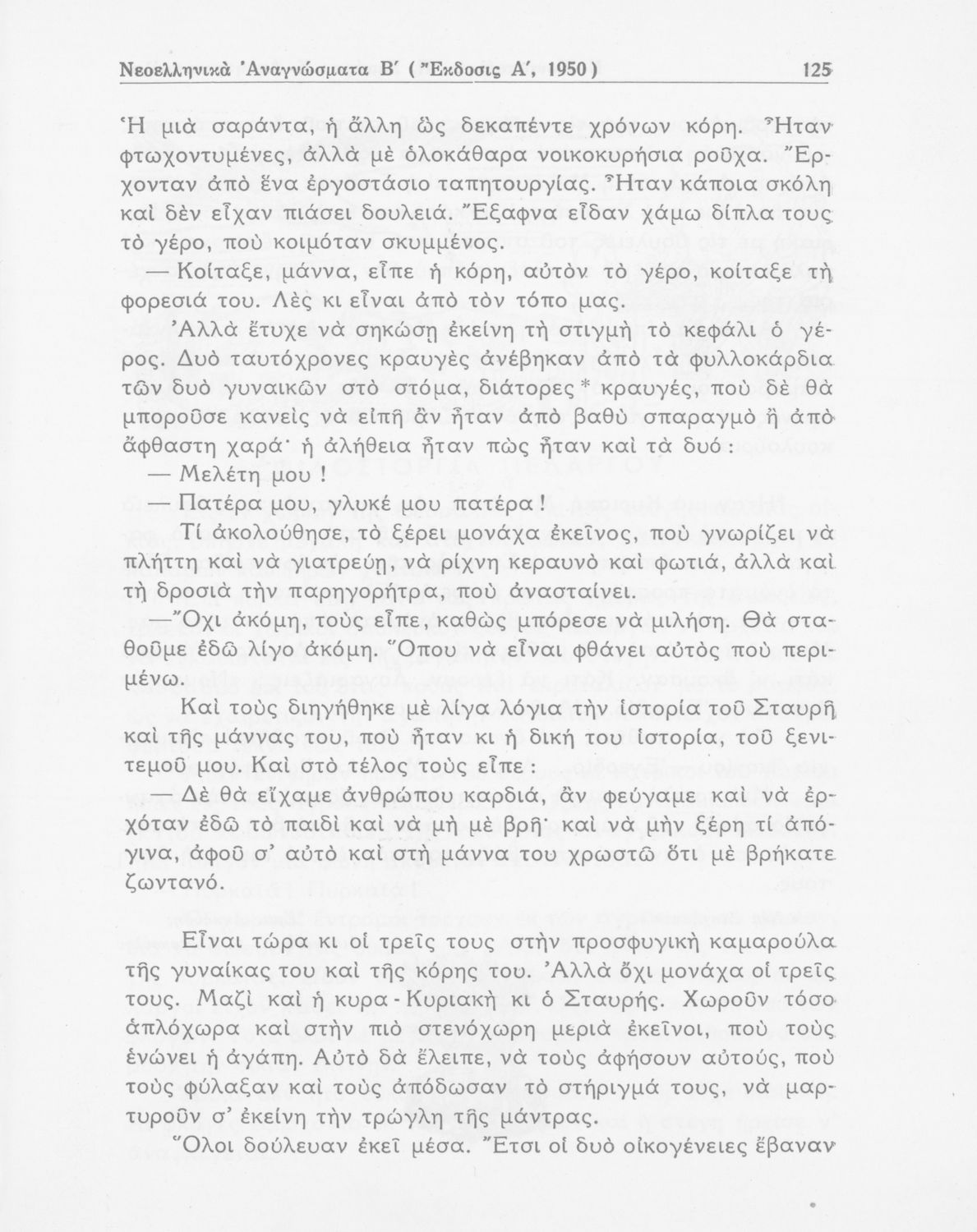 Σχολικό εγχειρίδιο Νέων Ελληνικών Δ΄ Γυμνασίου και Β΄ Αστικού Σχολείου που περιέχει πεζά και ποιήματα Ελλήνων συγγραφέων εμπνευσμένα από τη θρησκευτική και κοινωνική ζωή, την ελληνική μυθολογία, την αρχαία και