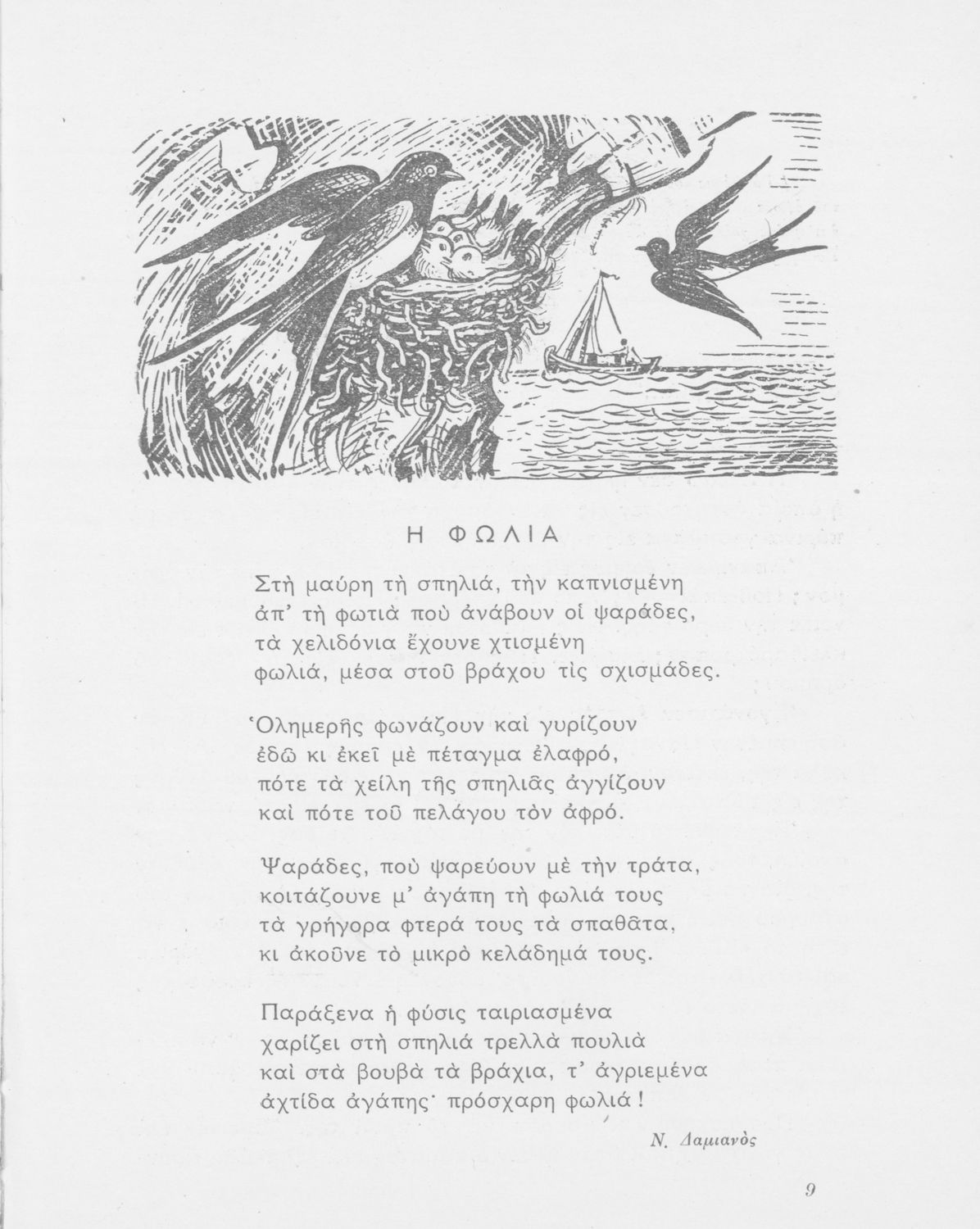 Σχολικό εγχειρίδιο Νέων Ελληνικών Β' Γυμνασίου που περιέχει ποιήματα και πεζά Ελλήνων συγγραφέων εμπνευσμένα από τη θρησκευτική, εθνική, οικογενειακή και κοινωνική ζωή και την ελληνική φύση. Περιέχει παράρτημα