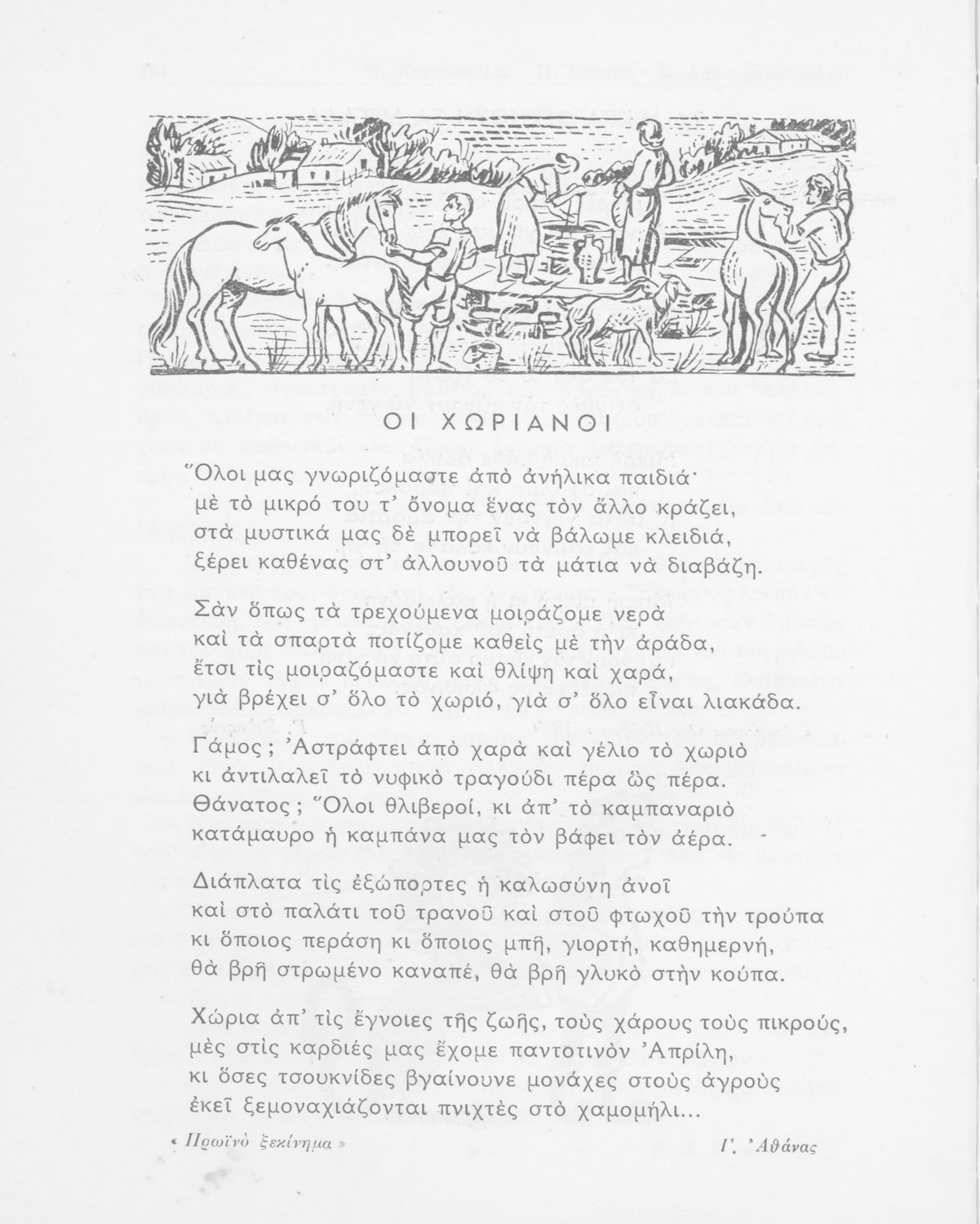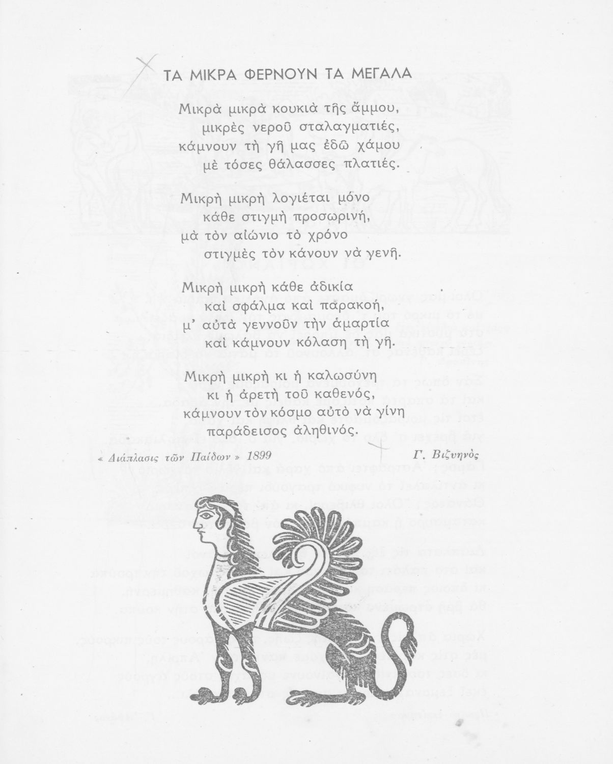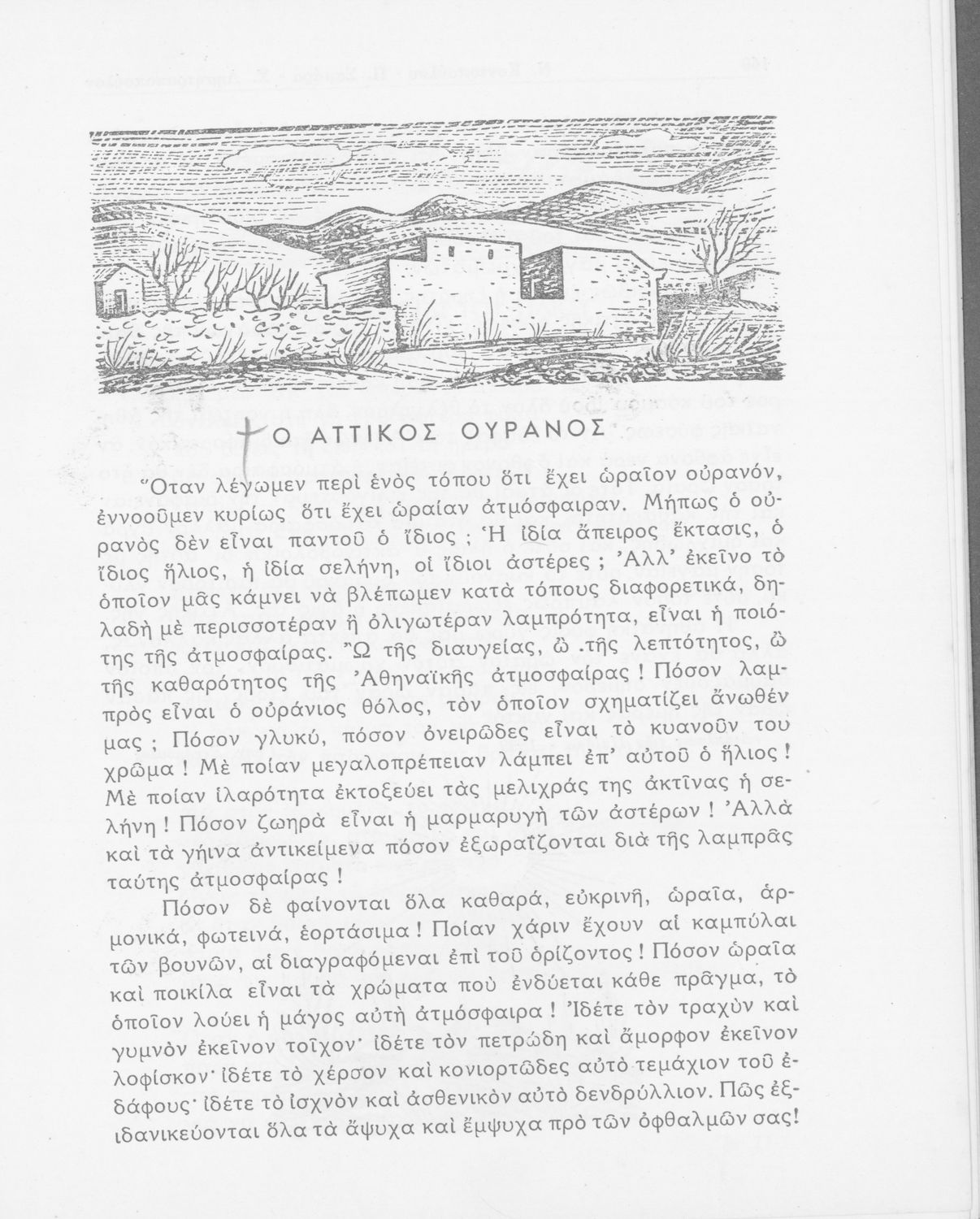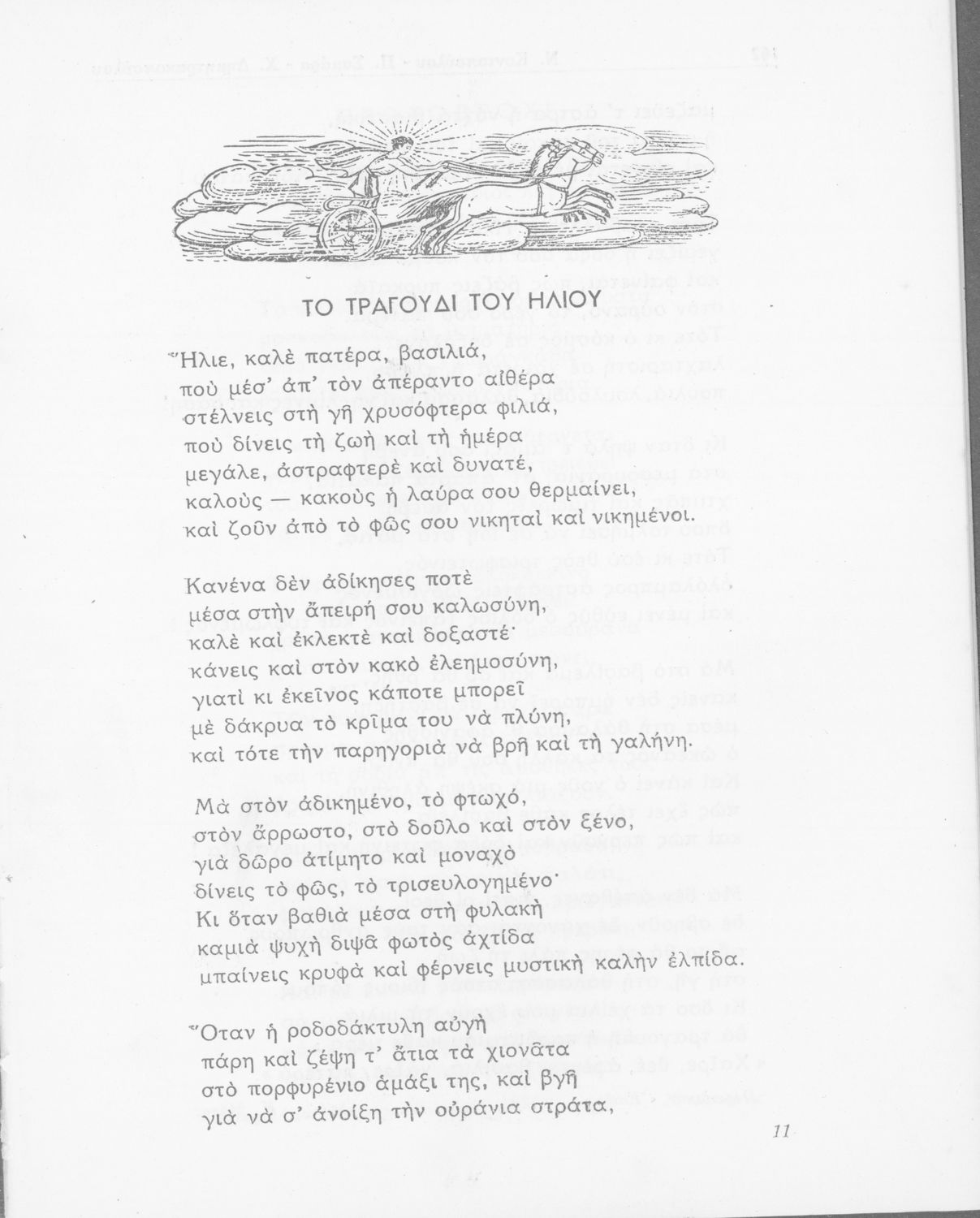 Σχολικό εγχειρίδιο Νέων Ελληνικών Δ΄ Γυμνασίου και Β΄ Αστικού Σχολείου που περιέχει πεζά και ποιήματα Ελλήνων συγγραφέων εμπνευσμένα από τη θρησκευτική και κοινωνική ζωή, την ελληνική μυθολογία, την αρχαία και