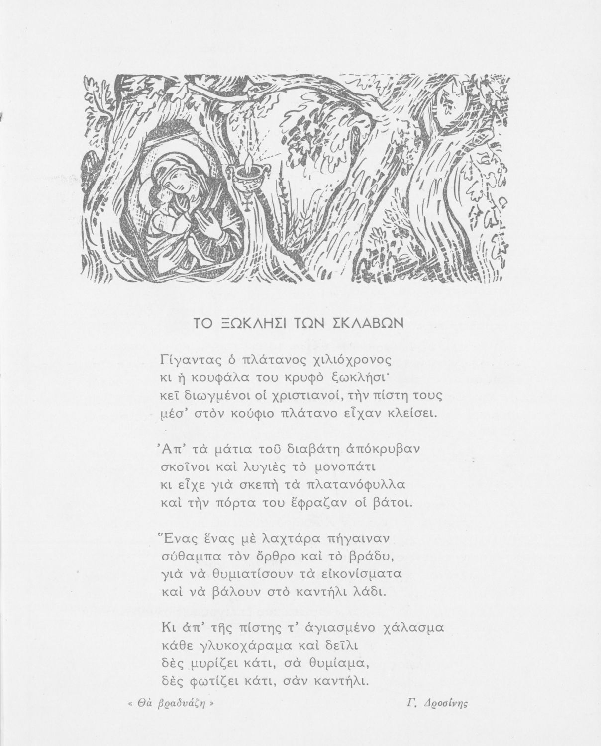 Σχετιζόμενοι όροι:  Κρυστάλλης, Παλαμάς, Σολωμός, Δροσίνης