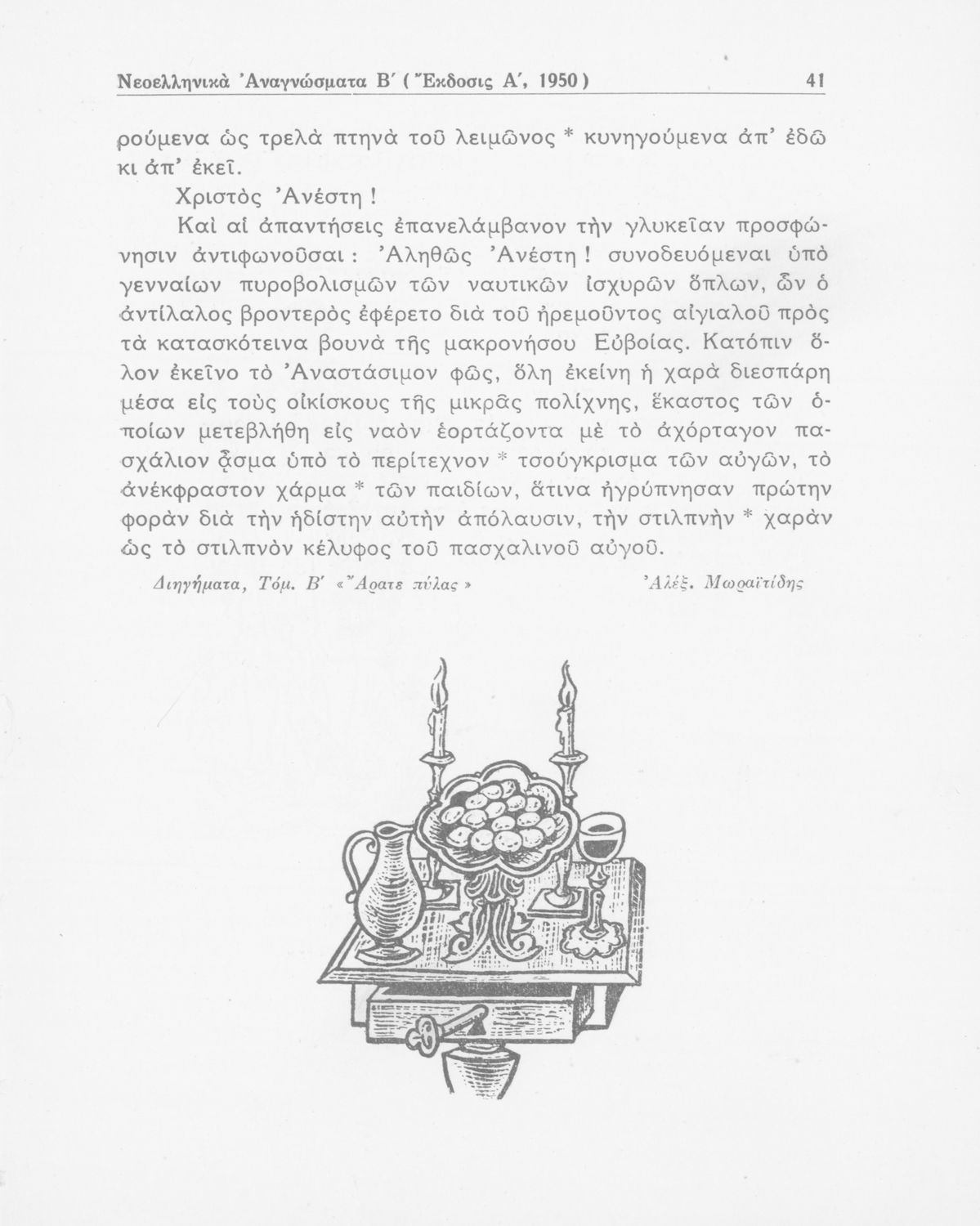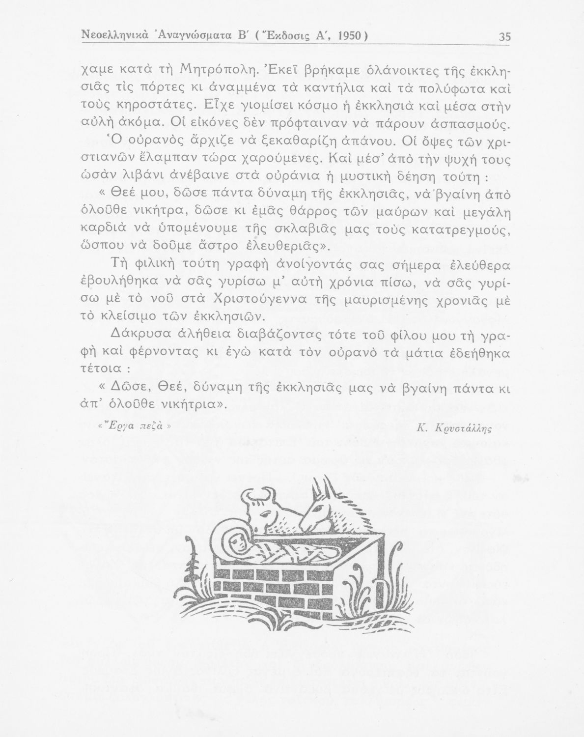 Σχολικό εγχειρίδιο Νέων Ελληνικών Δ΄ Γυμνασίου και Β΄ Αστικού Σχολείου που περιέχει πεζά και ποιήματα Ελλήνων συγγραφέων εμπνευσμένα από τη θρησκευτική και κοινωνική ζωή, την ελληνική μυθολογία, την αρχαία και