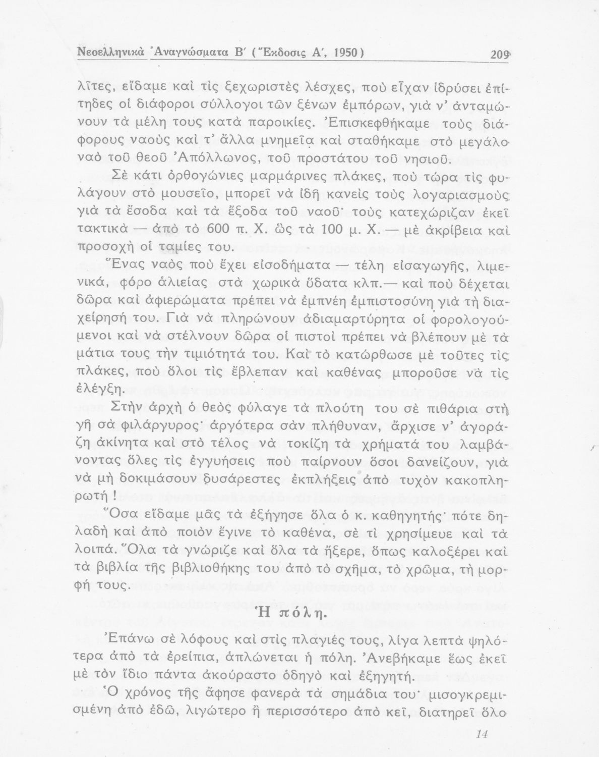 Σχολικό εγχειρίδιο Νέων Ελληνικών Δ΄ Γυμνασίου και Β΄ Αστικού Σχολείου που περιέχει πεζά και ποιήματα Ελλήνων συγγραφέων εμπνευσμένα από τη θρησκευτική και κοινωνική ζωή, την ελληνική μυθολογία, την αρχαία και