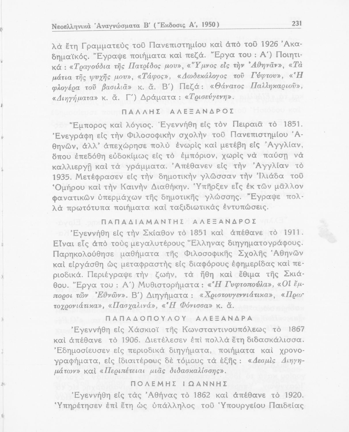 Σχετιζόμενοι όροι:  Βάμβας, Κοραής, Παλαμάς, Παπαδιαμάντης