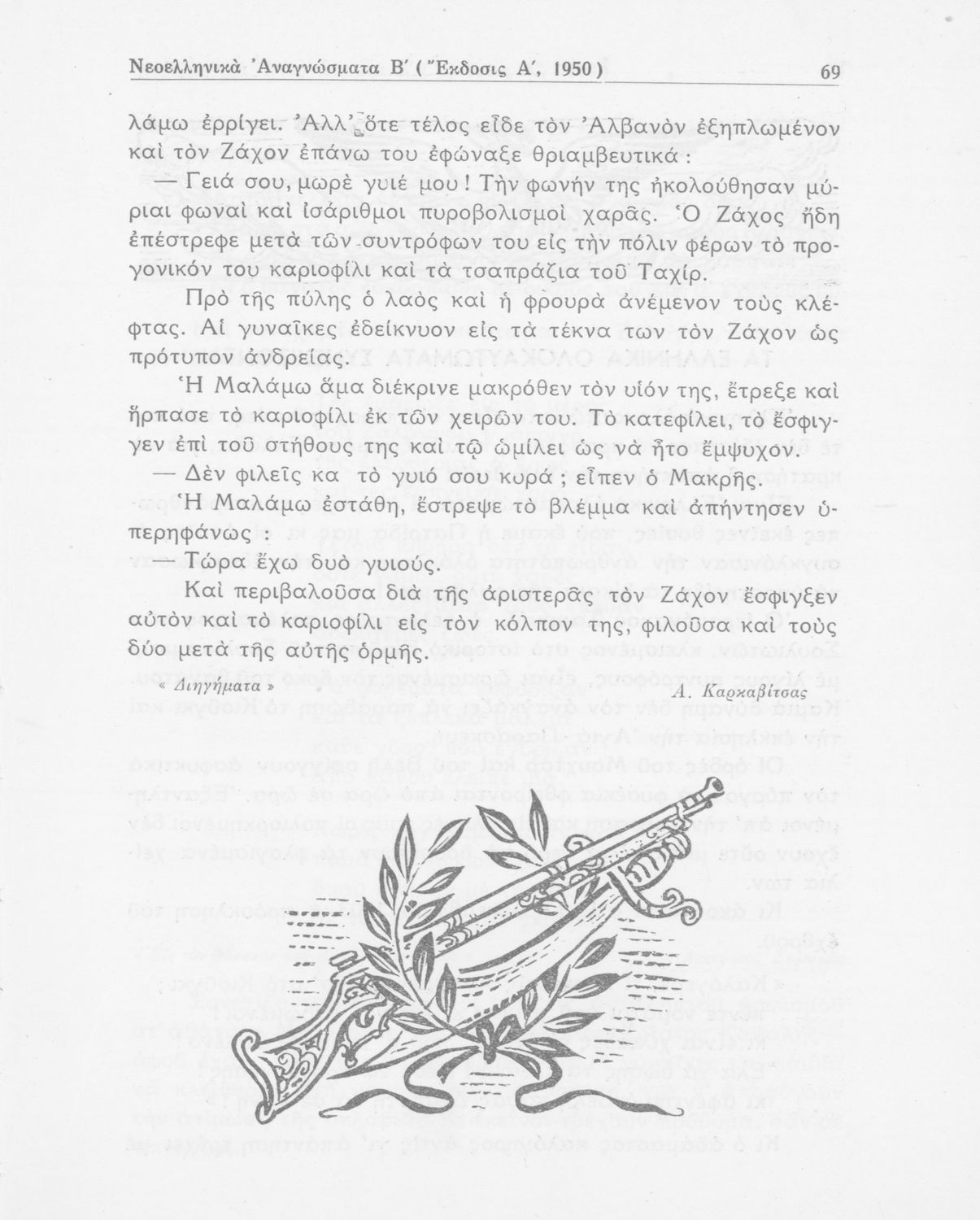 Σχολικό εγχειρίδιο Νέων Ελληνικών Δ΄ Γυμνασίου και Β΄ Αστικού Σχολείου που περιέχει πεζά και ποιήματα Ελλήνων συγγραφέων εμπνευσμένα από τη θρησκευτική και κοινωνική ζωή, την ελληνική μυθολογία, την αρχαία και