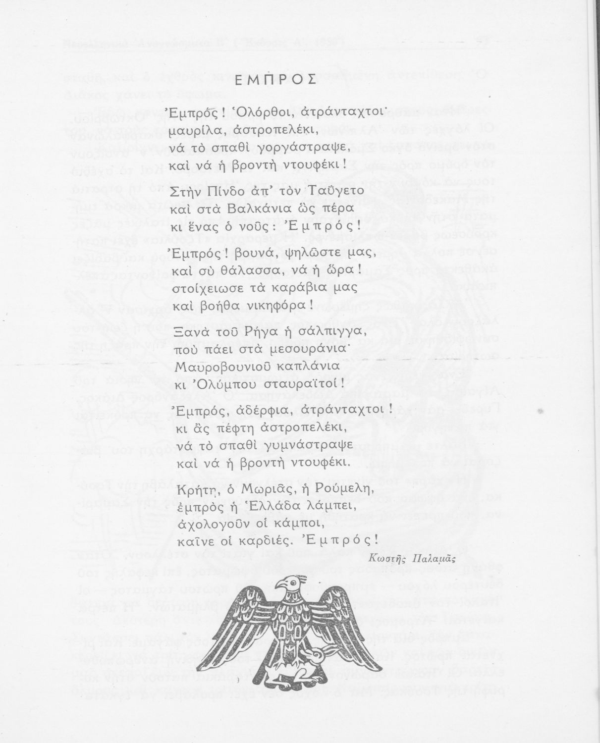 Σχετιζόμενοι όροι:  Κρυστάλλης, Παλαμάς, Σολωμός, Δροσίνης
