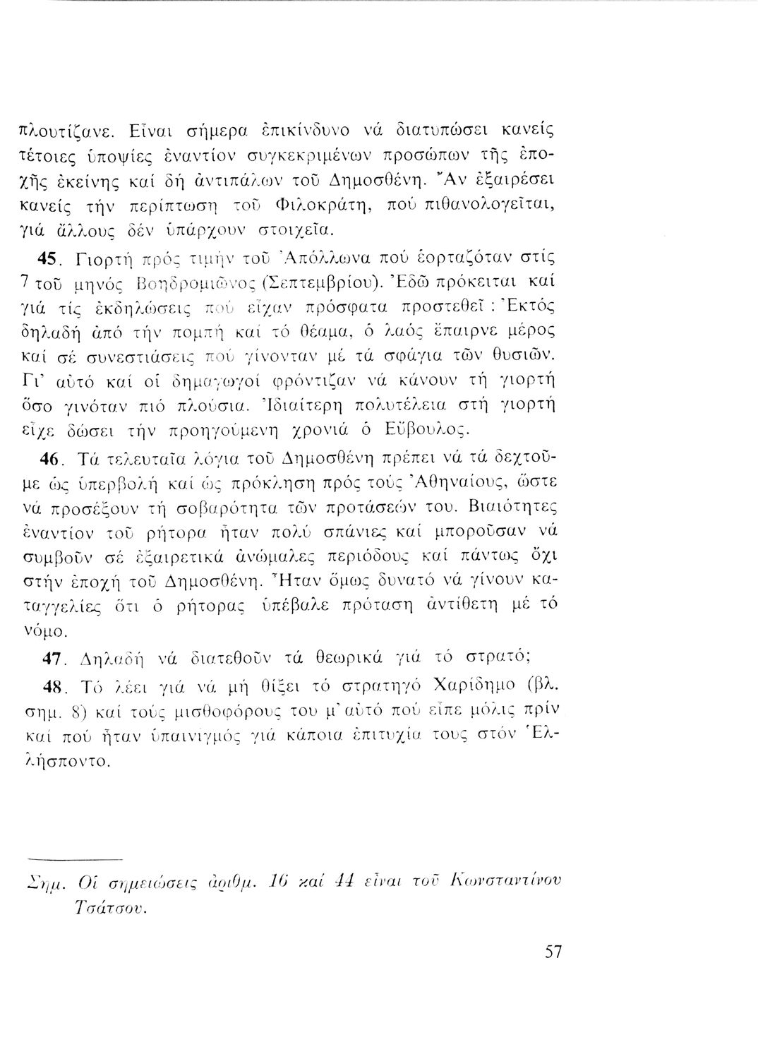 Δημοσθένης, Βασίλειος Τσακατίκας (σχόλια)