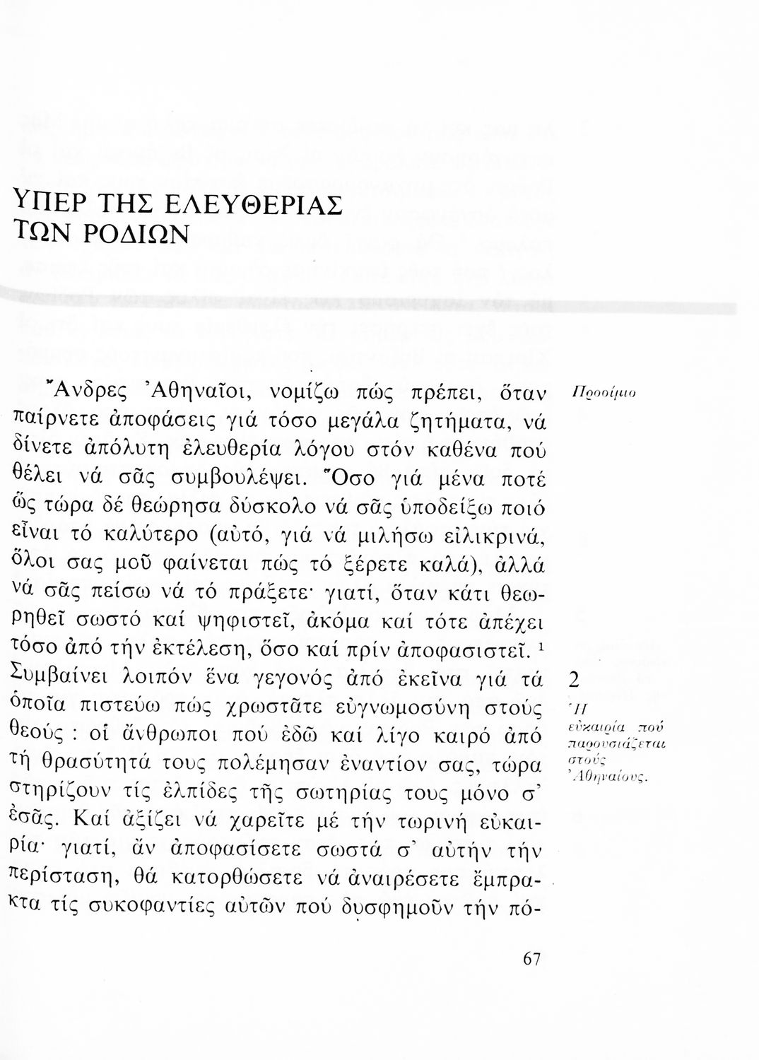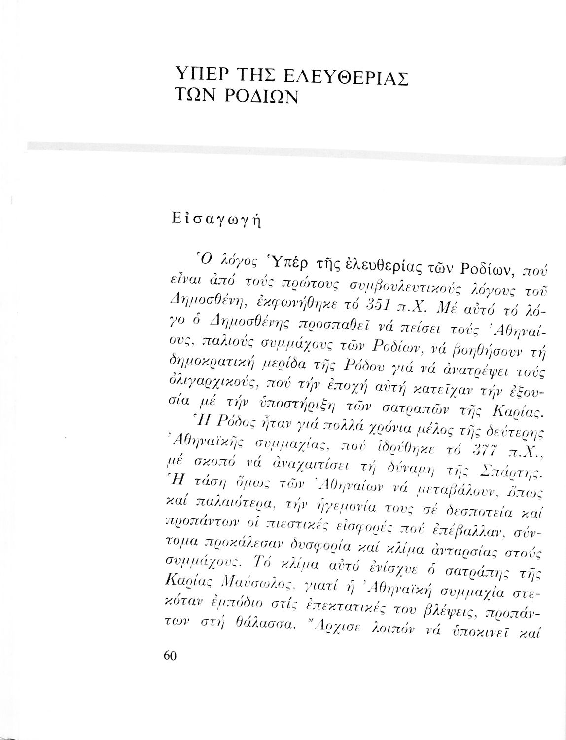 Τίτλος: Λόγοι του Δημοσθένη Γ΄ Ολυνθιακός, Υπέρ της ελευθερίας των Ροδίων Γ΄ Γυμνασίου
