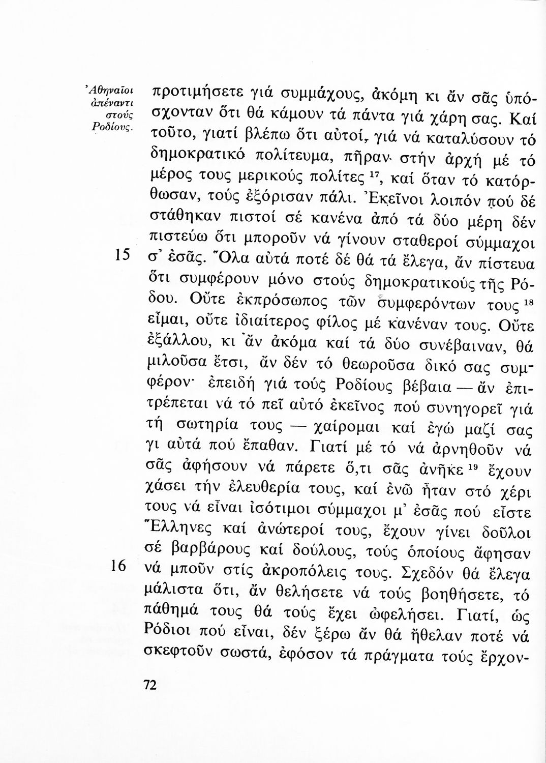 Λόγοι του Δημοσθένη Γ΄ Ολυνθιακός, Υπέρ της ελευθερίας των Ροδίων Γ΄ Γυμνασίου