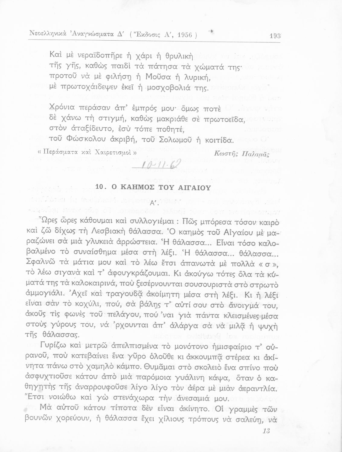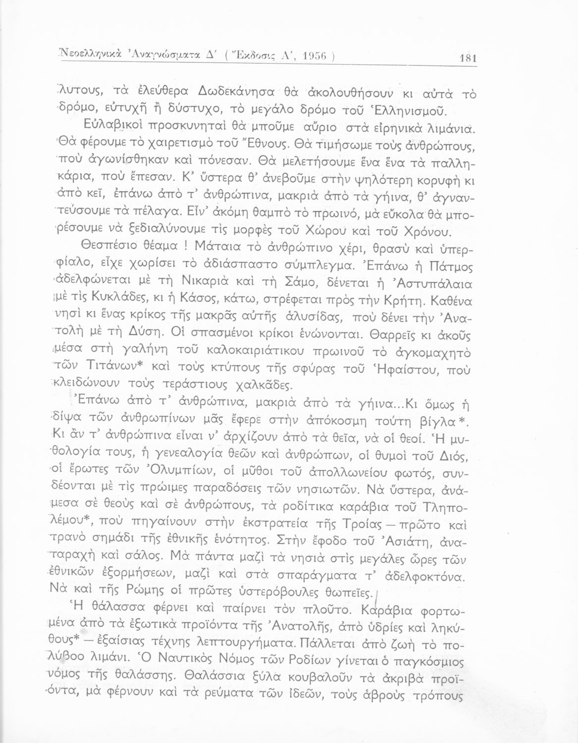 Σχολικό εγχειρίδιο Νέων Ελληνικών Δ΄ Γυμνασίου και Β΄ Αστικού Σχολείου που περιέχει πεζά και ποιήματα Ελλήνων συγγραφέων εμπνευσμένα από τη θρησκευτική και κοινωνική ζωή, την ελληνική μυθολογία, την αρχαία και