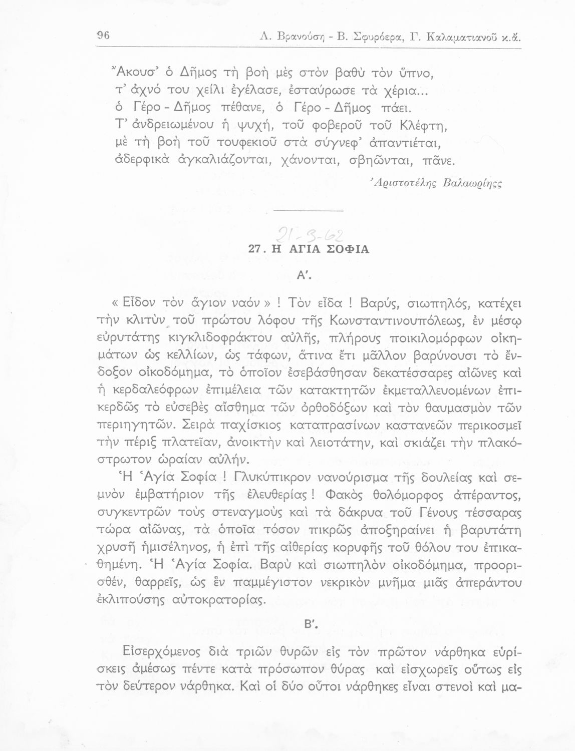 Συγγραφέας: Λ. Βρανούσης, Β. Σφυρόερας, Γ. Καλαματιανός, Κ. Ρωμαίος, Π. Πάρρης