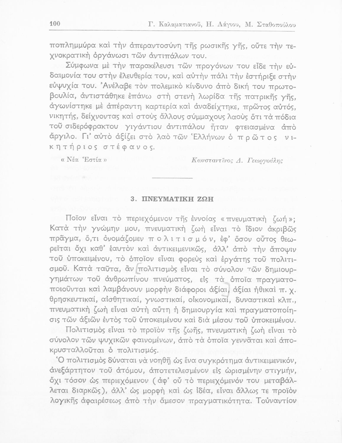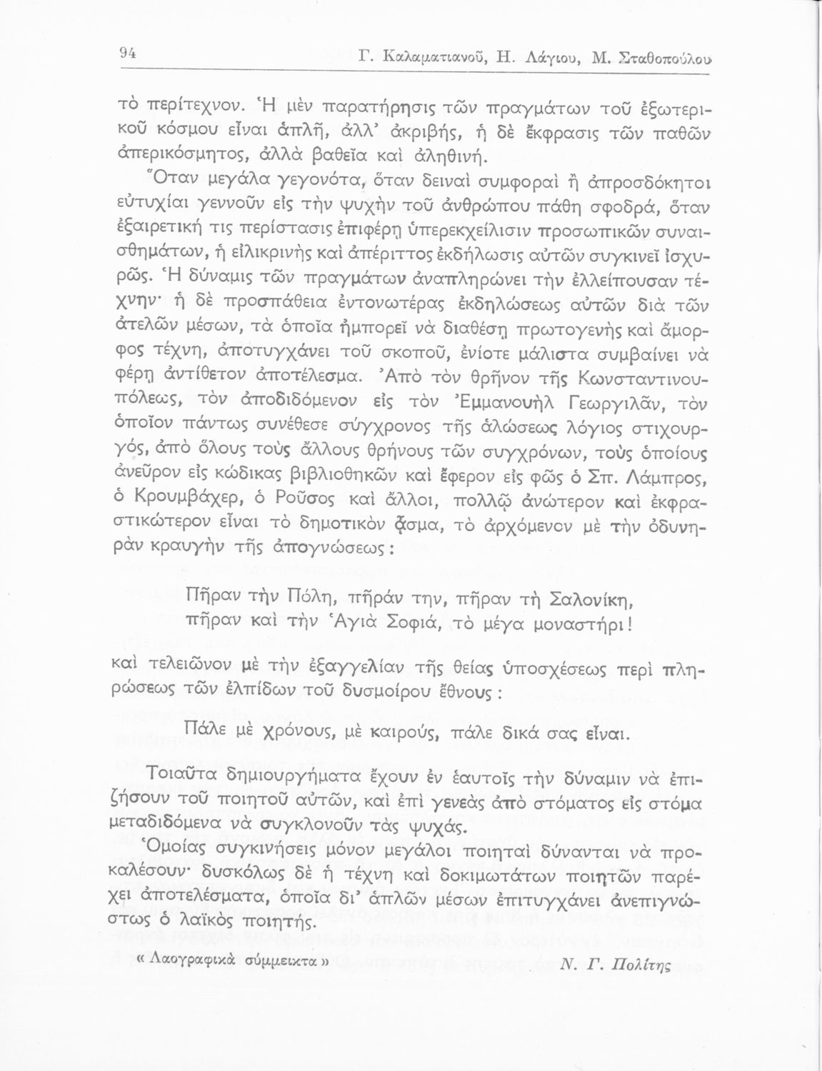 Γ. Καλαματιανός, Η. Λάγιος, Μ. Σταθοπούλου-Χριστοφέλλη