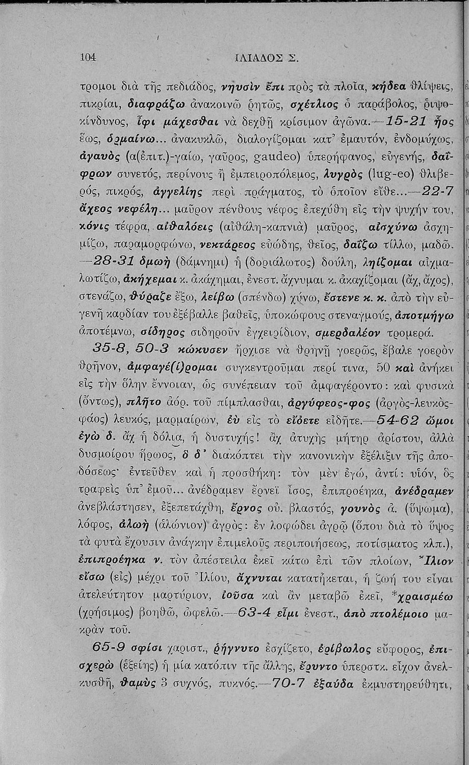 Παρουσίαση περιεχομένου: Μαθητικό βοήθημα του Ελληνικού Σχολείου, των Παρθεναγωγείων και του Γυμνασίου για το μάθημα των Αρχαίων Ελληνικών. Περιέχει τις ραψωδίες Ο, Π, Ρ, Σ, Τ, Χ, ψ, Ω από το πρωτότυπο με σχόλια και ερμηνευτικές παρατηρήσεις από τον συγγραφέα. Ο συγγραφέας ήταν Καθηγητής παρά των Διδασκαλείων της Μ. Εκπαιδεύσεως.