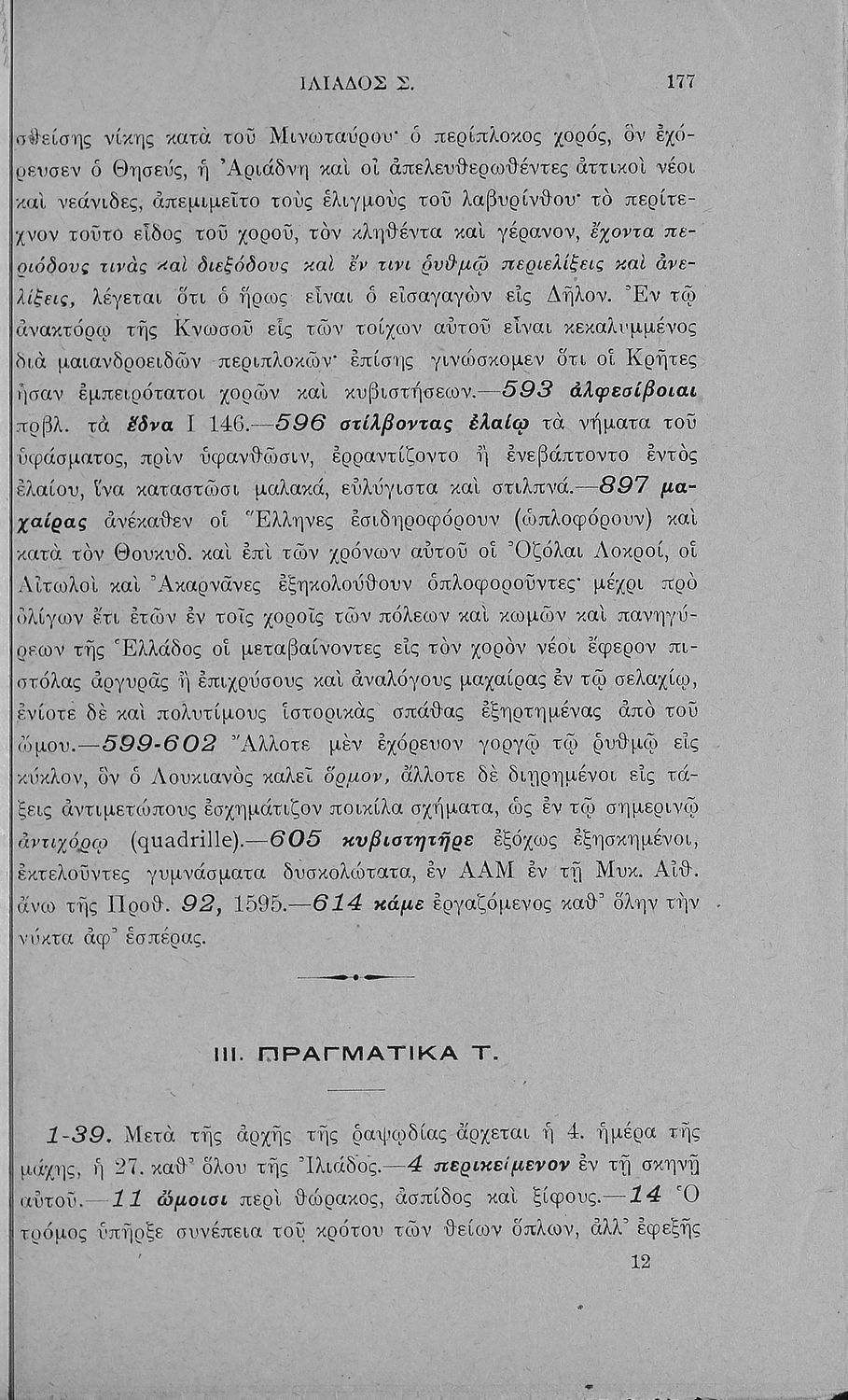 Παρουσίαση περιεχομένου: Μαθητικό βοήθημα του Ελληνικού Σχολείου, των Παρθεναγωγείων και του Γυμνασίου για το μάθημα των Αρχαίων Ελληνικών. Περιέχει τις ραψωδίες Ο, Π, Ρ, Σ, Τ, Χ, ψ, Ω από το πρωτότυπο με σχόλια και ερμηνευτικές παρατηρήσεις από τον συγγραφέα. Ο συγγραφέας ήταν Καθηγητής παρά των Διδασκαλείων της Μ. Εκπαιδεύσεως.