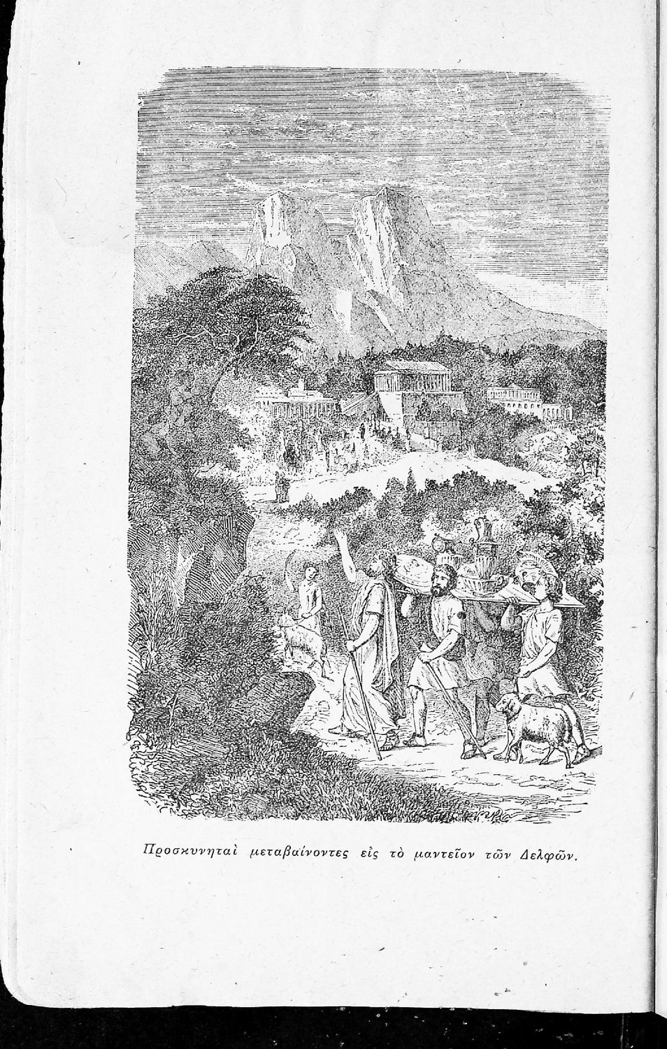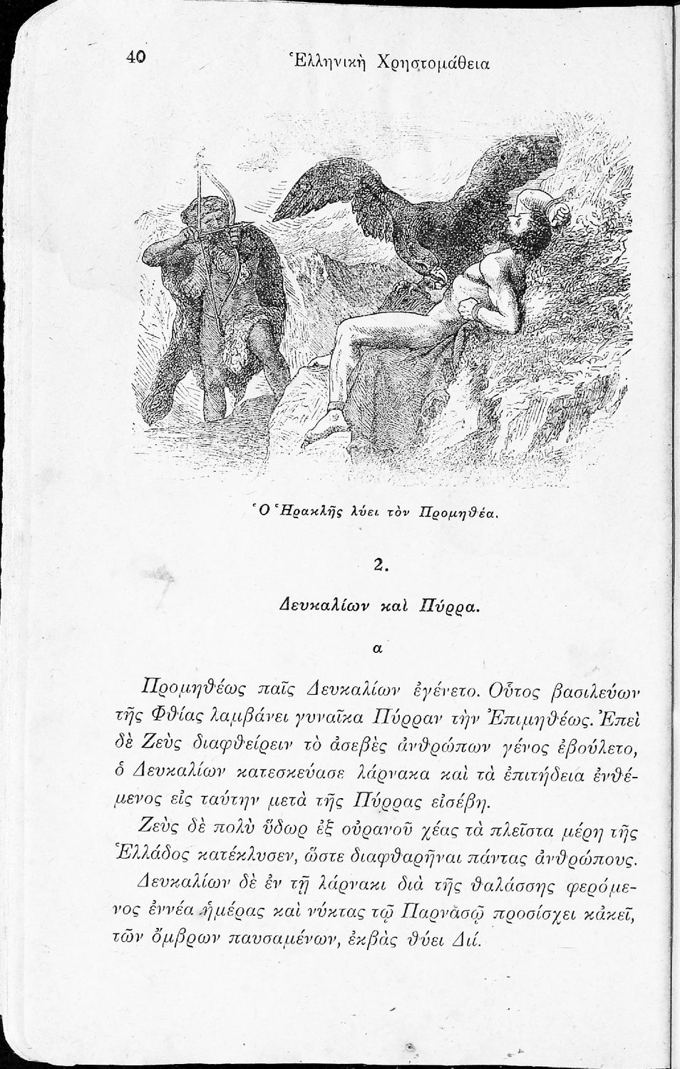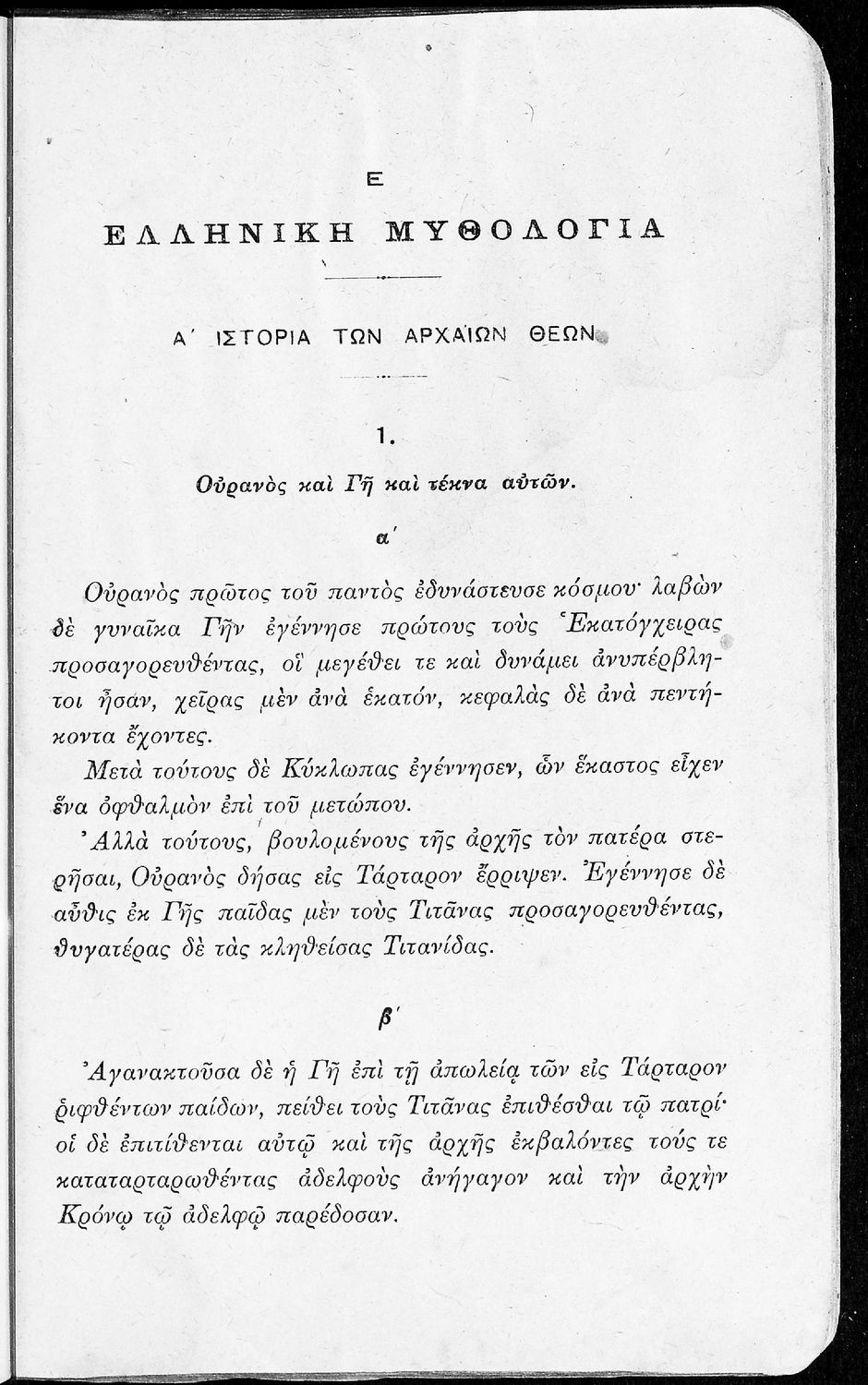 Σχολικό εγχειρίδιο Αρχαίων Ελληνικών για τις Α' Ελληνικού Σχολείου και Παρθεναγωγείου και την Ε΄ Δημοτικού που περιέχει κείμενα στην αρχαία ελληνική εμπνευσμένα από την ελληνική μυθολογία, και γραμματικές, ...