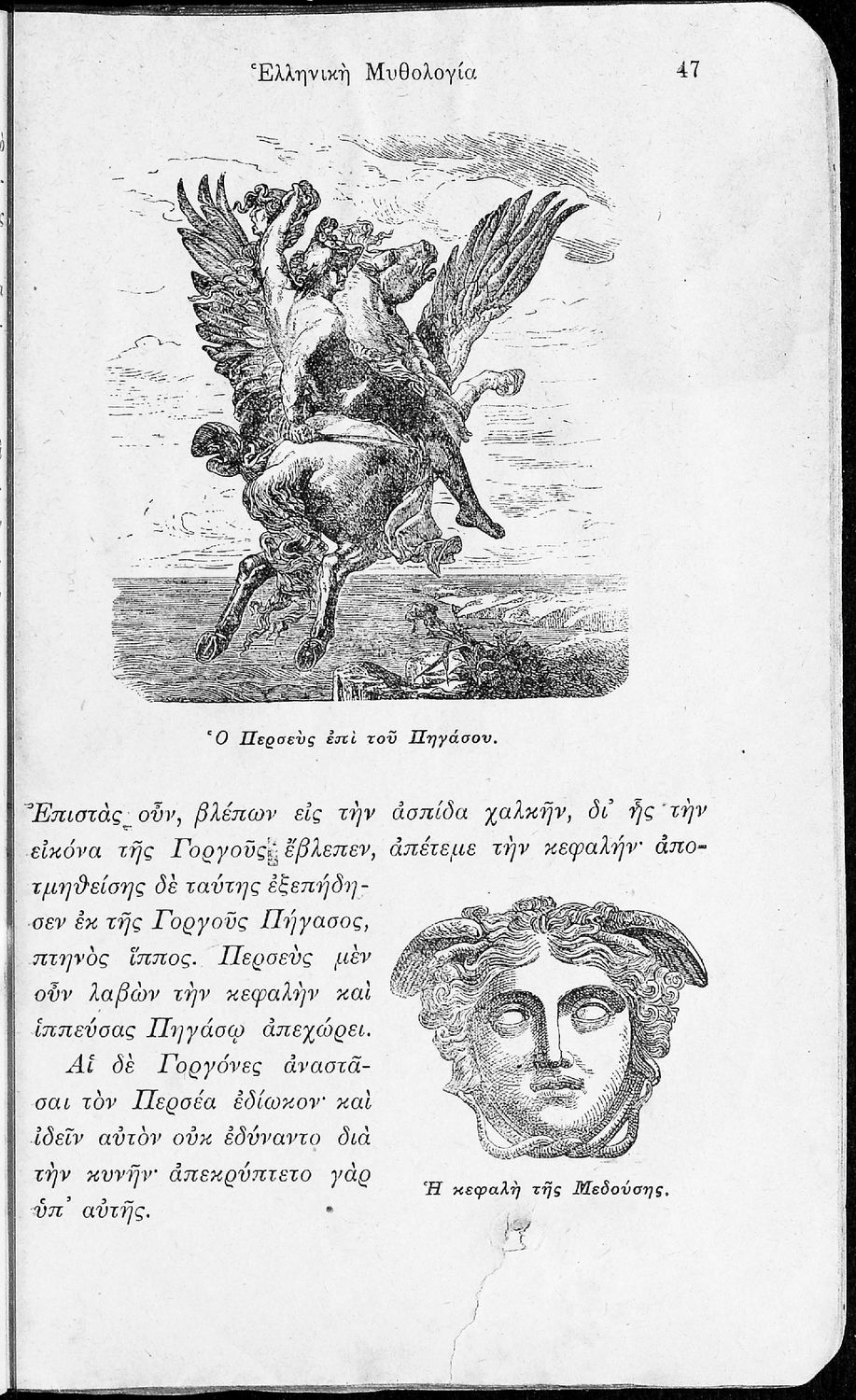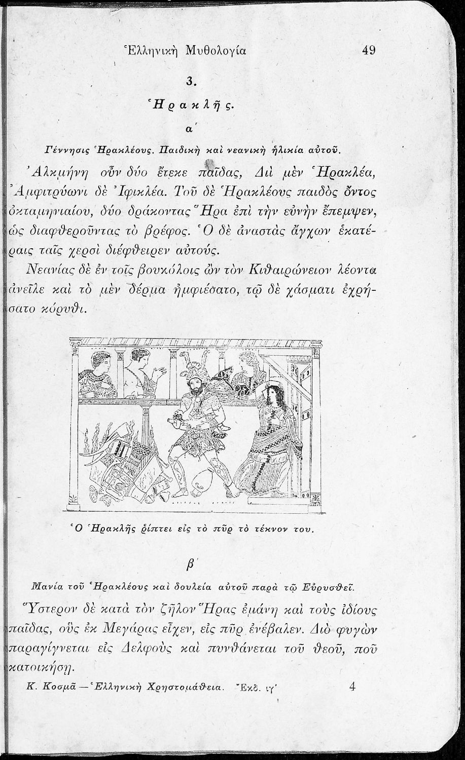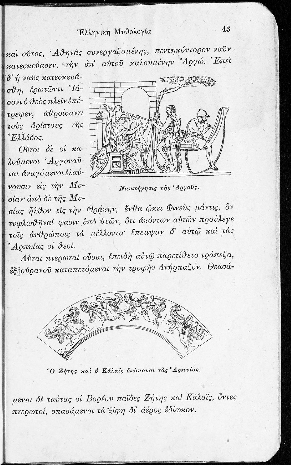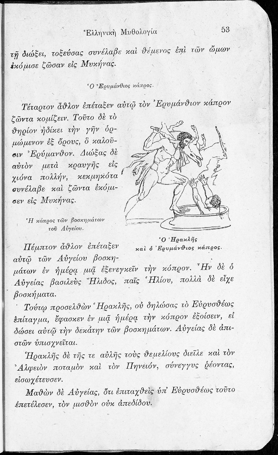 Σχολικό εγχειρίδιο Αρχαίων Ελληνικών για τις Α' Ελληνικού Σχολείου και Παρθεναγωγείου και την Ε΄ Δημοτικού που περιέχει κείμενα στην αρχαία ελληνική εμπνευσμένα από την ελληνική μυθολογία, και γραμματικές, ...