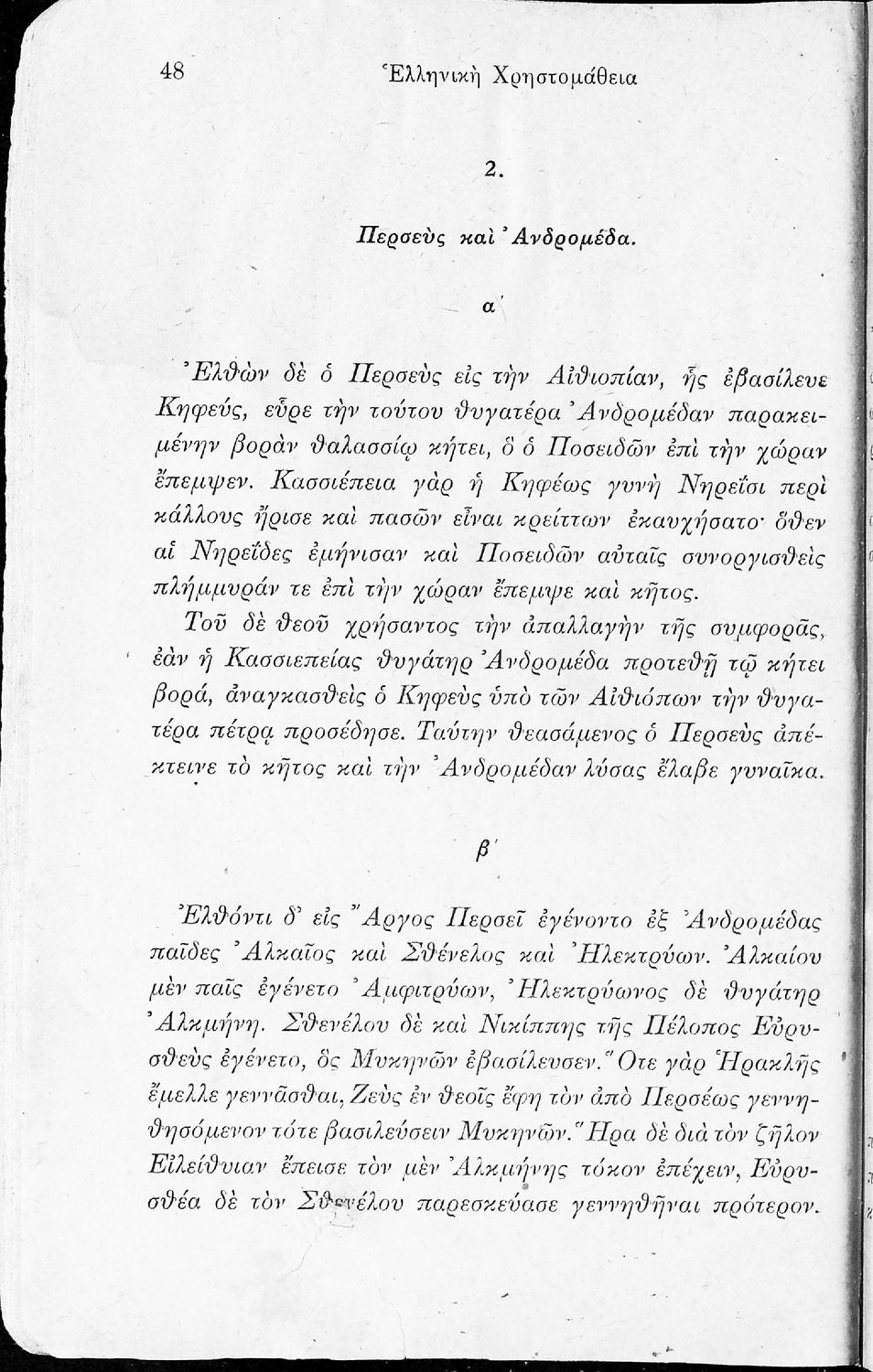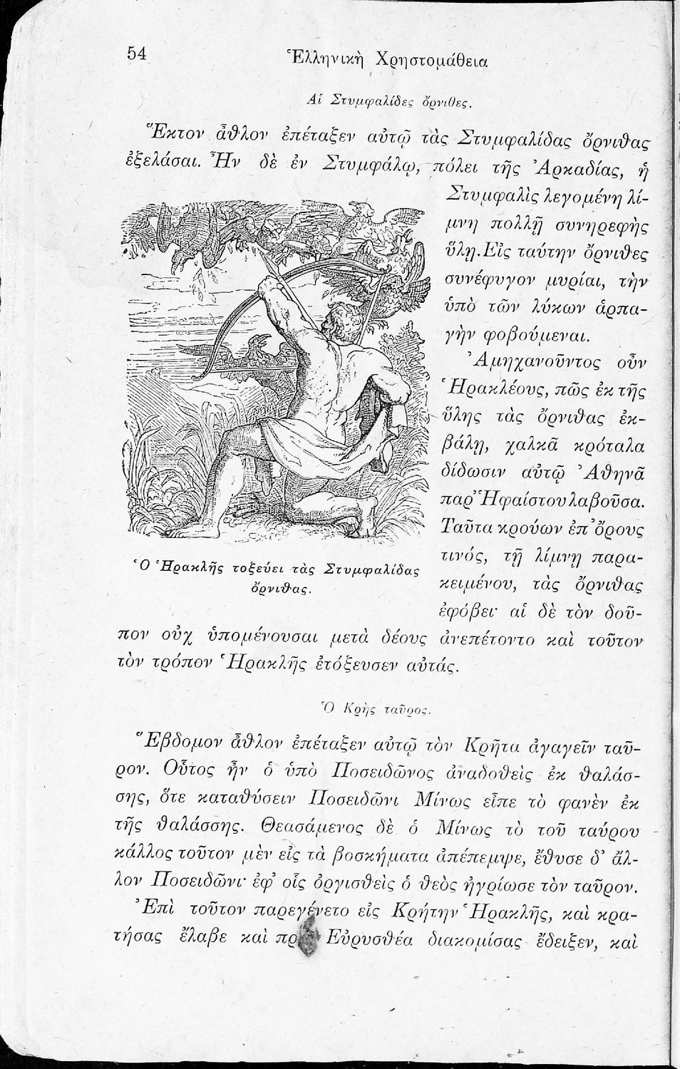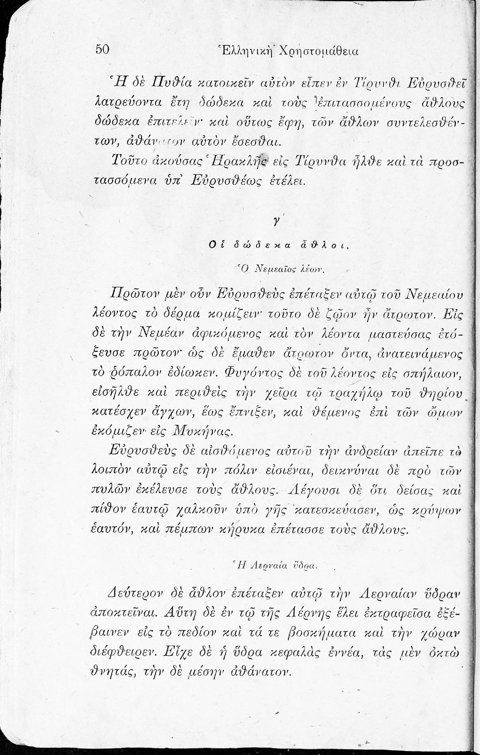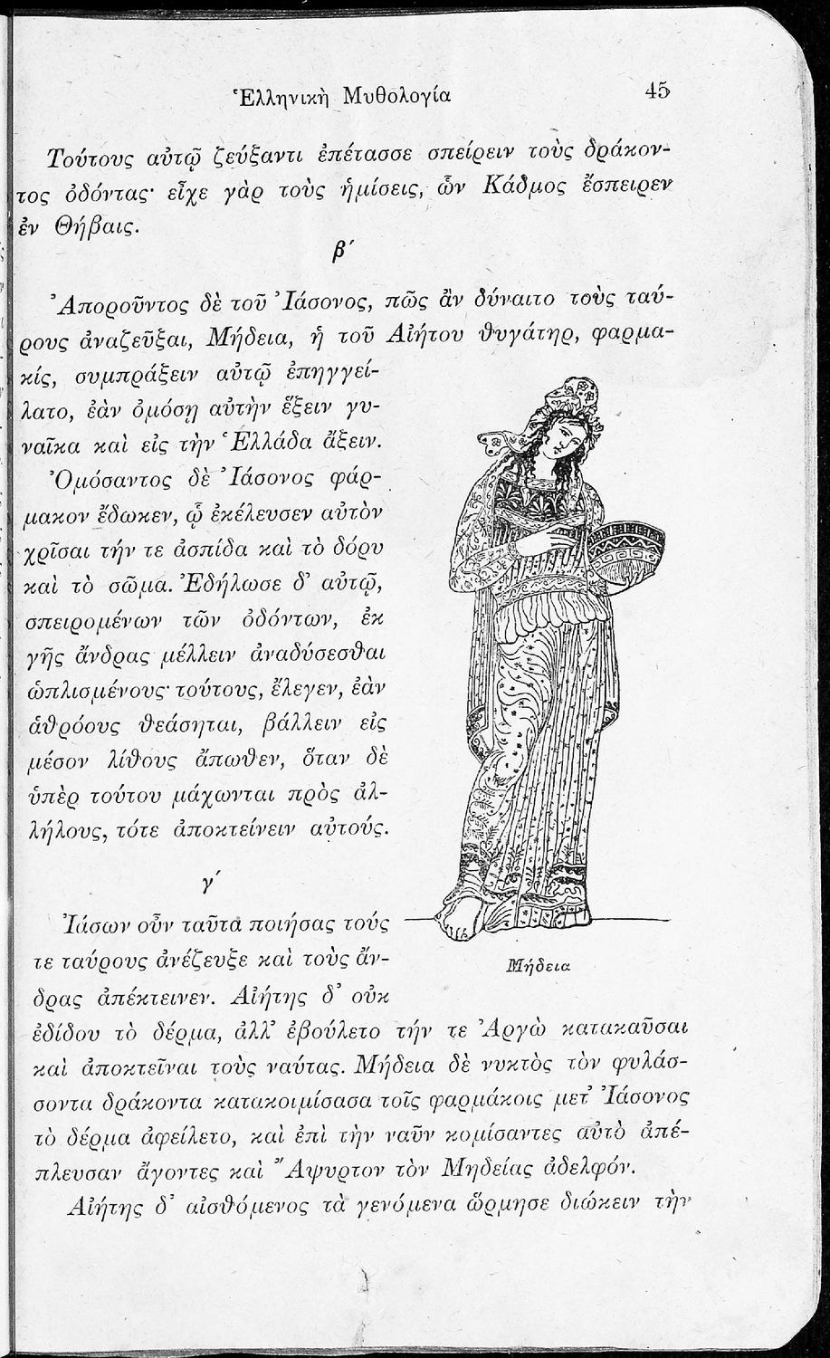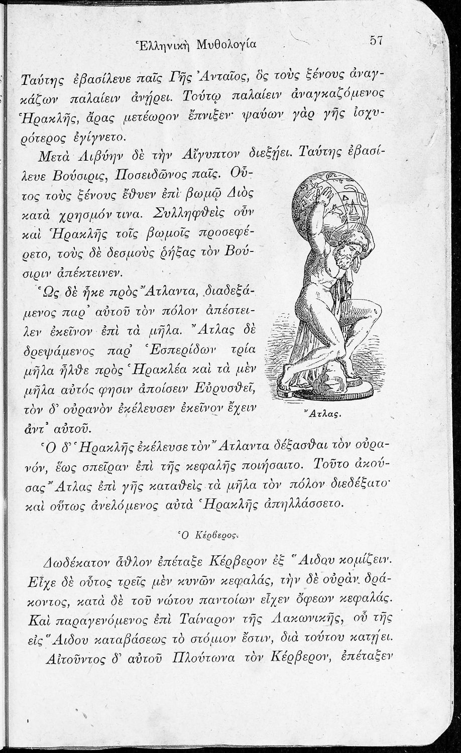 Σχολικό εγχειρίδιο Αρχαίων Ελληνικών για τις Α' Ελληνικού Σχολείου και Παρθεναγωγείου και την Ε΄ Δημοτικού που περιέχει κείμενα στην αρχαία ελληνική εμπνευσμένα από την ελληνική μυθολογία, και γραμματικές, ...