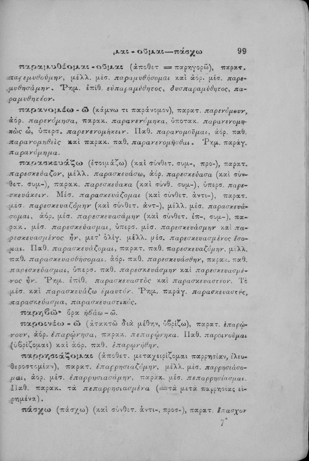 Μαθητικό βοήθημα Αρχαίων Ελληνικών Ελληνικού Σχολείου και Παρθεναγωγείου που περιέχει κατάλογο των ανώμαλων ρημάτων και ονομάτων της αρχαίας ελληνικής γραμματείας και ετυμολογικές, γραμματικές και σημασιολογικές παρατηρήσεις..