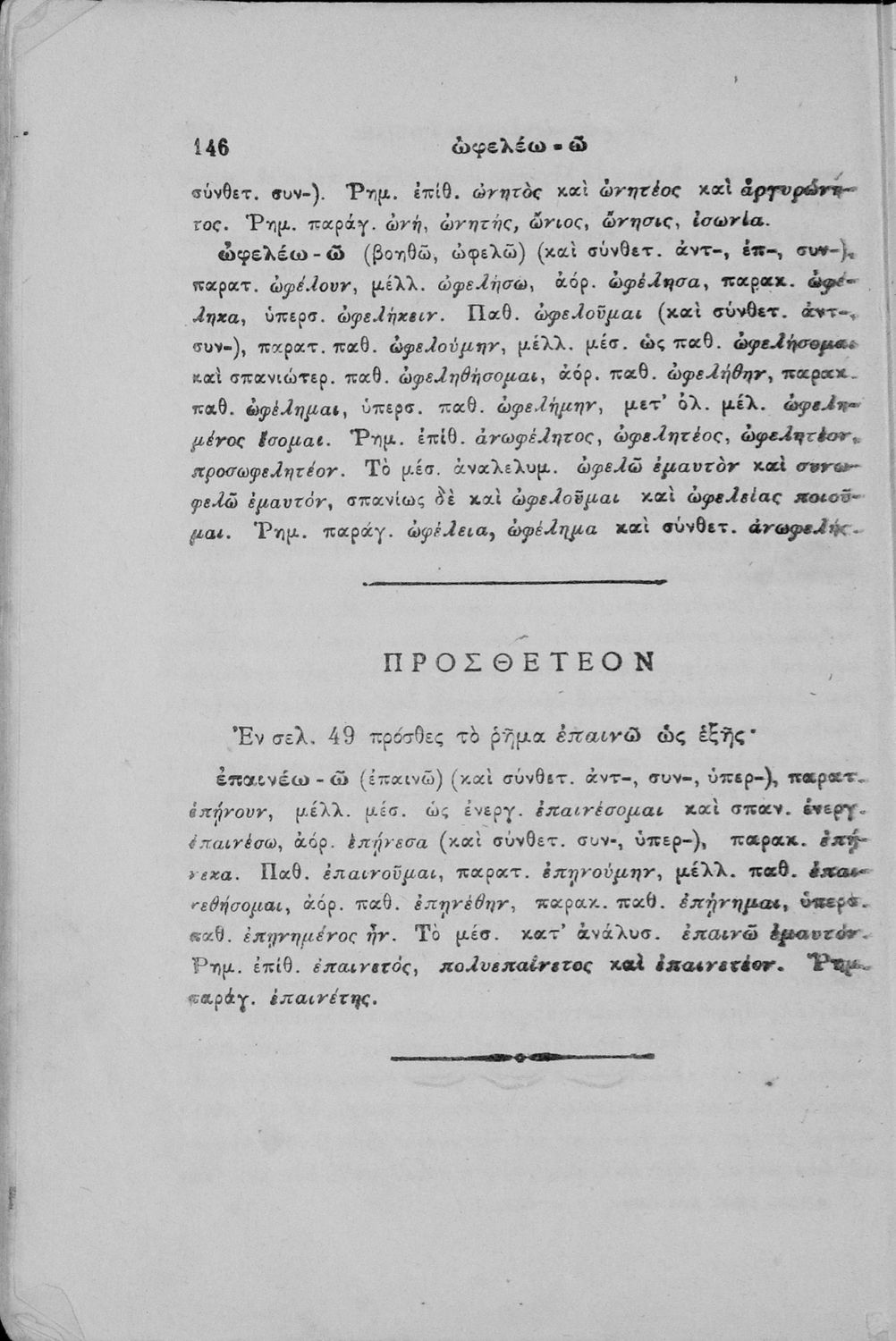 Μαθητικό βοήθημα Αρχαίων Ελληνικών για τα Ελληνικά Σχολεία, Παρθεναγωγεία και Γυμνάσια που περιλαμβάνει γραμματική της αρχαίας ελληνικής και κατάλογο ανωμάλων ρημάτων.