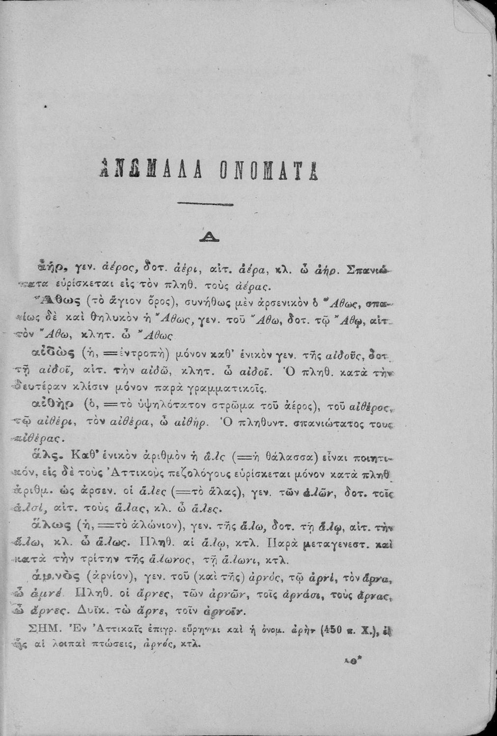 Μαθητικό βοήθημα Αρχαίων Ελληνικών Ελληνικού Σχολείου και Παρθεναγωγείου που περιέχει κατάλογο των ανώμαλων ρημάτων και ονομάτων της αρχαίας ελληνικής γραμματείας και ετυμολογικές, γραμματικές και σημασιολογικές παρατηρήσεις..
