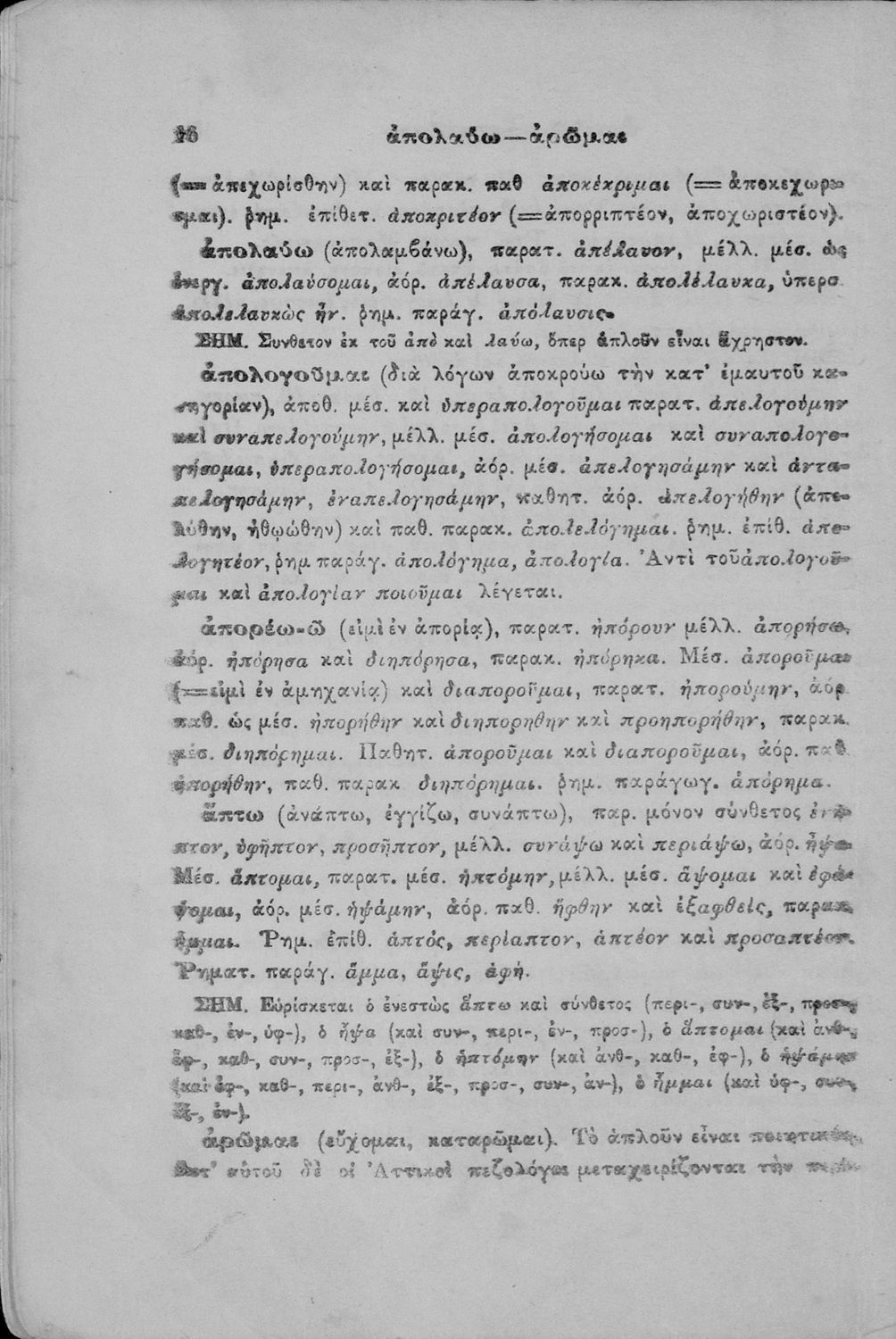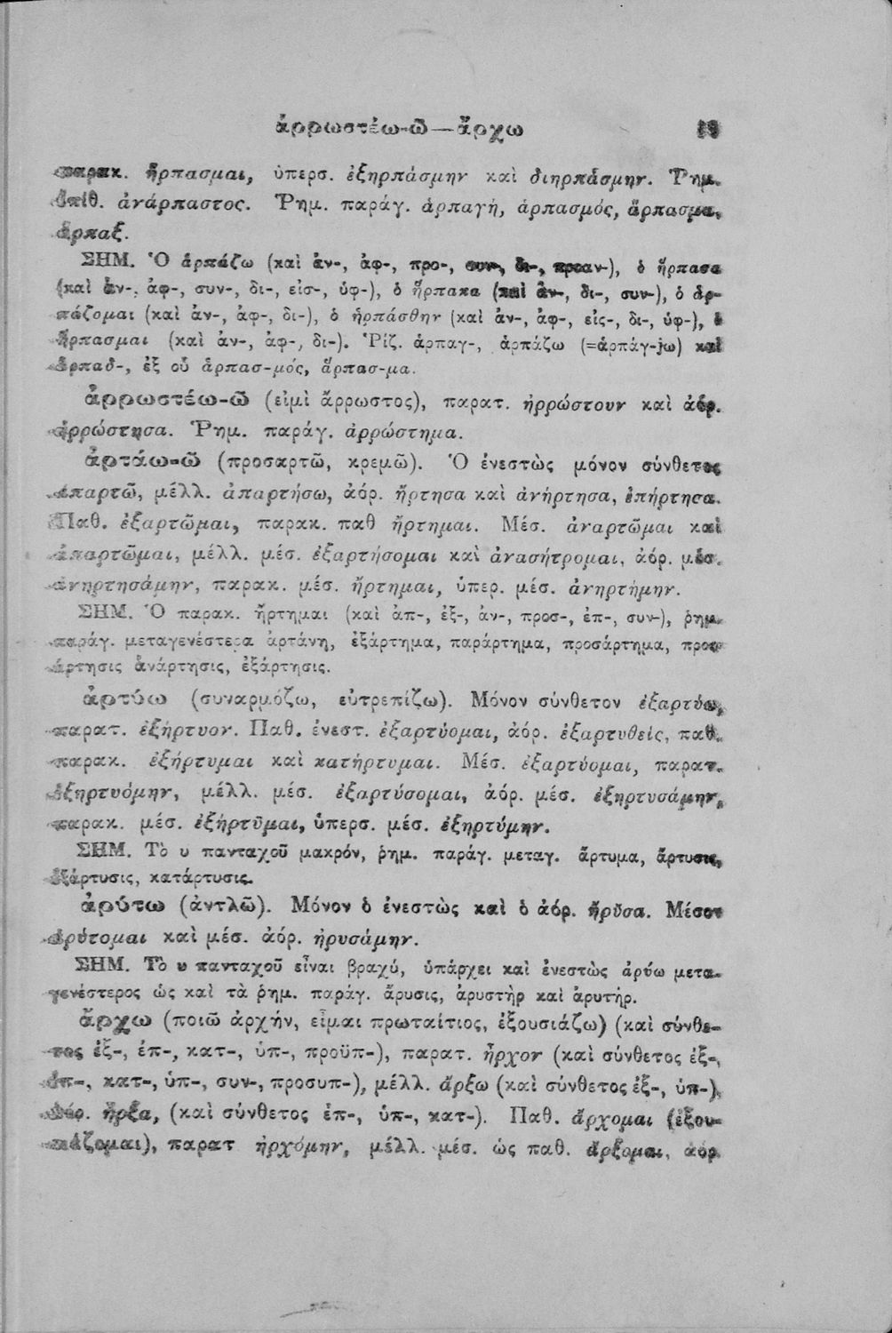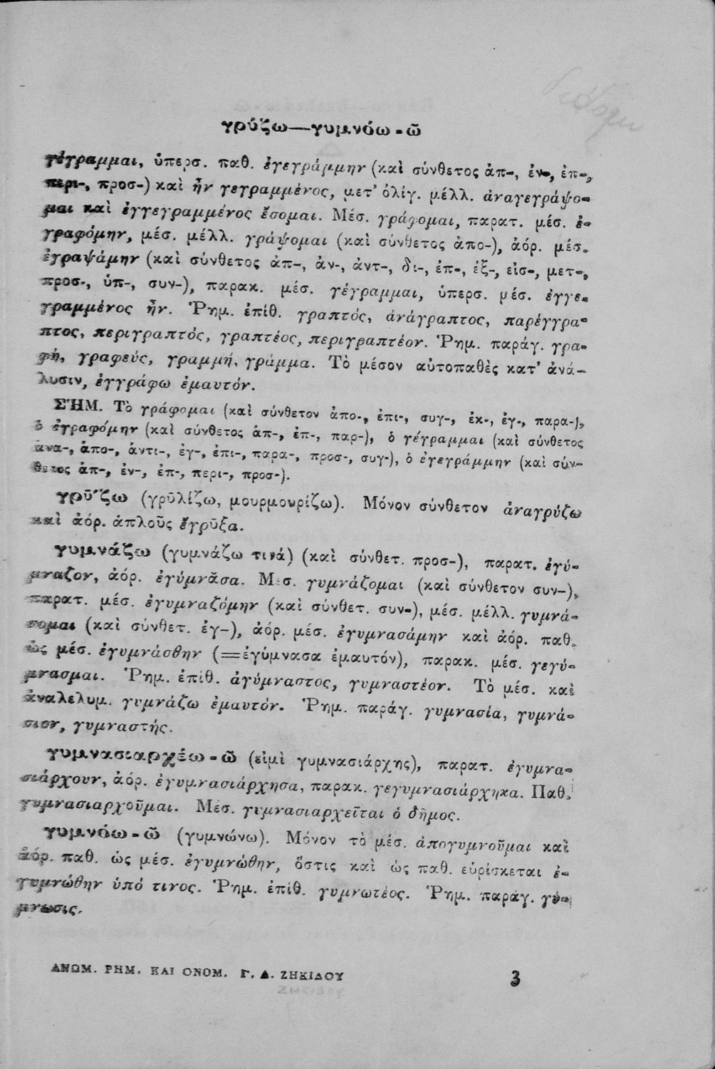 Μαθητικό βοήθημα Αρχαίων Ελληνικών Ελληνικού Σχολείου και Παρθεναγωγείου που περιέχει κατάλογο των ανώμαλων ρημάτων και ονομάτων της αρχαίας ελληνικής γραμματείας και ετυμολογικές, γραμματικές και σημασιολογικές παρατηρήσεις..