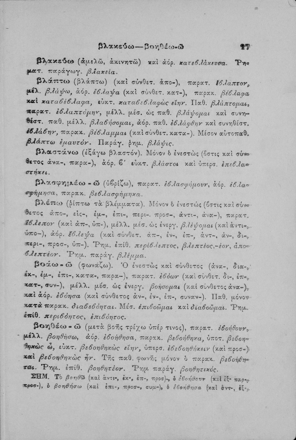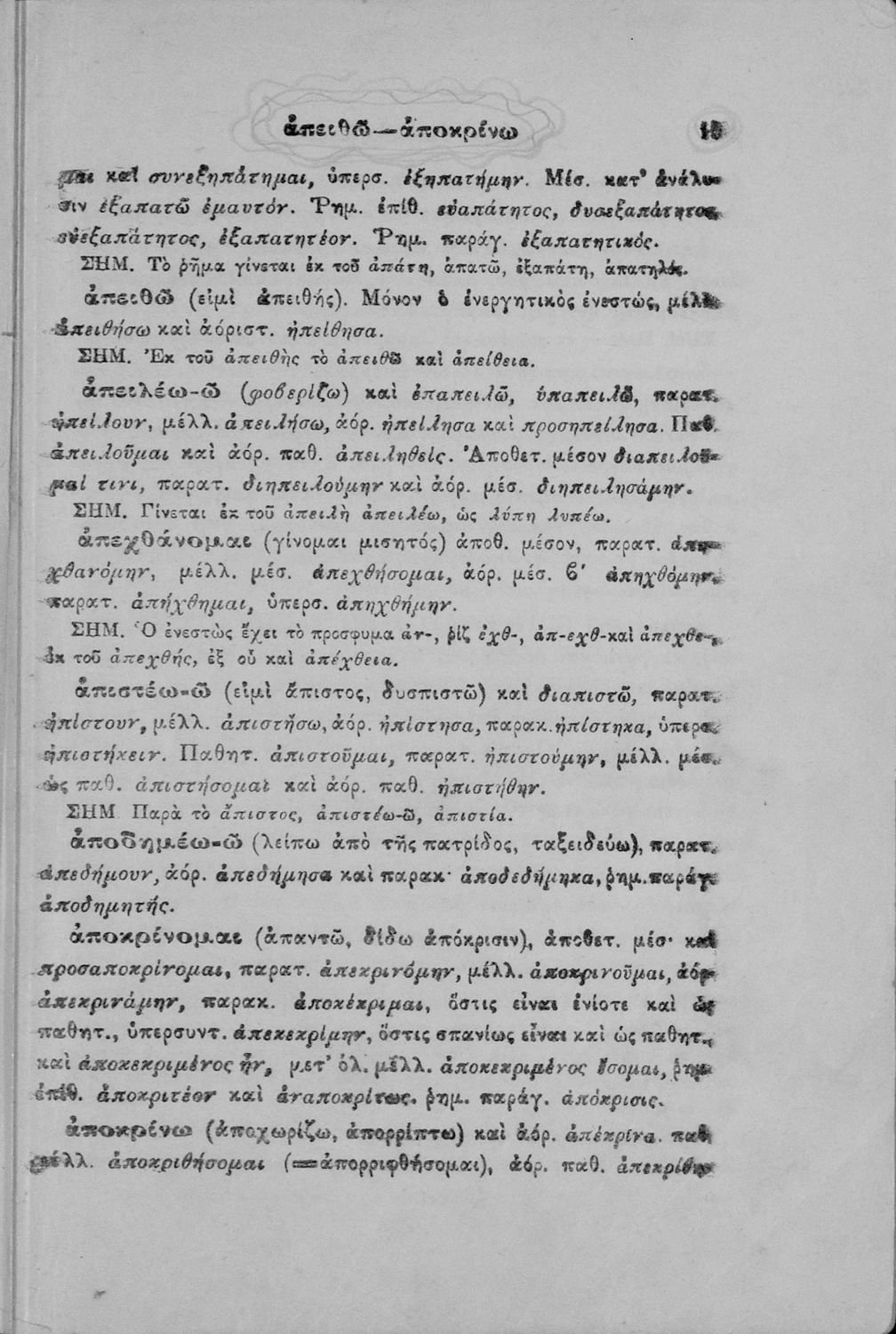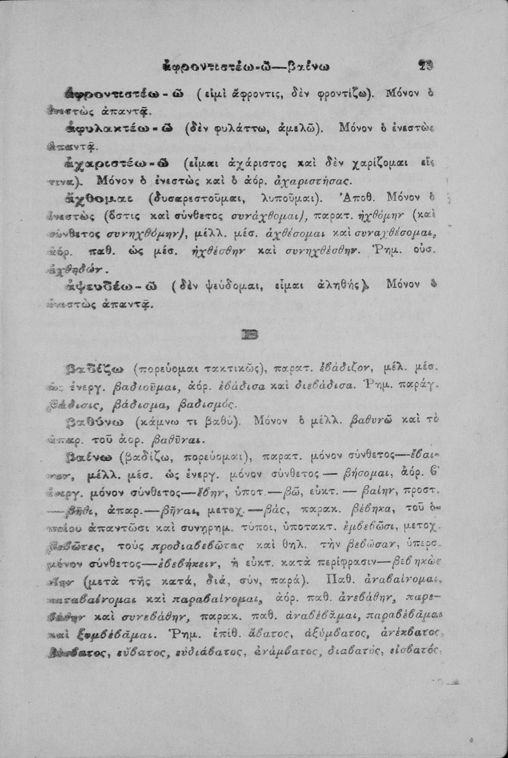 Μαθητικό βοήθημα Αρχαίων Ελληνικών Ελληνικού Σχολείου και Παρθεναγωγείου που περιέχει κατάλογο των ανώμαλων ρημάτων και ονομάτων της αρχαίας ελληνικής γραμματείας και ετυμολογικές, γραμματικές και σημασιολογικές παρατηρήσεις..