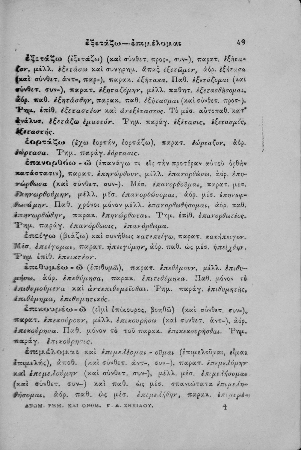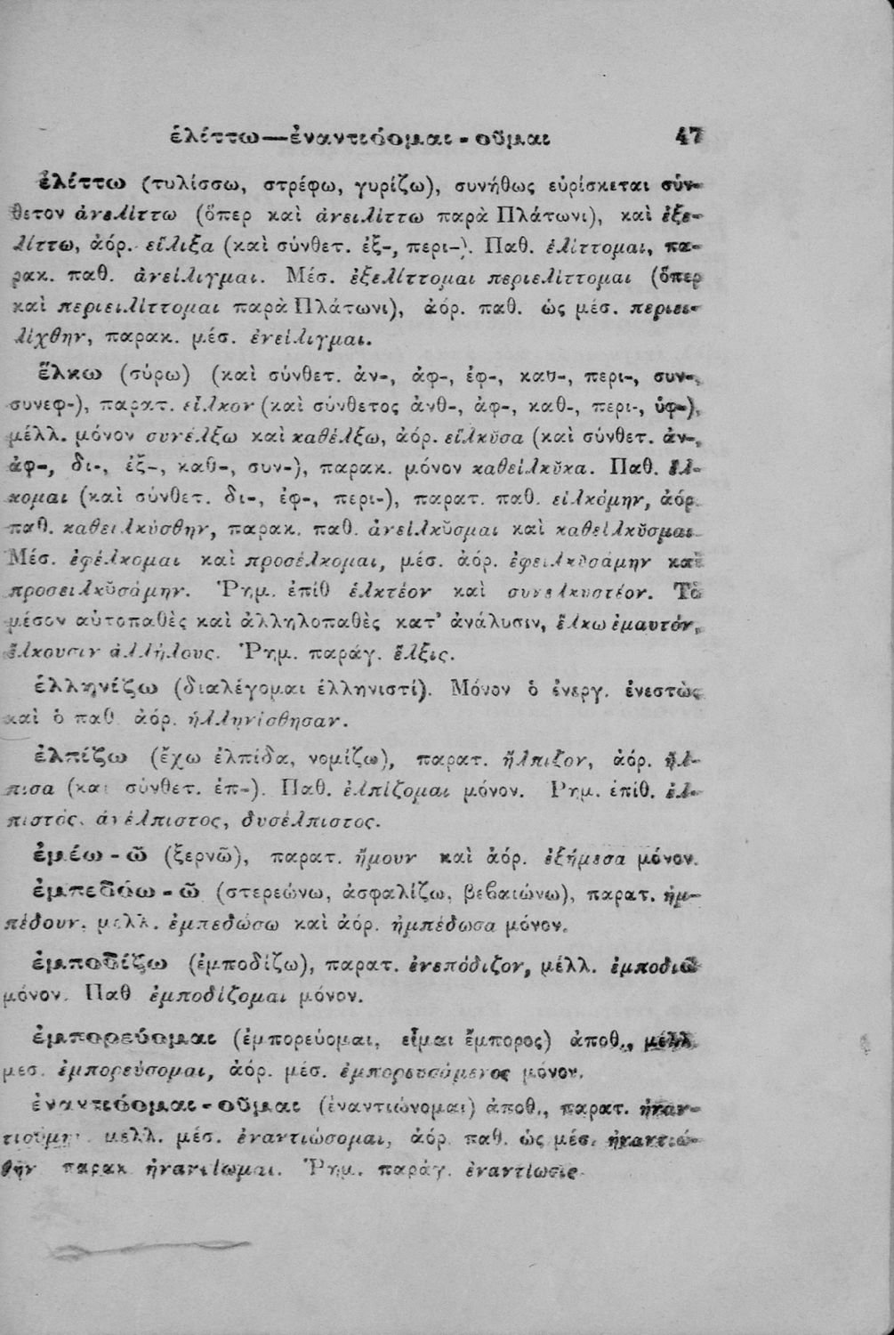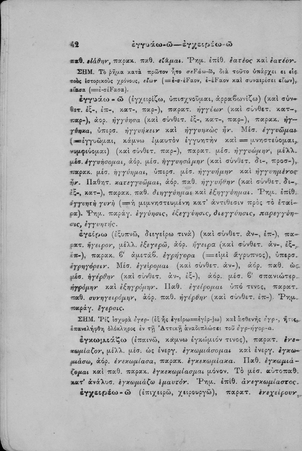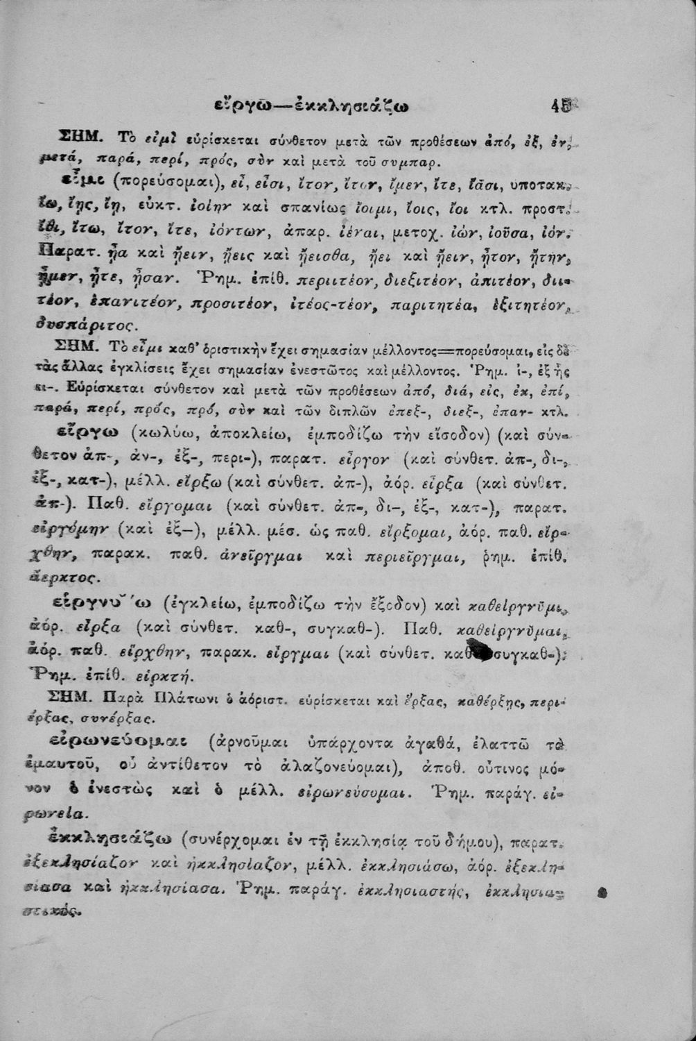 Μαθητικό βοήθημα Αρχαίων Ελληνικών Ελληνικού Σχολείου και Παρθεναγωγείου που περιέχει κατάλογο των ανώμαλων ρημάτων και ονομάτων της αρχαίας ελληνικής γραμματείας και ετυμολογικές, γραμματικές και σημασιολογικές παρατηρήσεις..