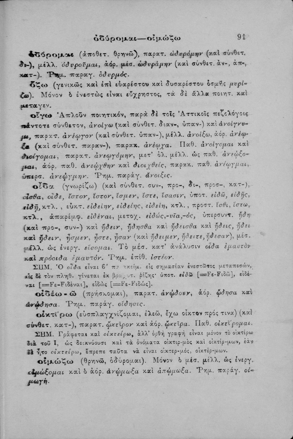 Μαθητικό βοήθημα Αρχαίων Ελληνικών για τις Α΄, Β΄, Γ' Ελληνικού Σχολείου και Παρθεναγωγείου για το μάθημα των Αρχαίων που περιλαμβάνει λεξικό ανωμάλων ρημάτων και γραμματικές σημειώσεις