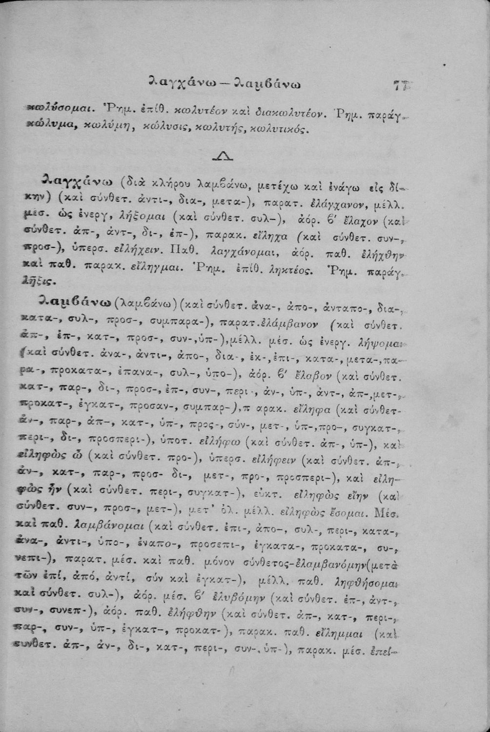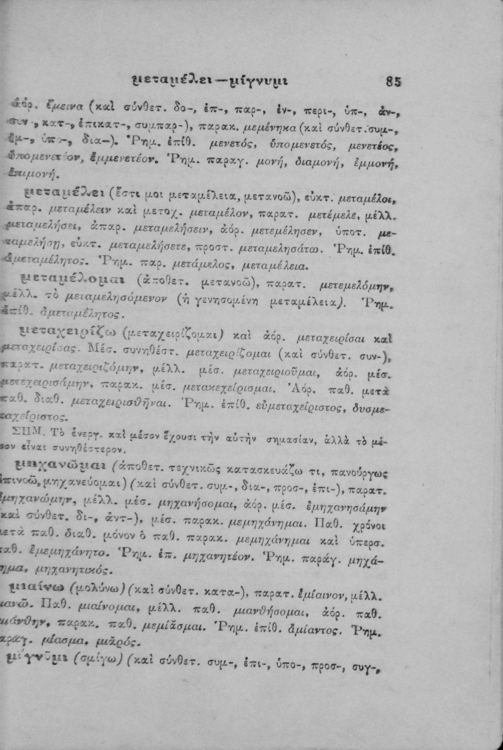 Μαθητικό βοήθημα Αρχαίων Ελληνικών Ελληνικού Σχολείου και Παρθεναγωγείου που περιέχει κατάλογο των ανώμαλων ρημάτων και ονομάτων της αρχαίας ελληνικής γραμματείας και ετυμολογικές, γραμματικές και σημασιολογικές παρατηρήσεις..