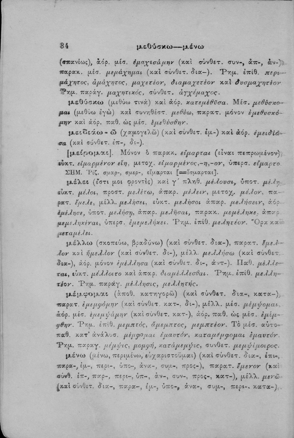 Παρουσίαση περιεχομένου: Μαθητικό βοήθημα Αρχαίων Ελληνικών Ελληνικού Σχολείου και Παρθεναγωγείου που περιέχει κατάλογο των ανώμαλων ρημάτων και ονομάτων της αρχαίας ελληνικής γραμματείας και ετυμολογικές, γραμματικές και σημασιολογικές παρατηρήσεις..