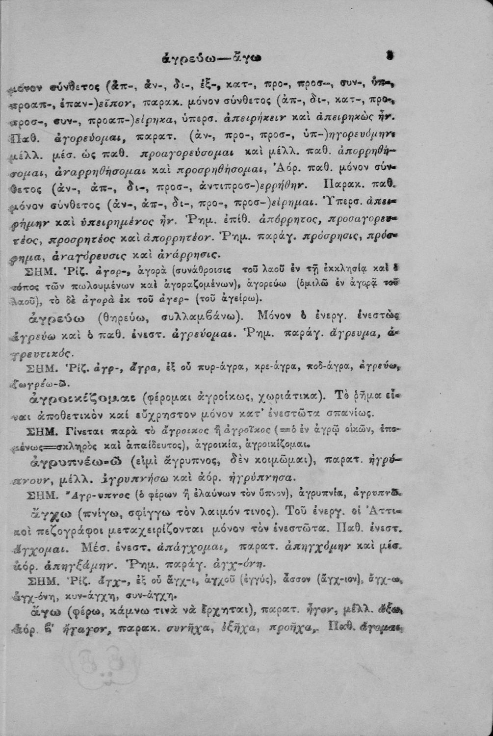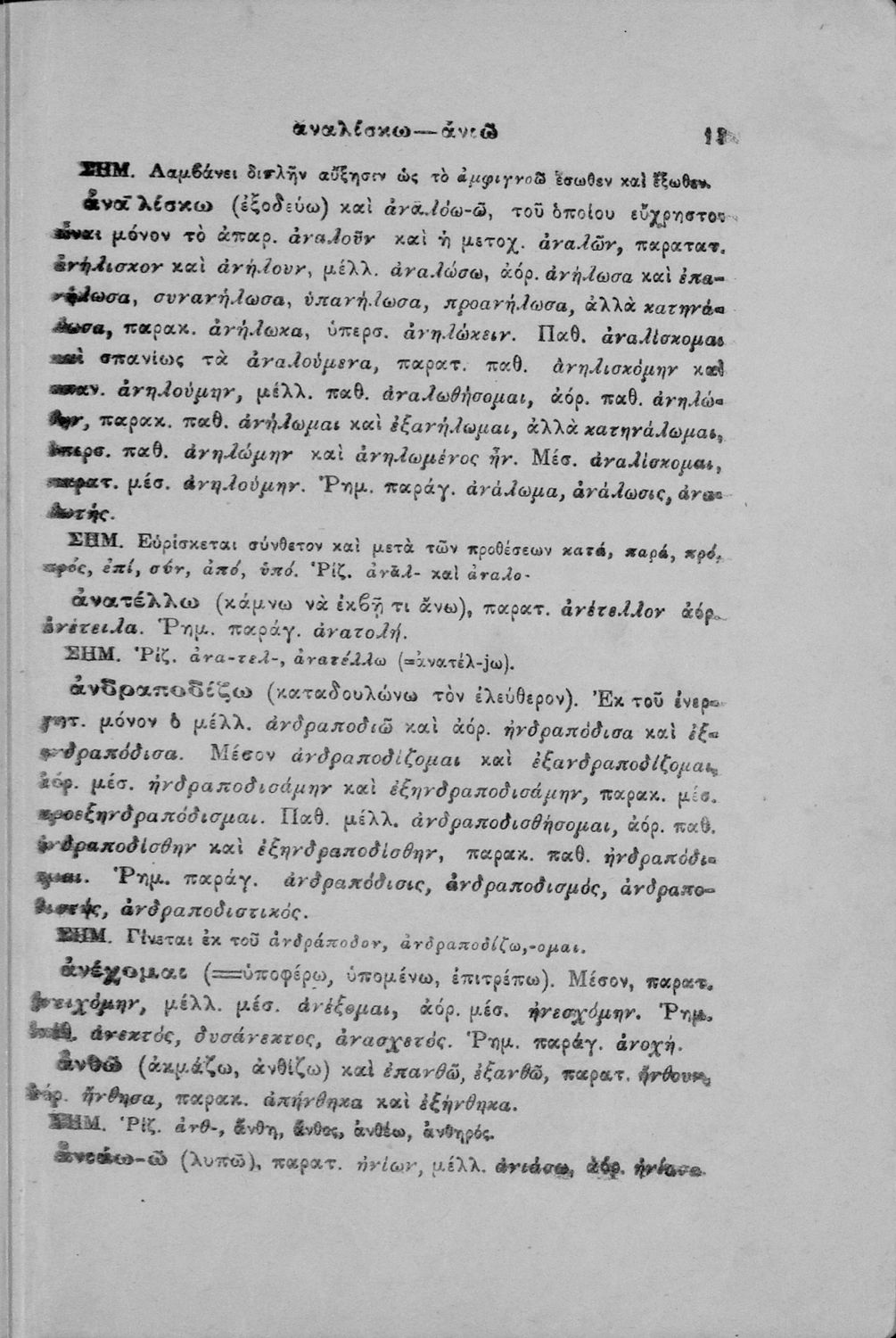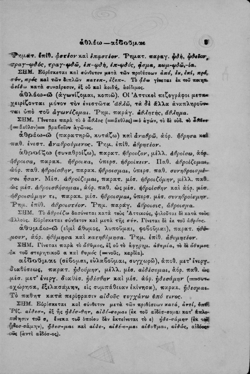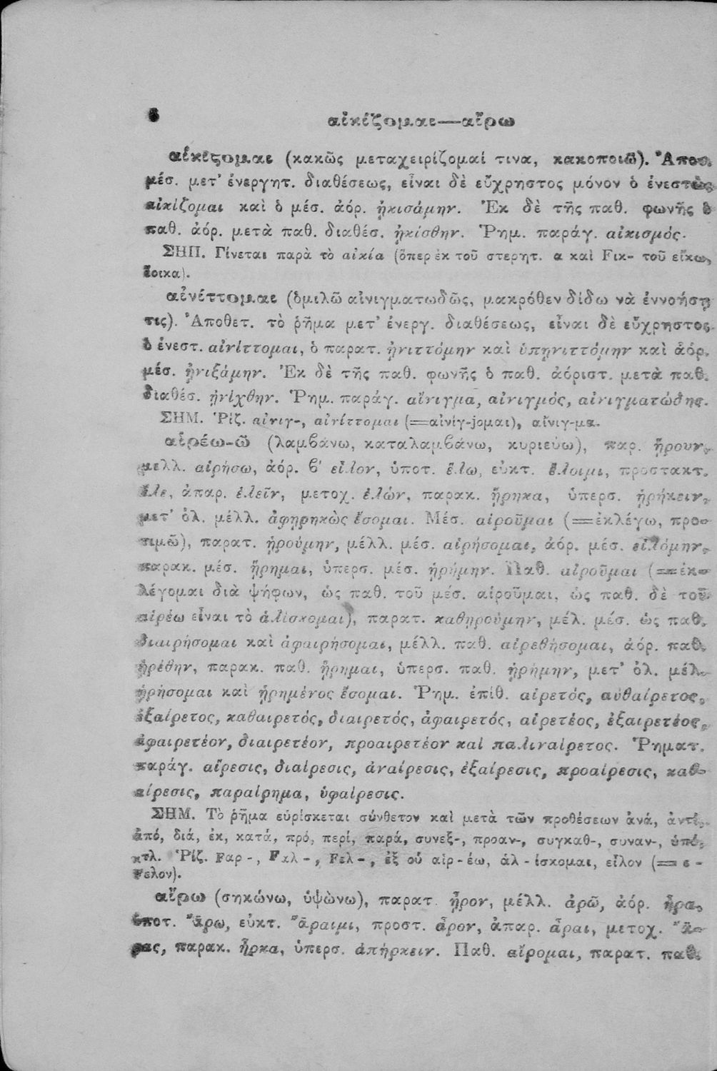Μαθητικό βοήθημα Αρχαίων Ελληνικών Ελληνικού Σχολείου και Παρθεναγωγείου που περιέχει κατάλογο των ανώμαλων ρημάτων και ονομάτων της αρχαίας ελληνικής γραμματείας και ετυμολογικές, γραμματικές και σημασιολογικές παρατηρήσεις..