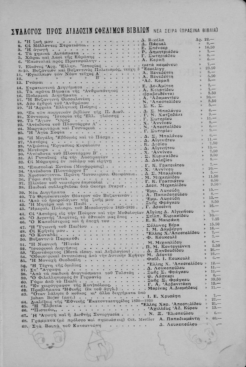 Εκδότης: Βιβλιοπωλείο Ιωάννη Ν. Σιδέρη Έτος έκδοσης: 1935 Τόπος έκδοσης: Αθήνα |