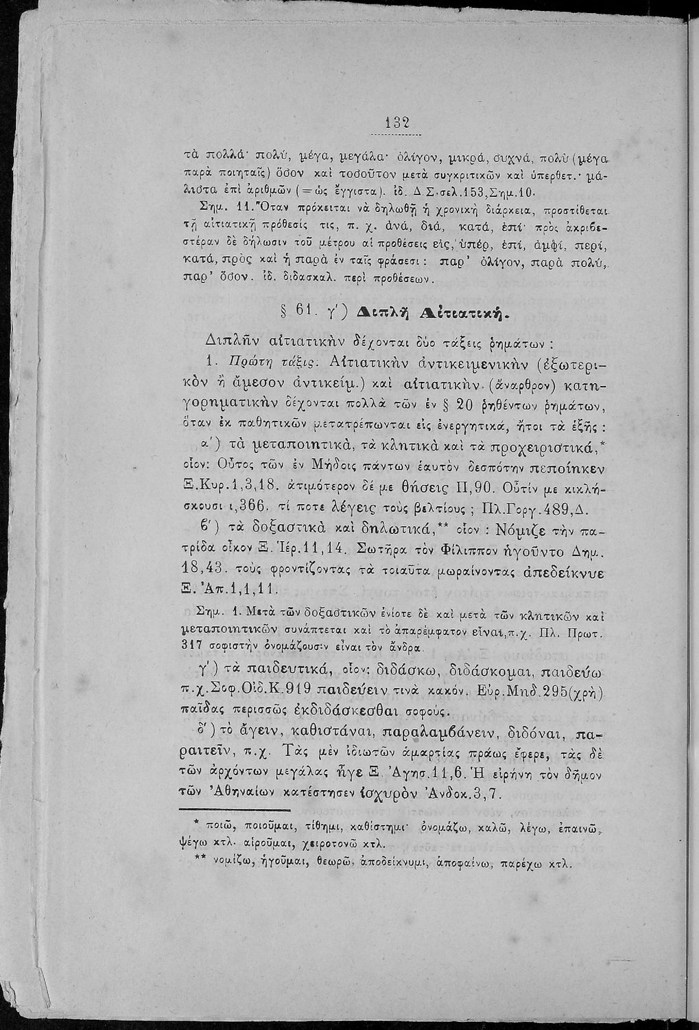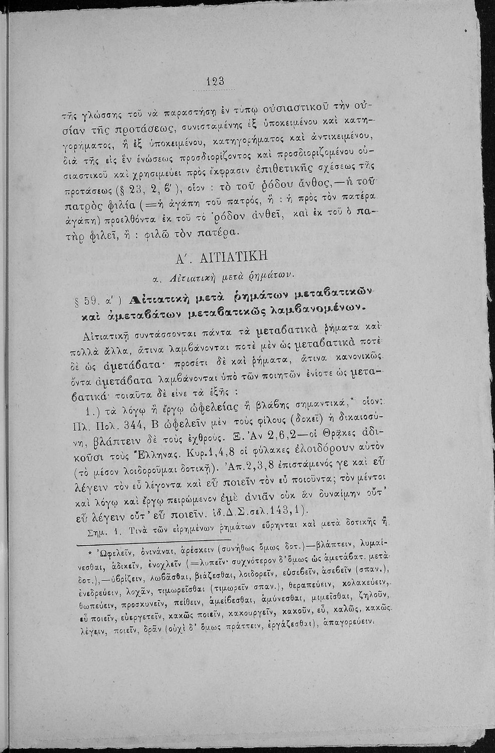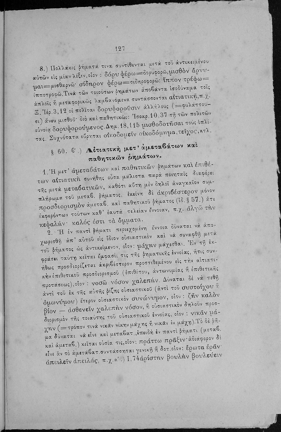 Σχολικό εγχειρίδιο Αρχαίων Ελληνικών για τα Ελληνικά Σχολεία και Παρθεναγωγεία που περιέχει τους κανόνες γραμματικής και είναι χωρισμένο σε φθογγολογικό, τυπολογικό και ετυμολογικό μέρος.