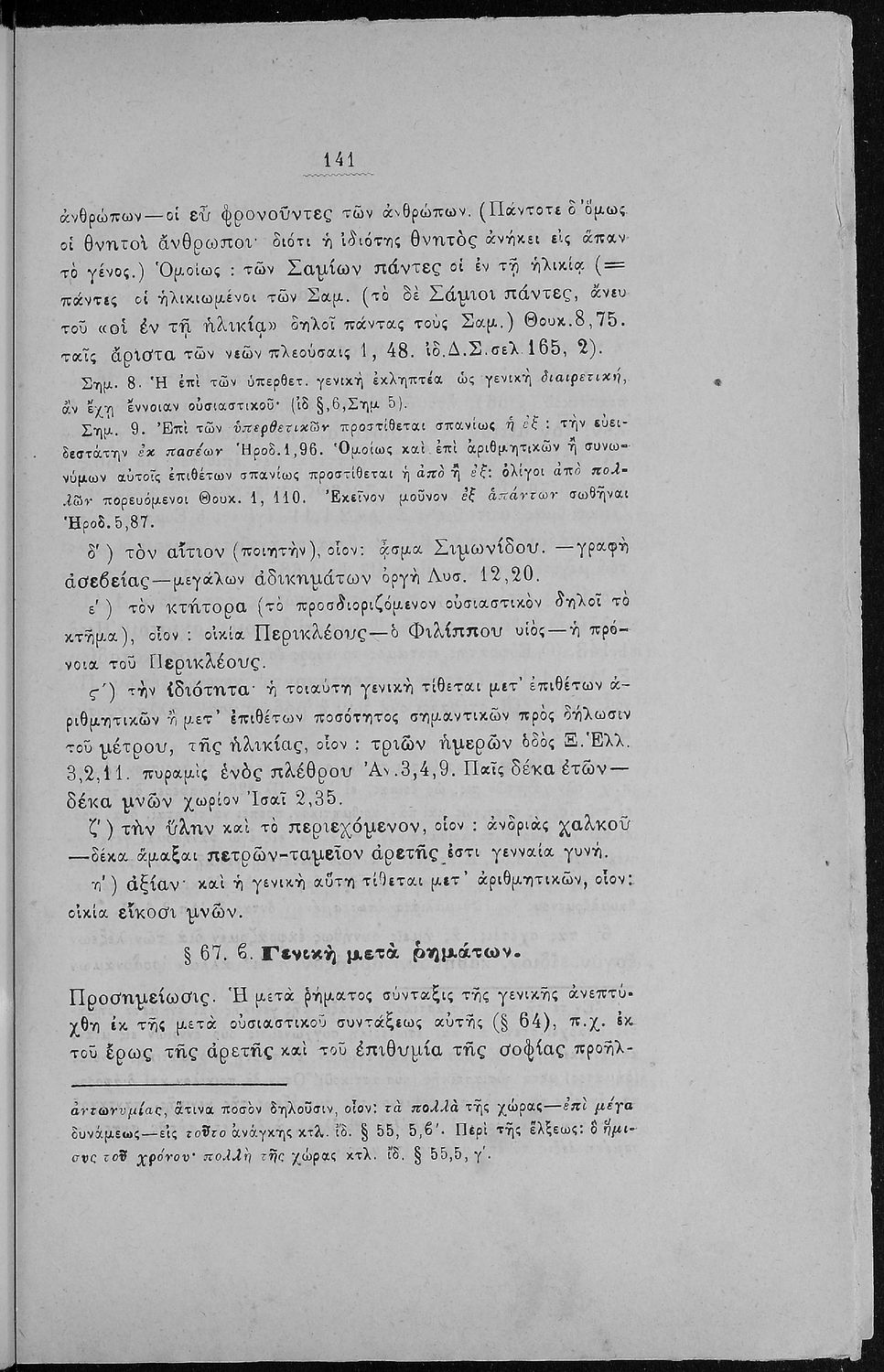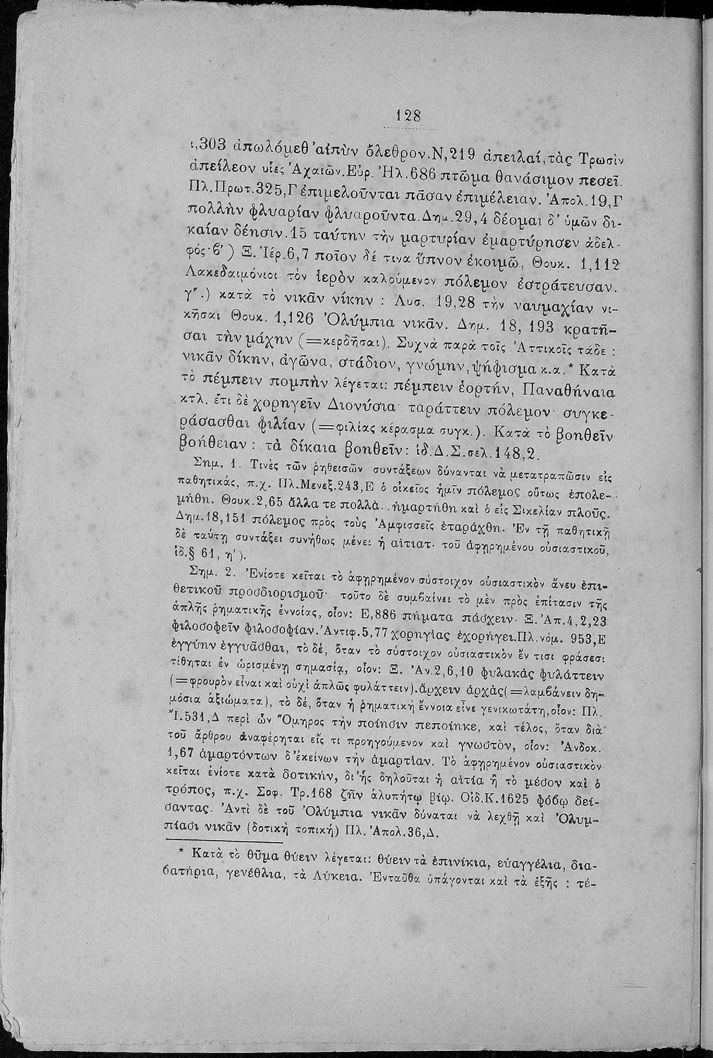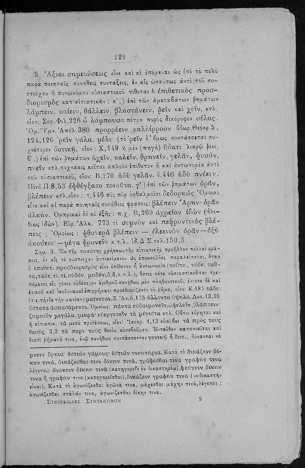 Σχολικό εγχειρίδιο Αρχαίων Ελληνικών για τα Ελληνικά Σχολεία και Παρθεναγωγεία που περιέχει τους κανόνες γραμματικής και είναι χωρισμένο σε φθογγολογικό, τυπολογικό και ετυμολογικό μέρος.