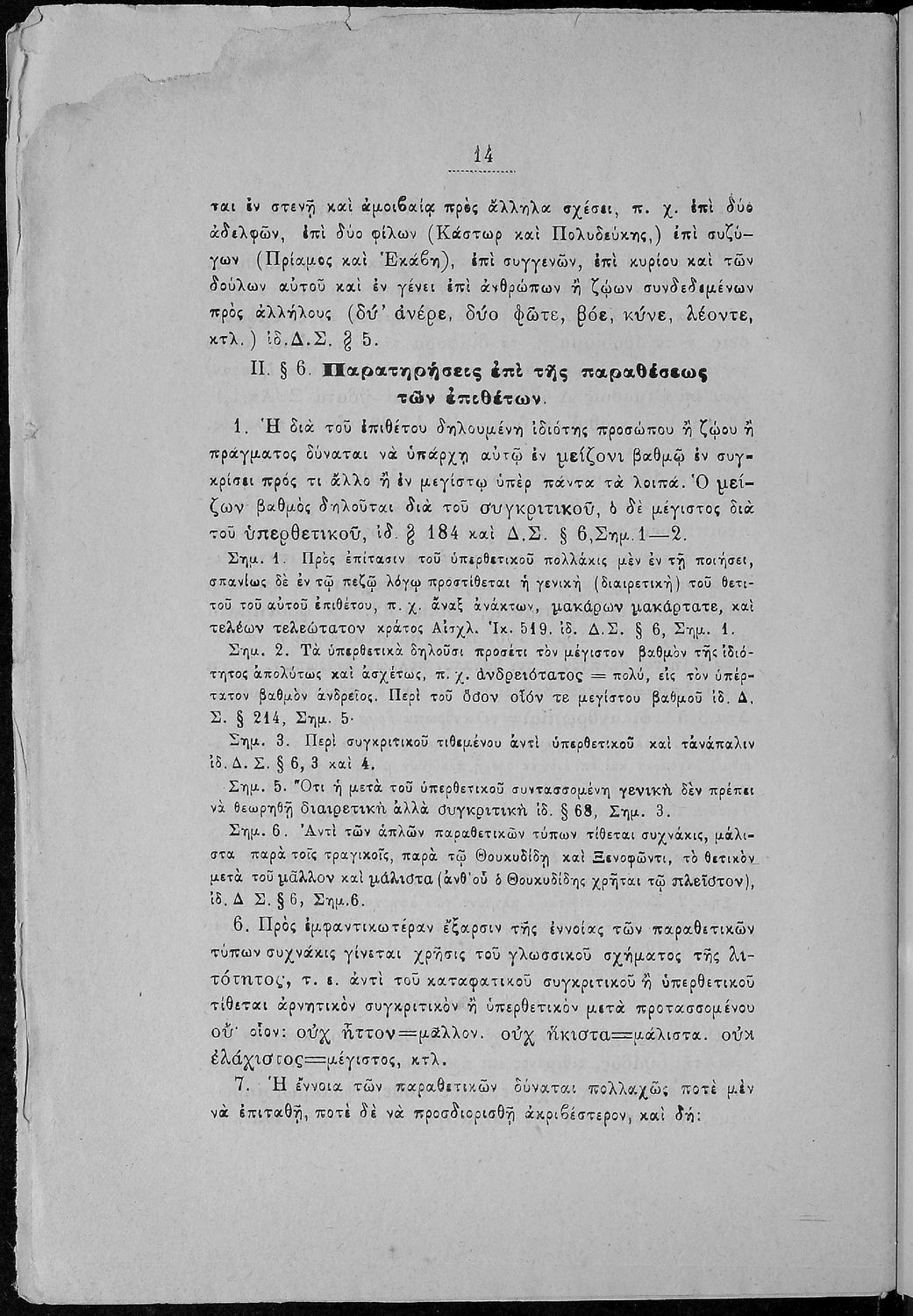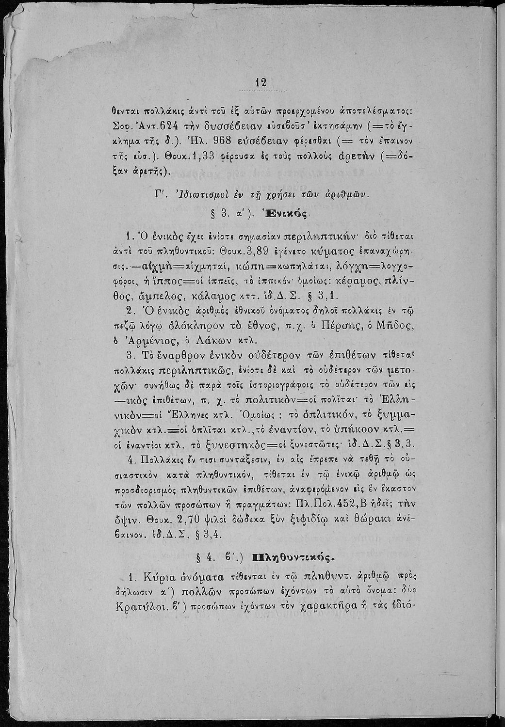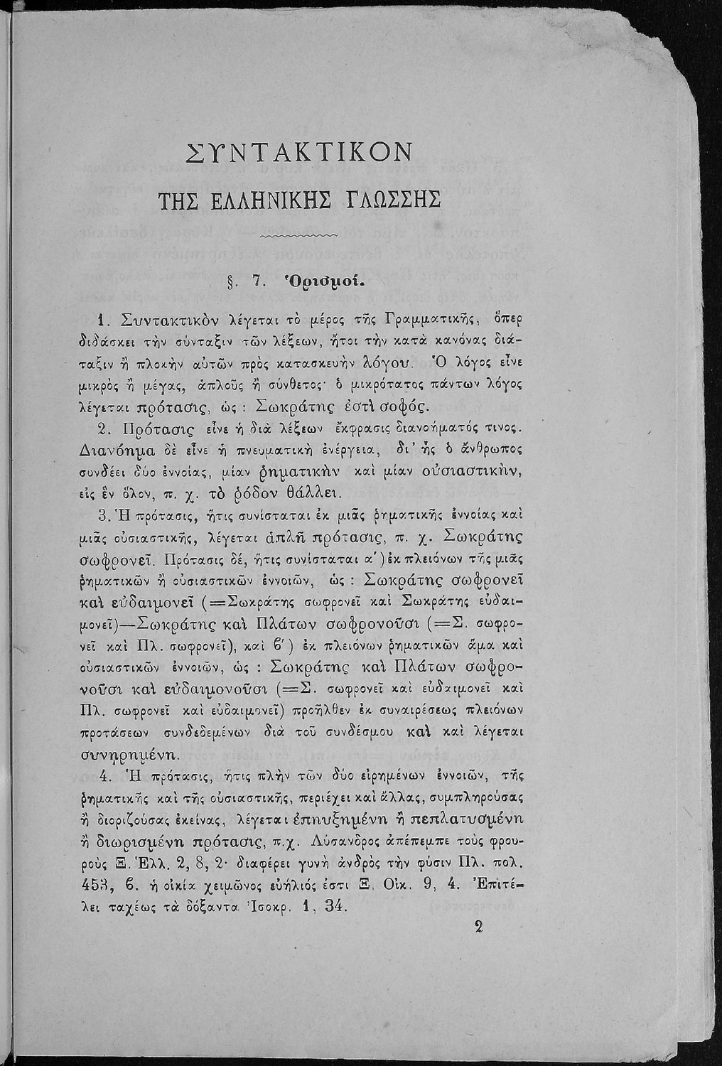 Σχολικό εγχειρίδιο Αρχαίων Ελληνικών για τα Ελληνικά Σχολεία και Παρθεναγωγεία που περιέχει τους κανόνες γραμματικής και είναι χωρισμένο σε φθογγολογικό, τυπολογικό και ετυμολογικό μέρος.