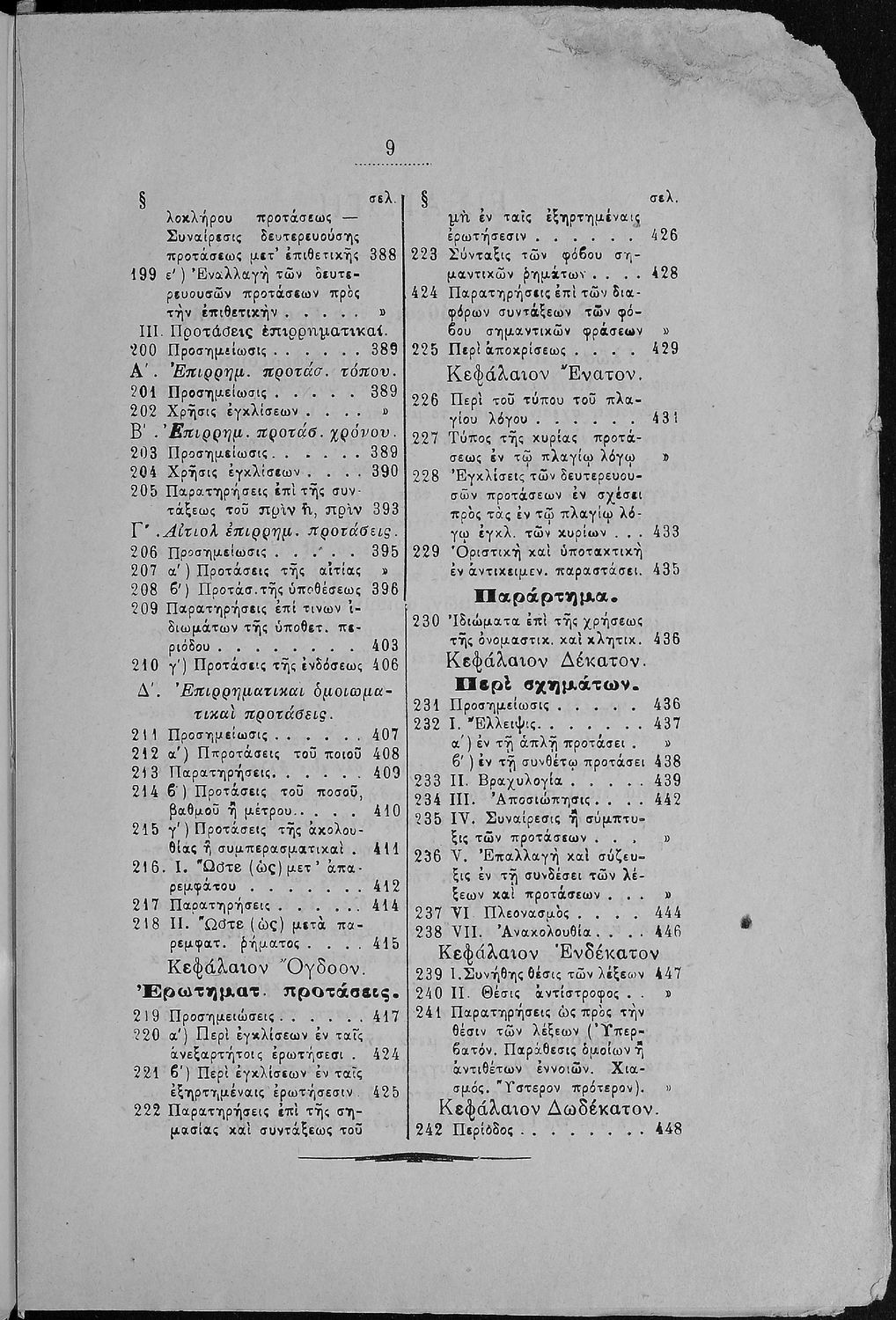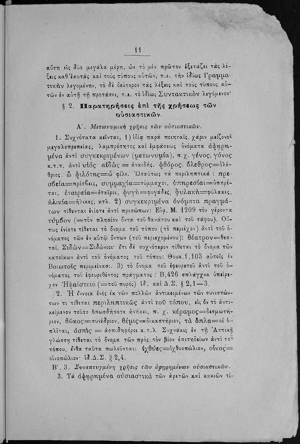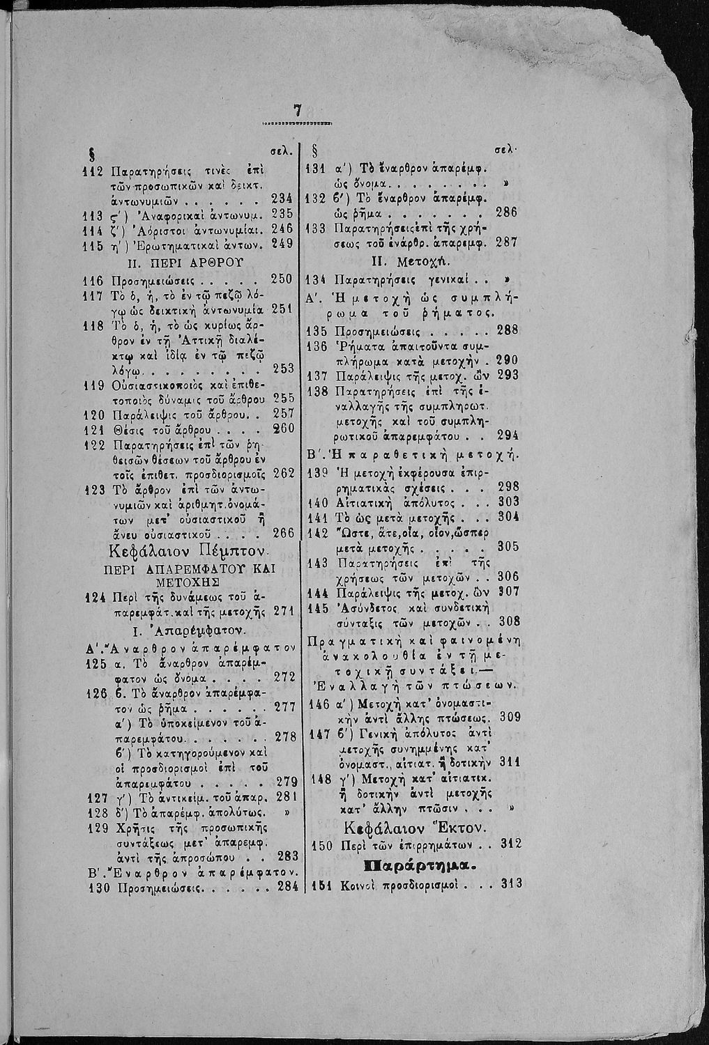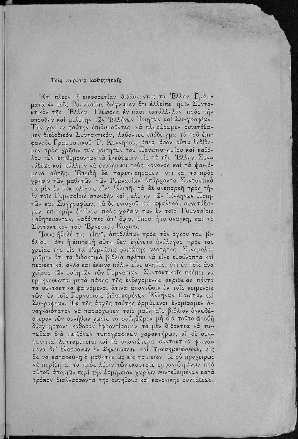 Σχολικό εγχειρίδιο Αρχαίων Ελληνικών για τα Ελληνικά Σχολεία και Παρθεναγωγεία που περιέχει τους κανόνες γραμματικής και είναι χωρισμένο σε φθογγολογικό, τυπολογικό και ετυμολογικό μέρος.