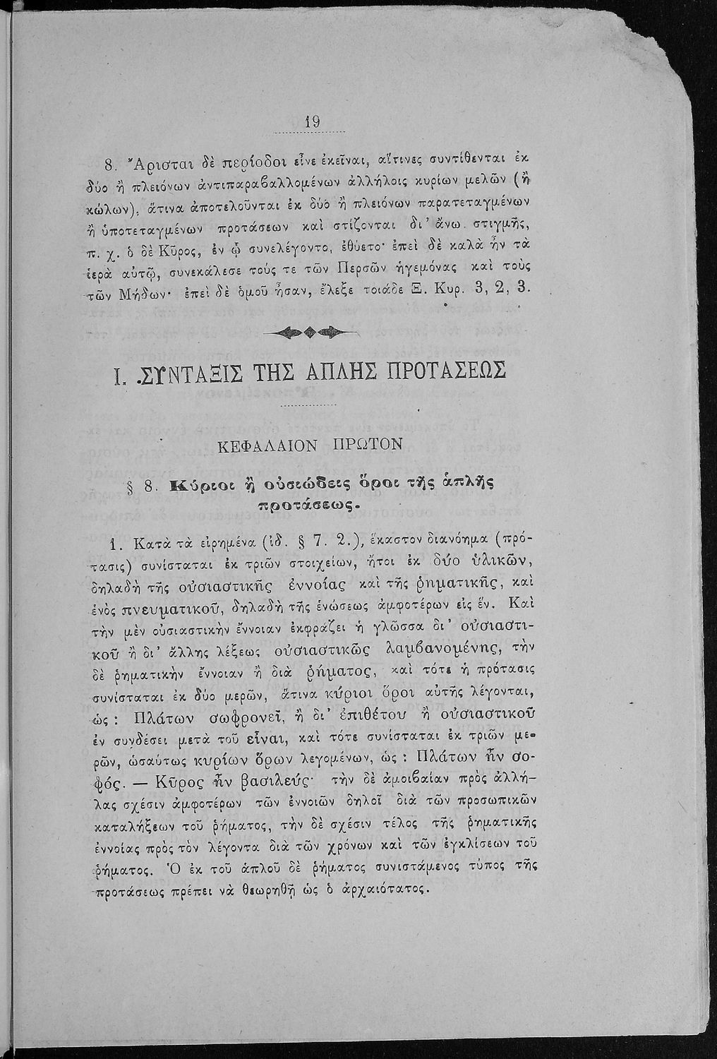 Σχολικό εγχειρίδιο Αρχαίων Ελληνικών για τα Ελληνικά Σχολεία και Παρθεναγωγεία που περιέχει τους κανόνες γραμματικής και είναι χωρισμένο σε φθογγολογικό, τυπολογικό και ετυμολογικό μέρος.