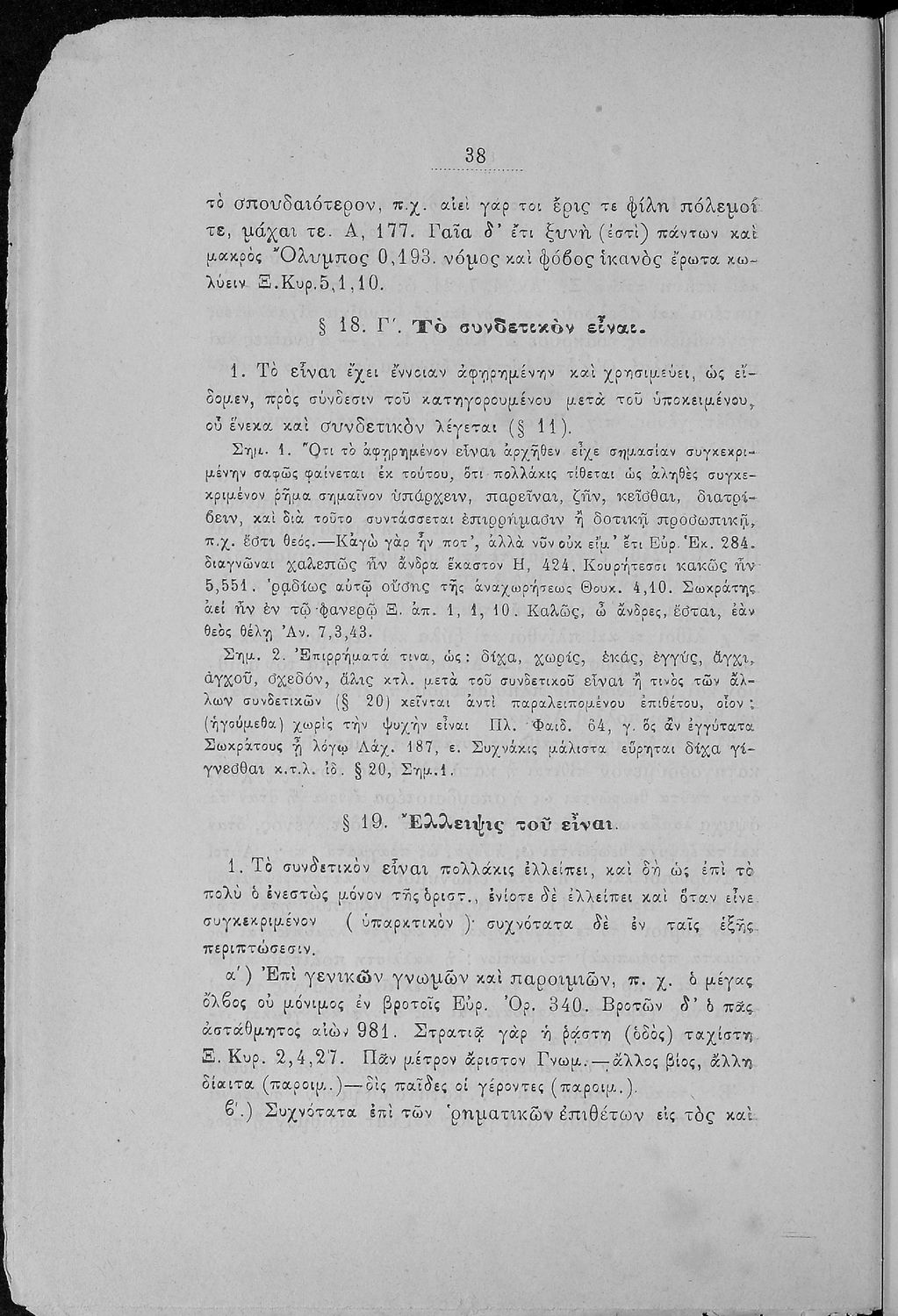 Σχολικό εγχειρίδιο Αρχαίων Ελληνικών Γυμνασίου που εξετάζει τα μέρη του λόγου και την σύνταξή τους.