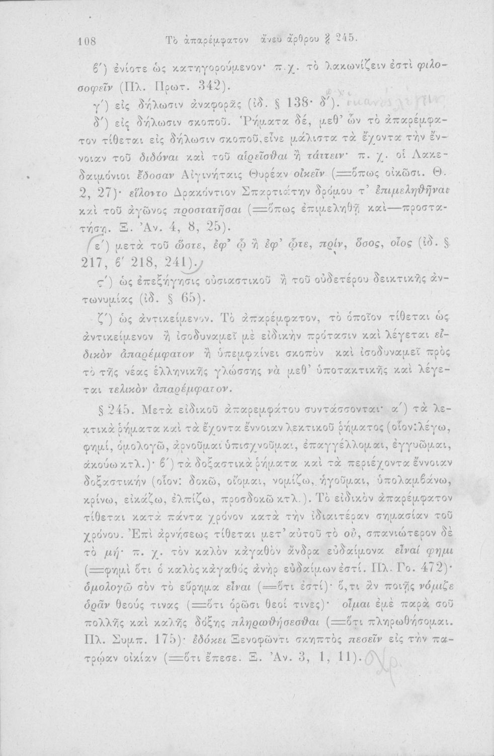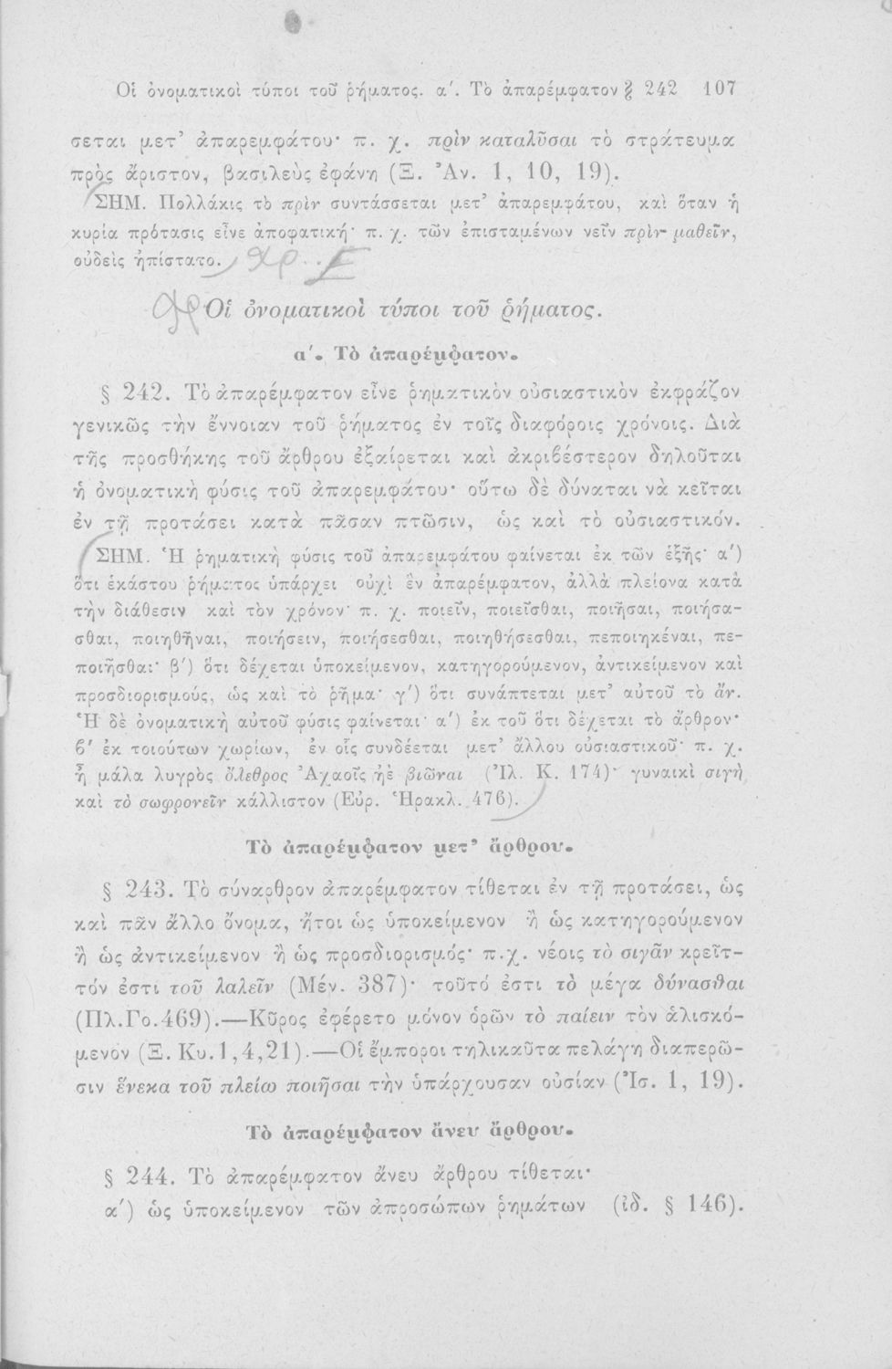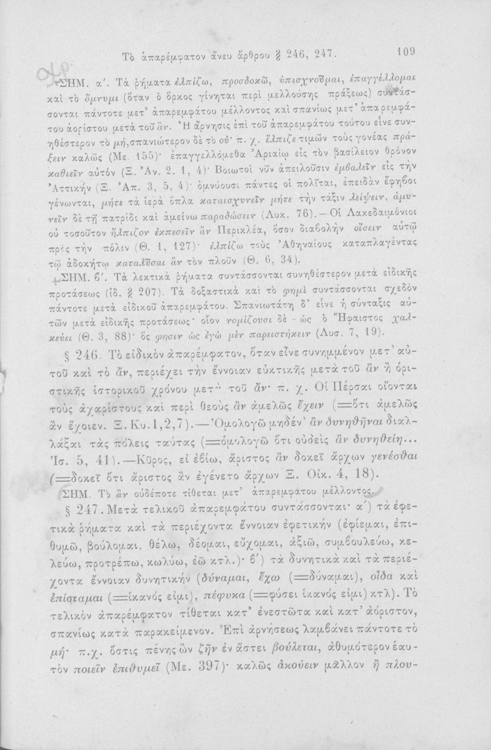 Σχολικό εγχειρίδιο Αρχαίων Ελληνικών για τα Ελληνικά Σχολεία, Παρθεναγωγεία και Γυμνάσια που περιέχει τους κανόνες γραμματικής και είναι χωρισμένο σε φθογγολογικό, τυπολογικό και ετυμολογικό μέρος.