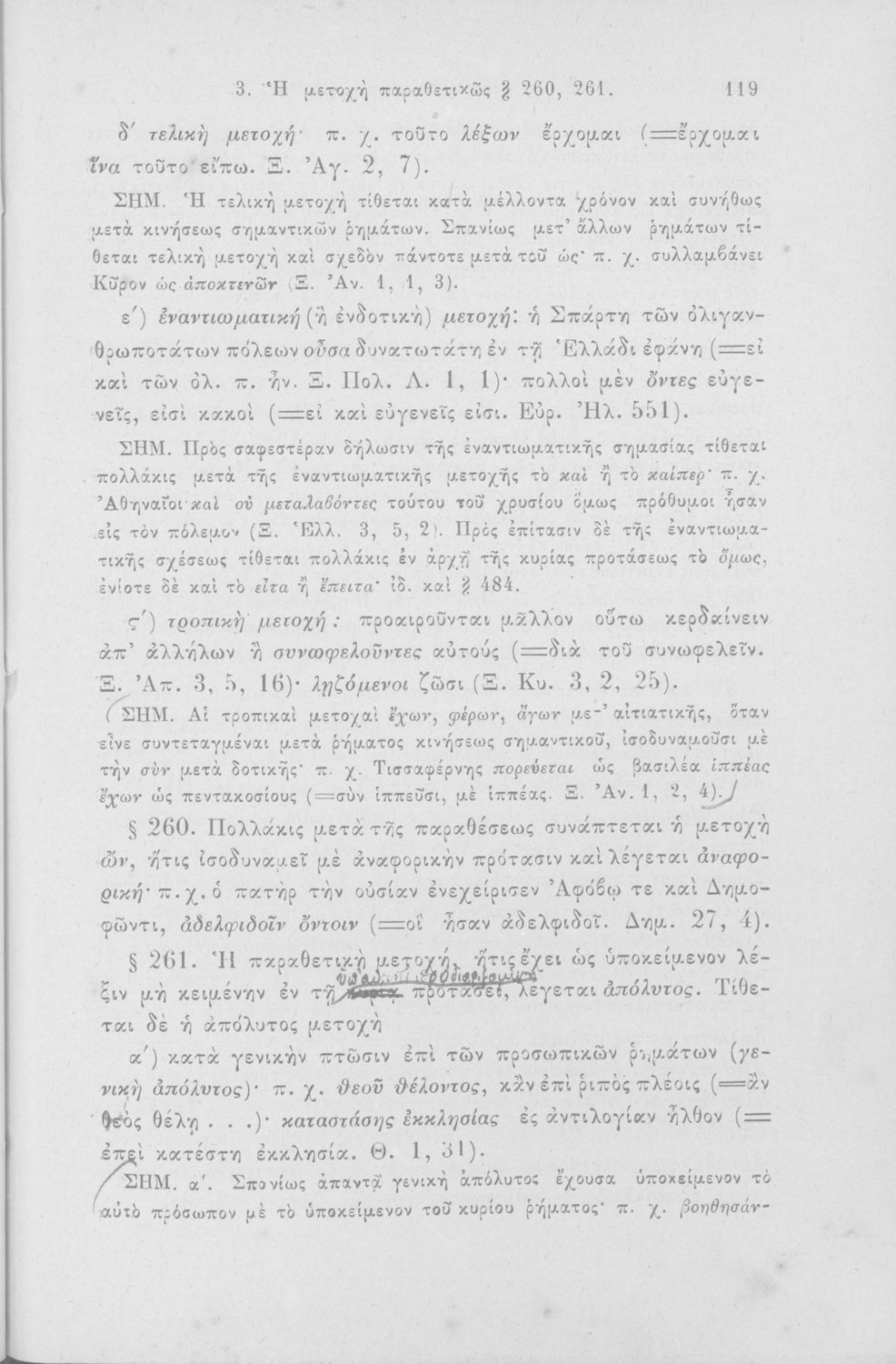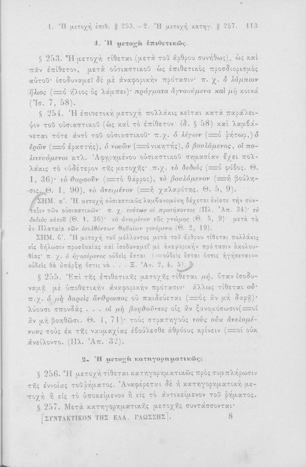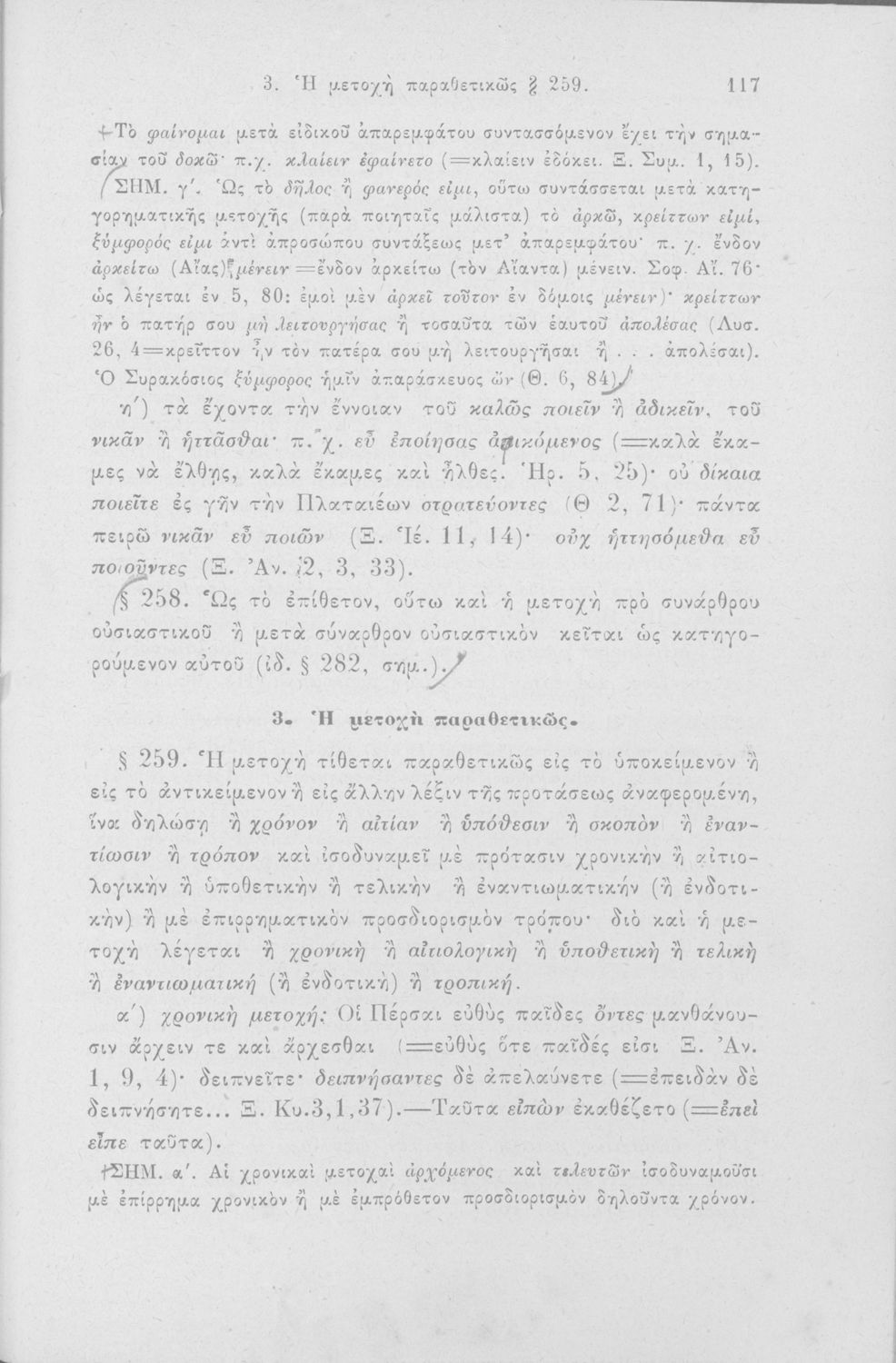 Σχολικό εγχειρίδιο Αρχαίων Ελληνικών για τα Ελληνικά Σχολεία και τα Ανώτερα Παρθεναγωγεία που εξετάζει τα μέρη του λόγου και την σύνταξή τους.