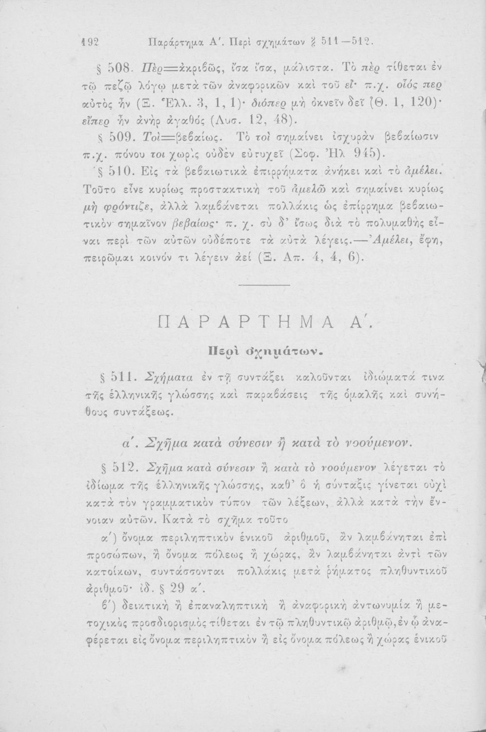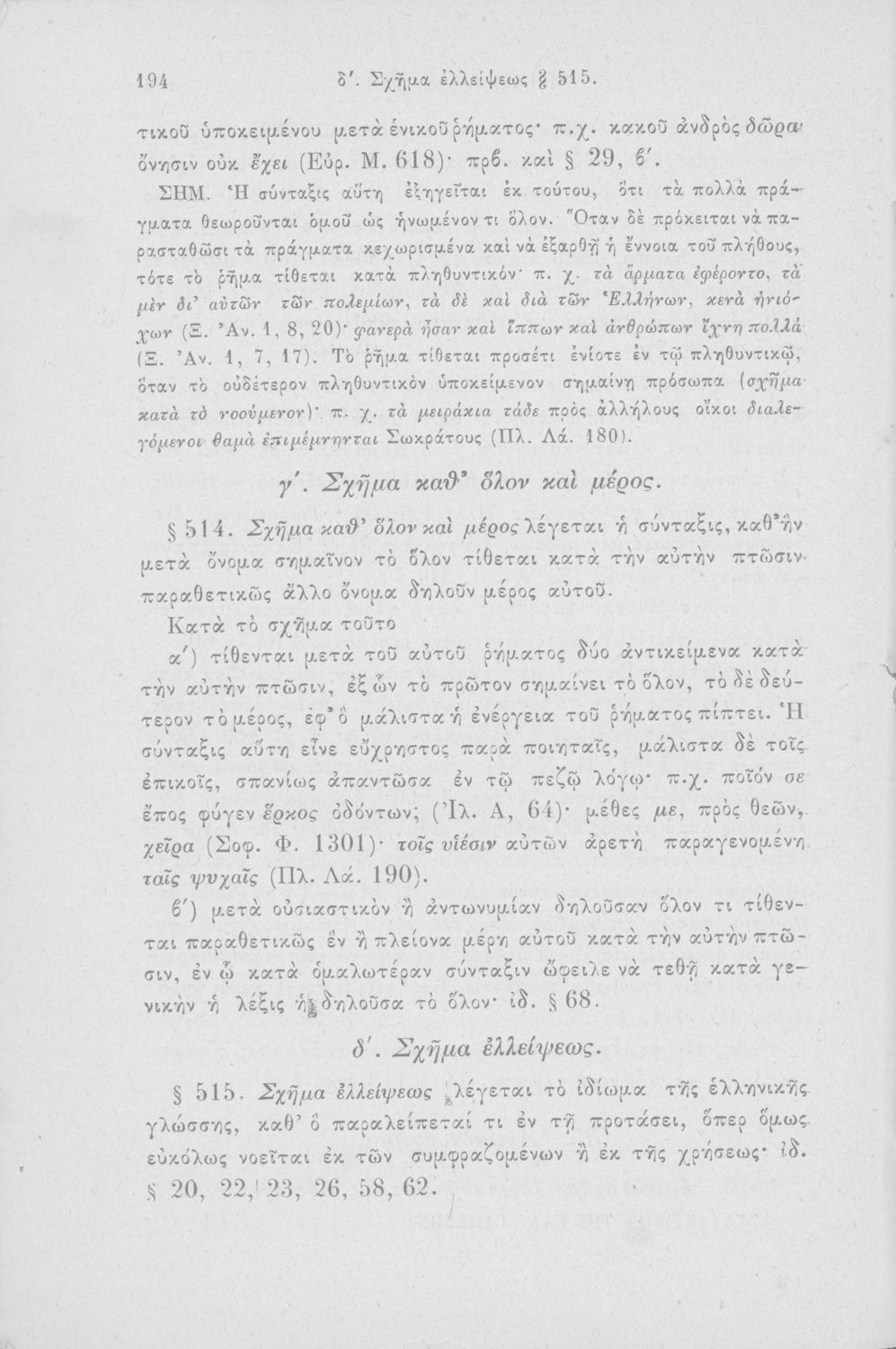 Σχολικό εγχειρίδιο Αρχαίων Ελληνικών για τα Ελληνικά Σχολεία και τα Ανώτερα Παρθεναγωγεία που εξετάζει τα μέρη του λόγου και την σύνταξή τους.
