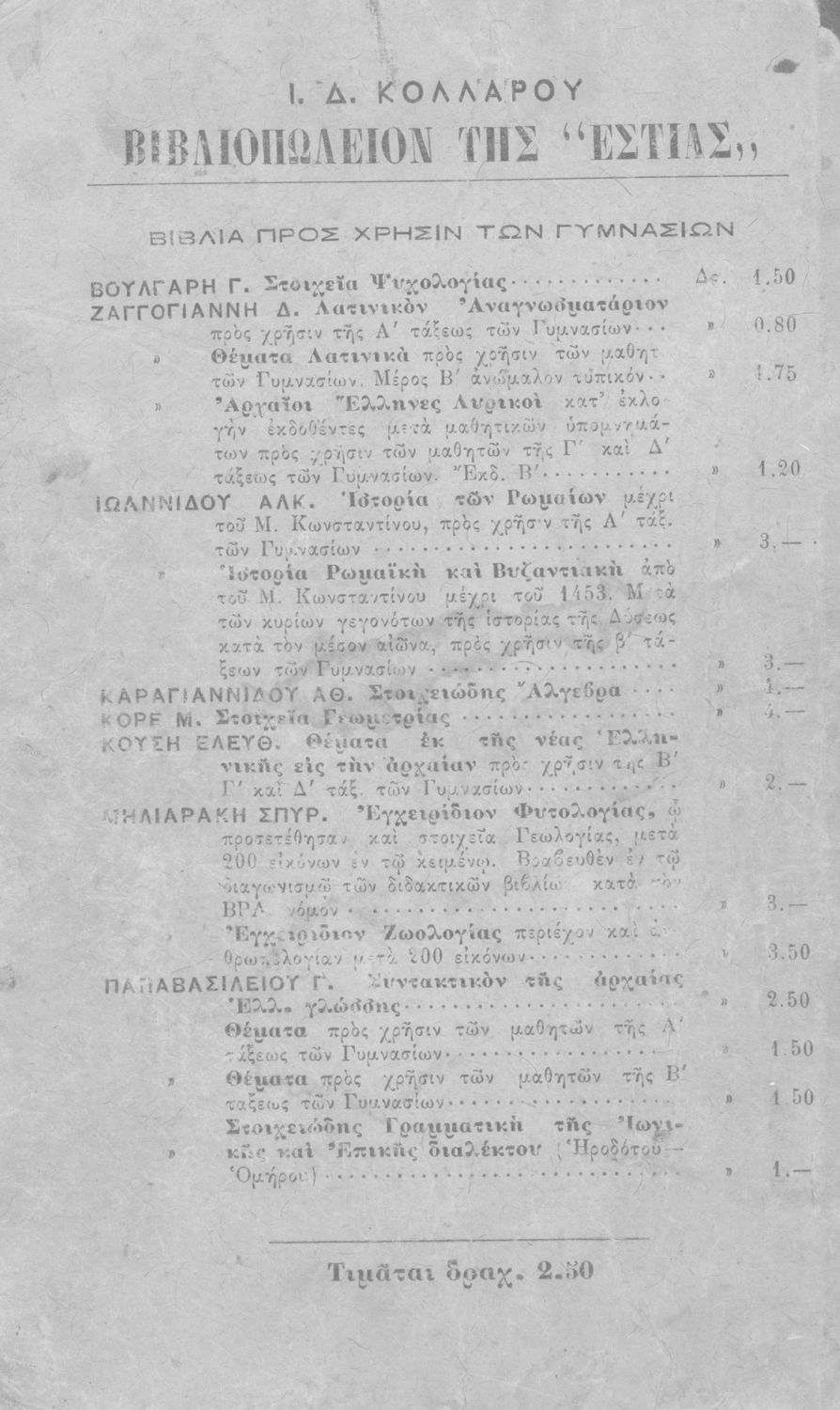 Εκδότης: Ιωάννης Δ. Κολλάρος Έτος έκδοσης: 1905 Τόπος έκδοσης: Αθήνα Έκδοση: 8η |